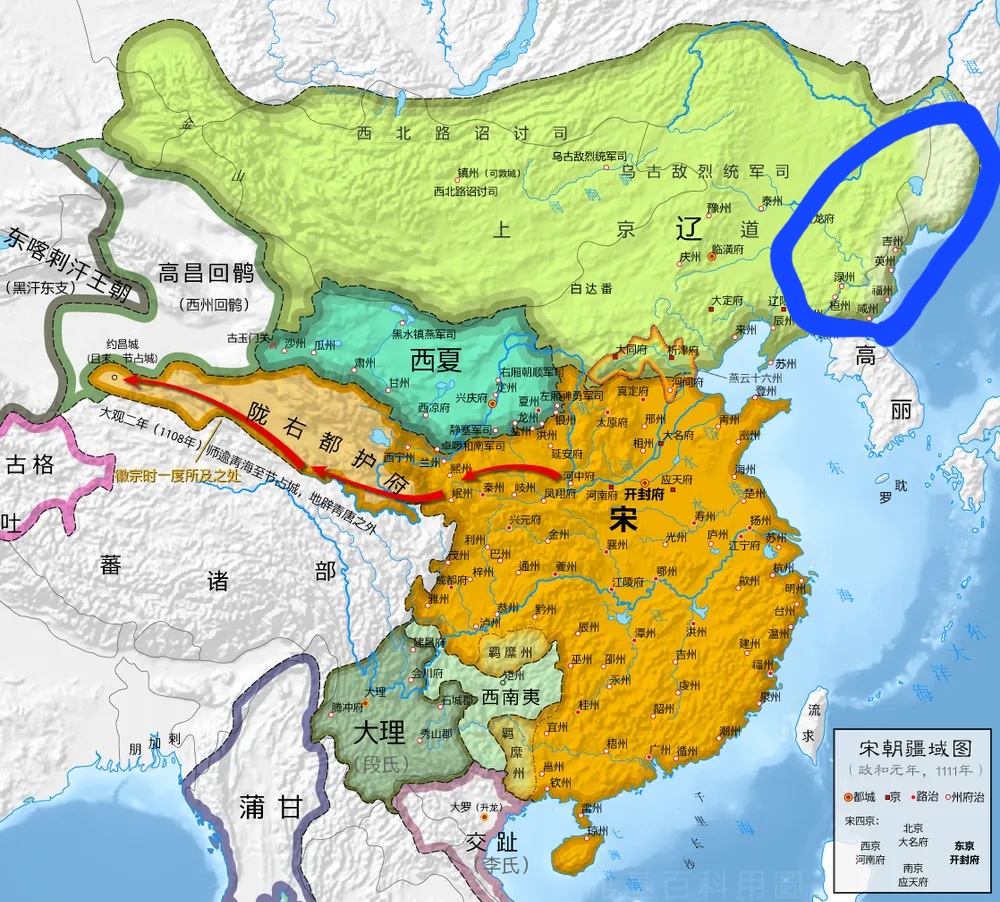 저 당시 동아시아 절대 패자는 거란 요나라였고 명목상은 주변 제국이 다 굴복했으니 고려 서하는 물론이고 송나라까지 신속했으니 관념상으로도 또 어느 정도 실질로도 요나라 천하였다.