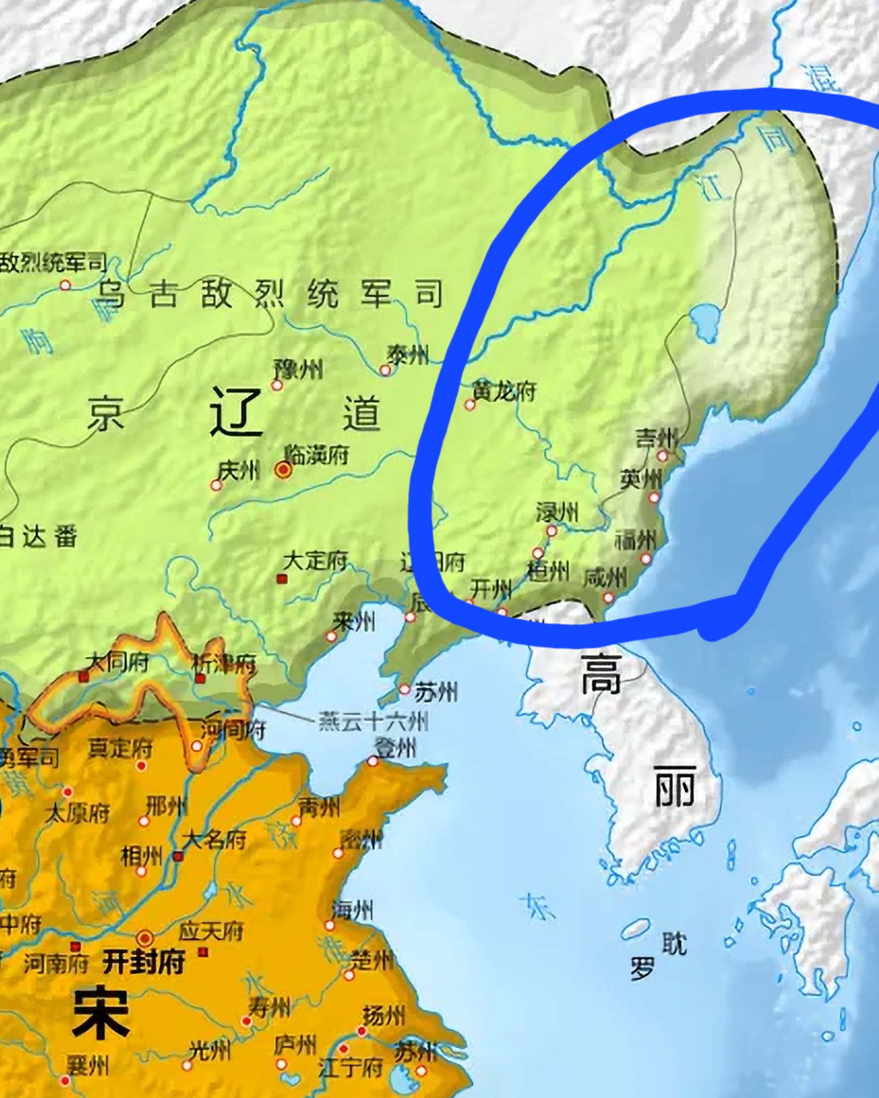 직전 저쪽은 발해 땅이었다가 야율아보기 시절 발해가 멸망하는 바람에 명목상은 거란 직접 판도에 들어갔지만