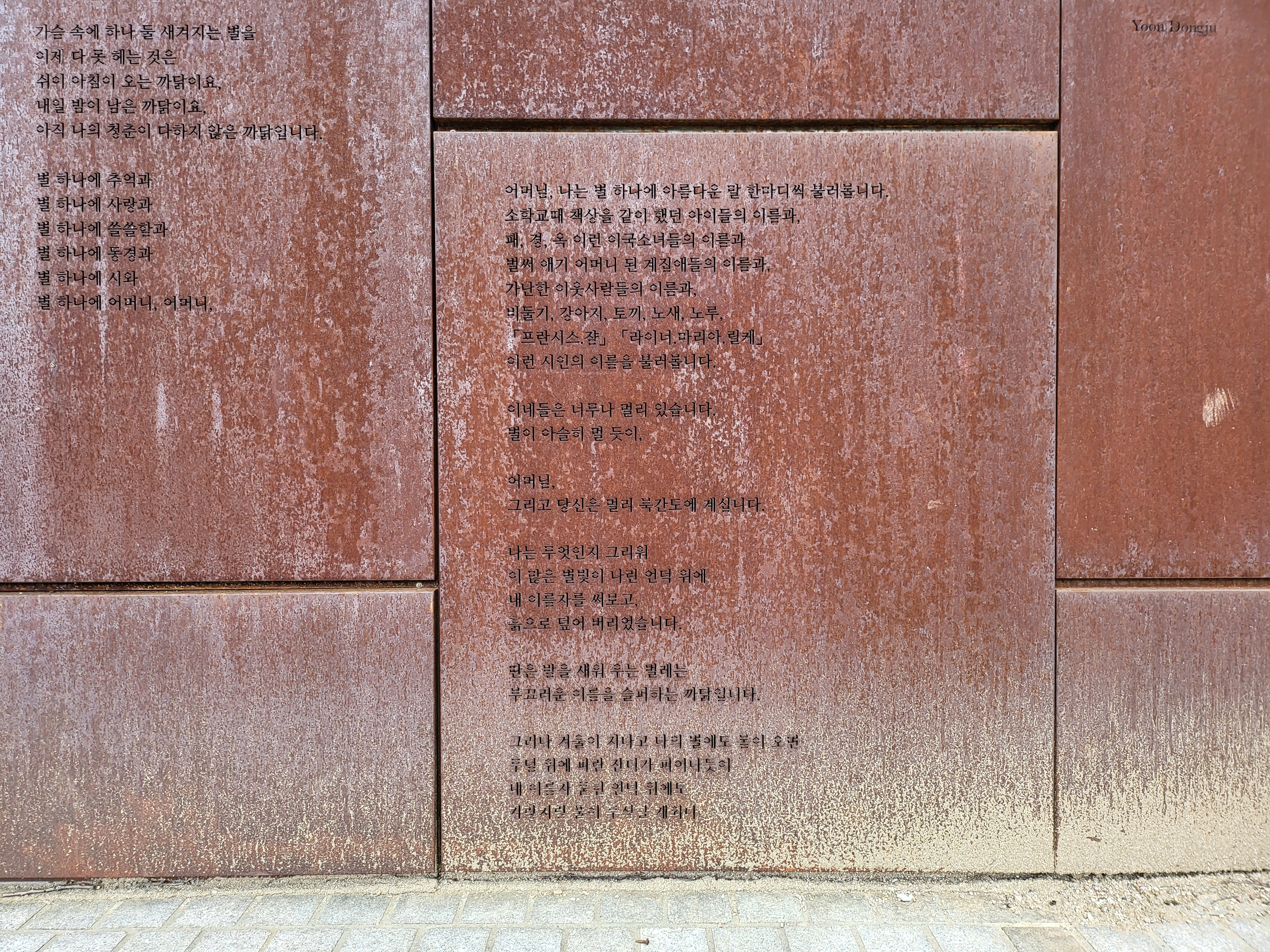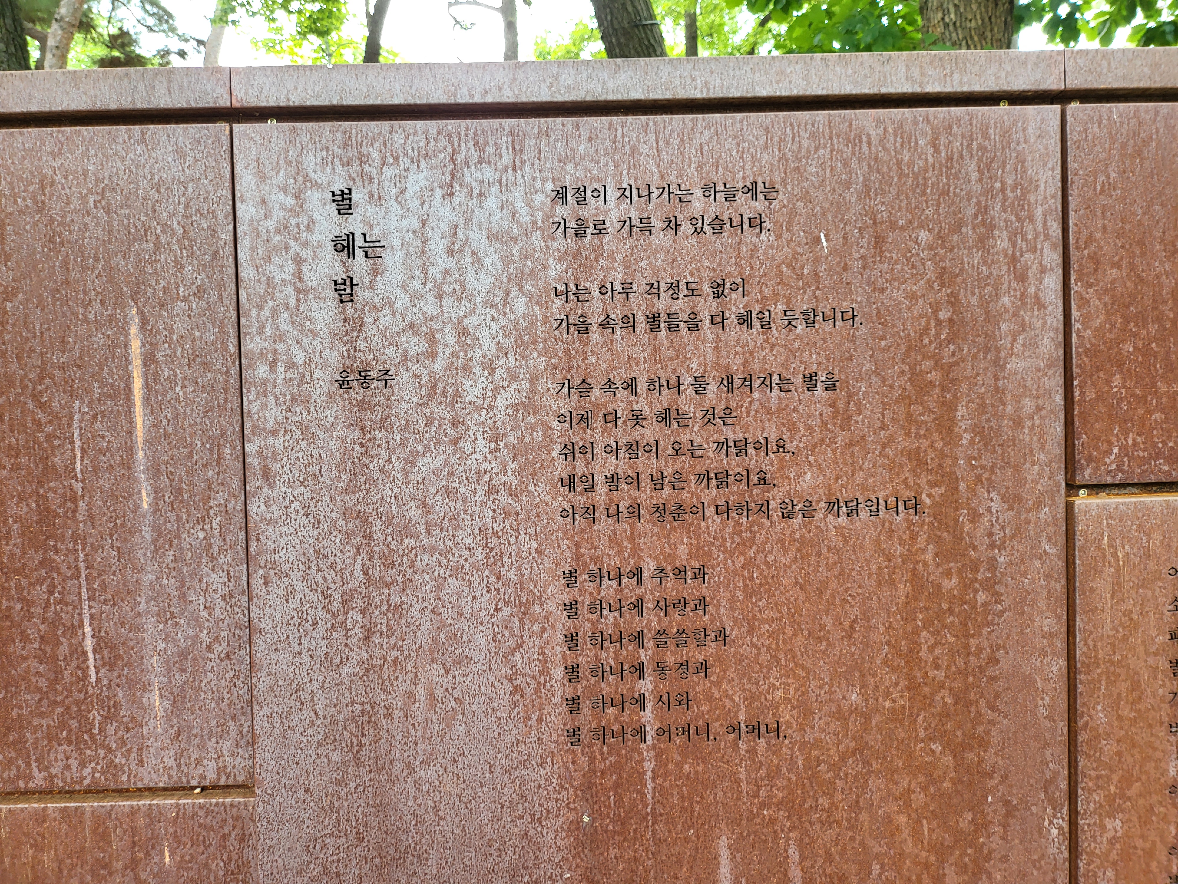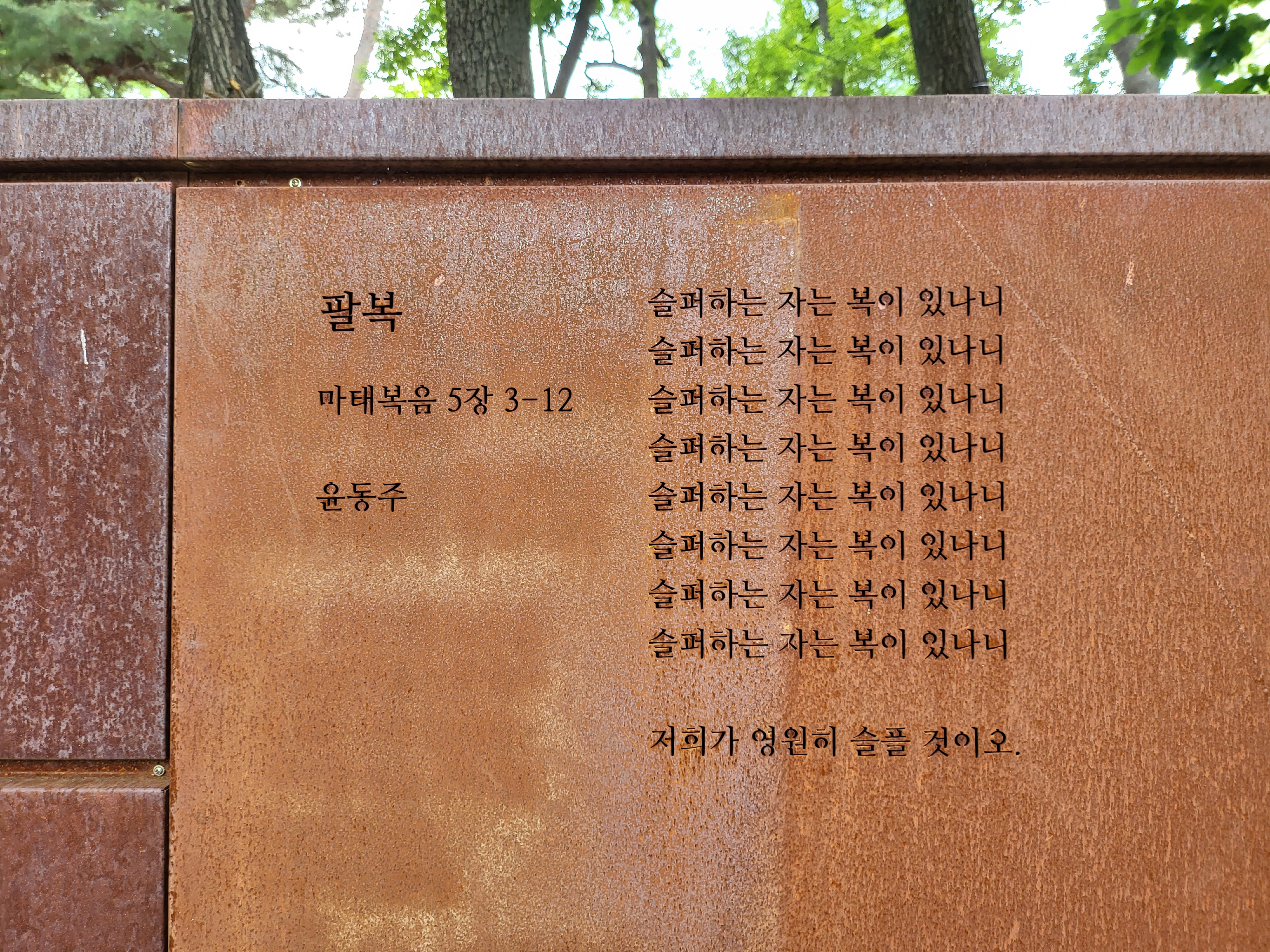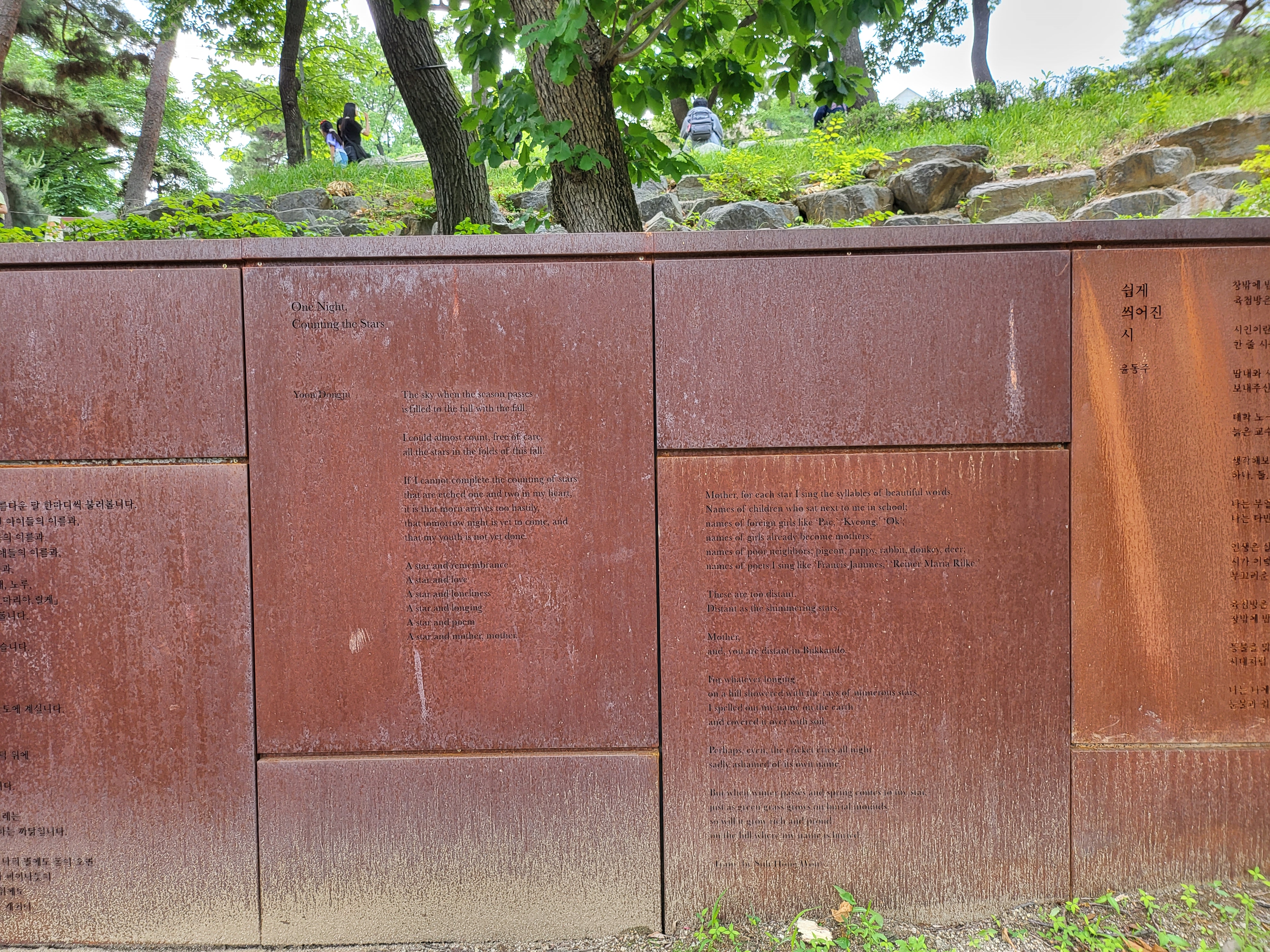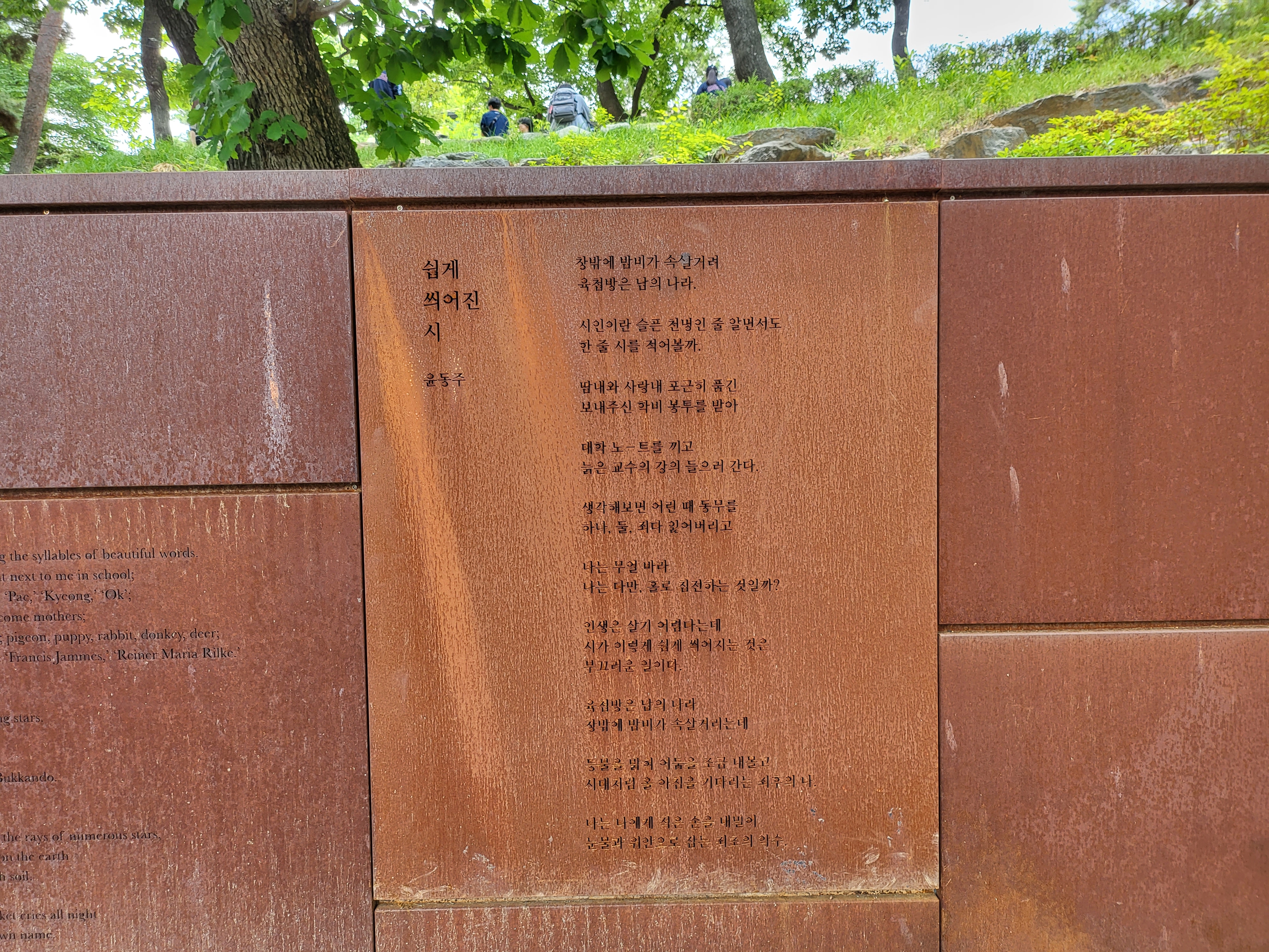 Dong-Ju Literature Garden along with commemorative sculptures featuring the poetic works of Yoon Dong-Ju.