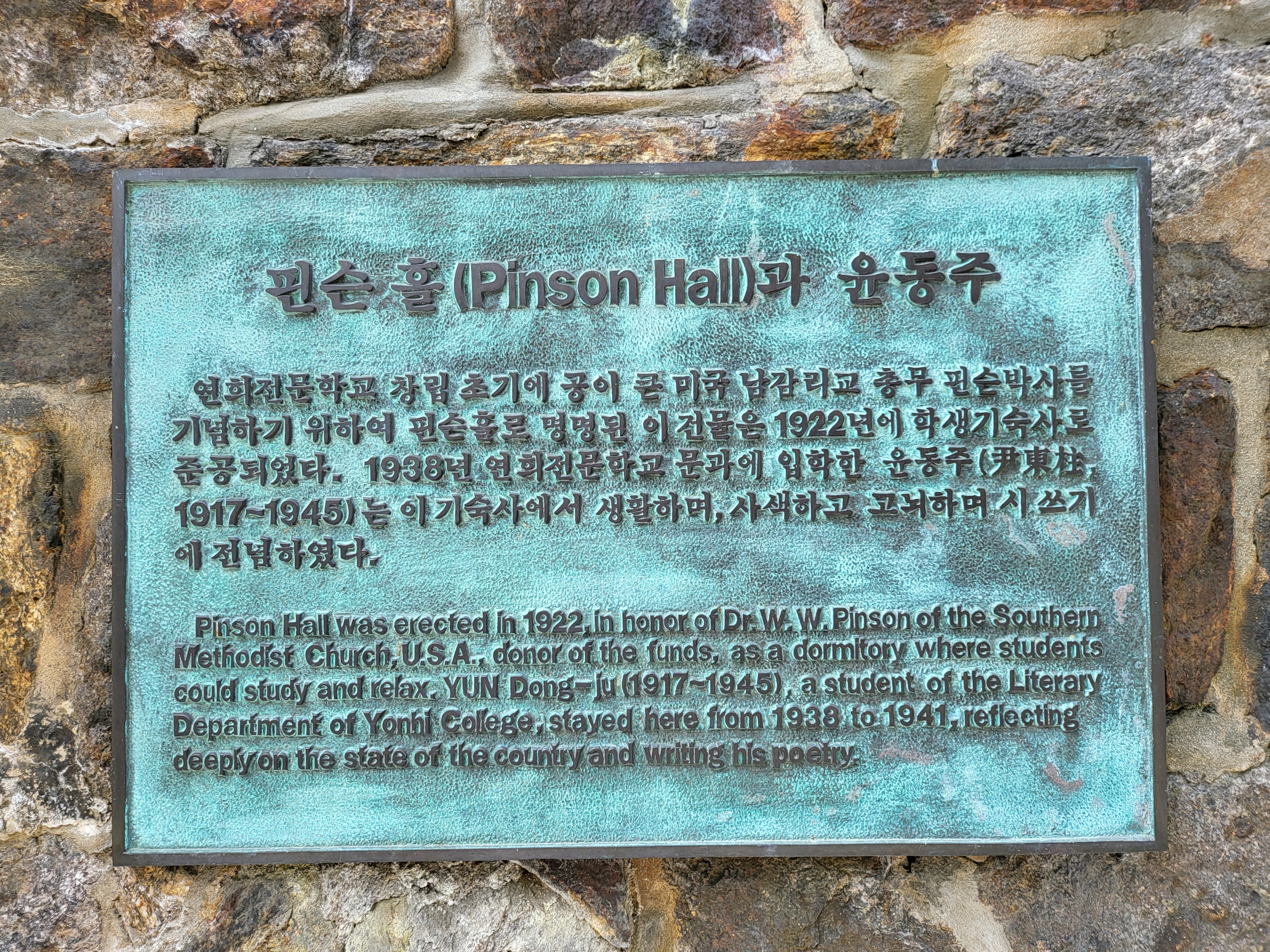 Starting in 2020, Pinson Hall has been allotted a concomitant name of Yoon Dong-Ju Memorial House in memory of the eponymous poet who lived in Pinson Hall.