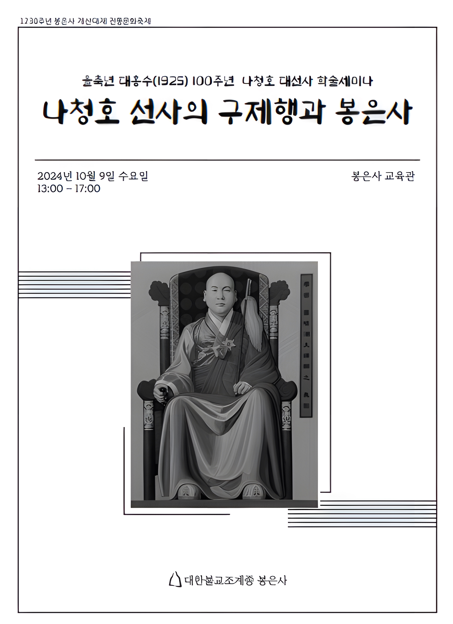 '을축년 대홍수(1925) 100주년 나청호 대선사 학술세미나 나청호 선사의 구제행과 봉은사'