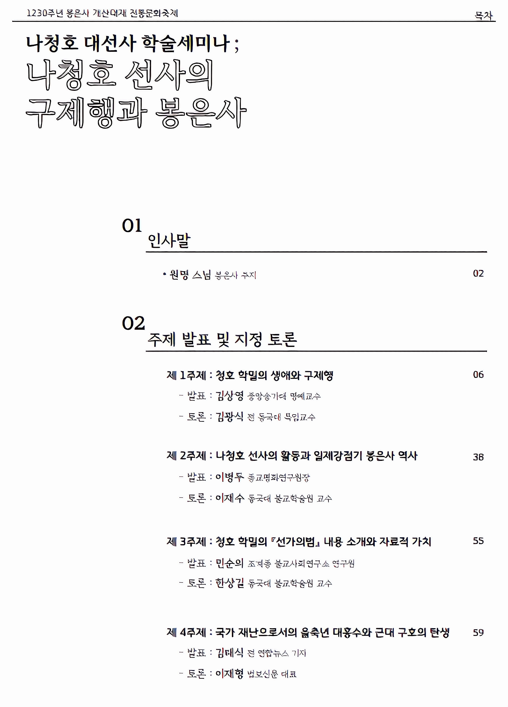 이 자리는 봉은사가 주최하는 곳인 까닭에 나청호 선사 구제활동에 초점을 맞춘다.