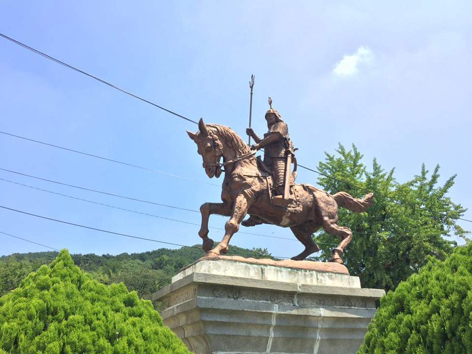 구자곡초등학교 내 계백장군상과 군청 앞 계백장군상