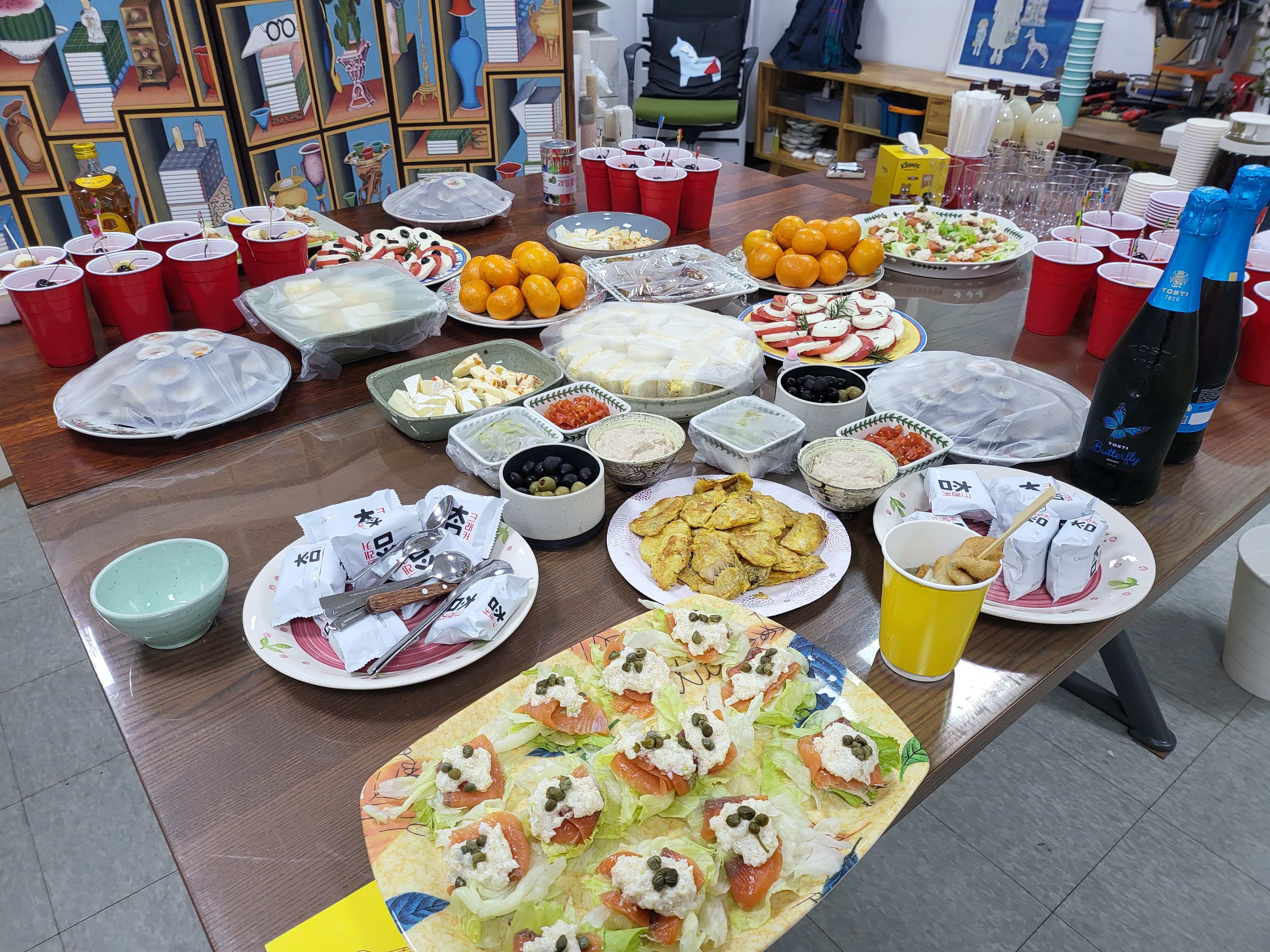 산해진미는 다 모았으니 듣자니 이 작가가 친구 불러 강제노역해가며 아침부터 준비했다니 그 정성 고마울 따름이다.