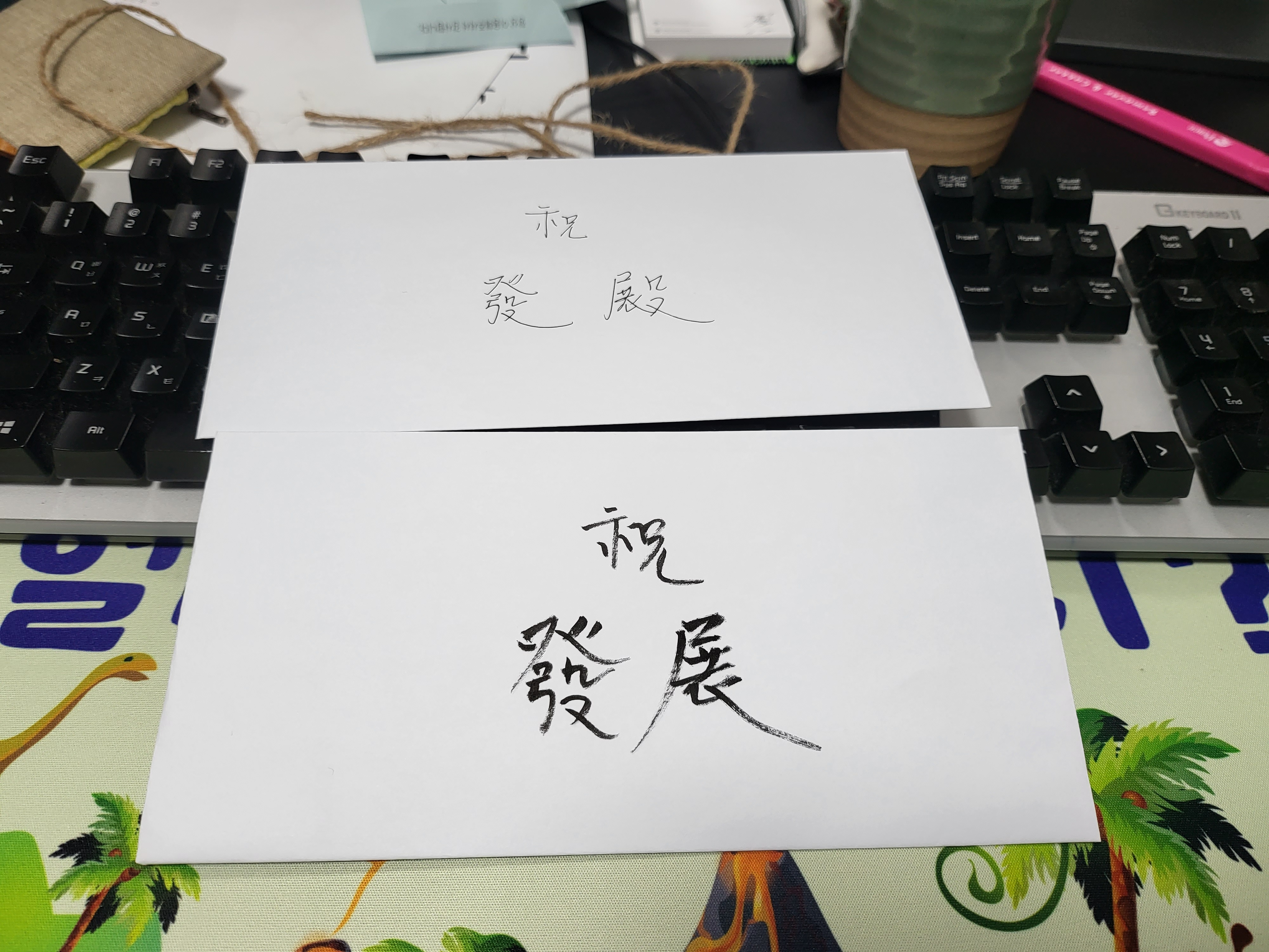 그냥 갈 순 없어 필요한 걸 물었더니 없다 해서 할 수 없이 봉투를 준비했다. 축 발전이라 쓰는데 뿔싸 한자를 모르겠더라.