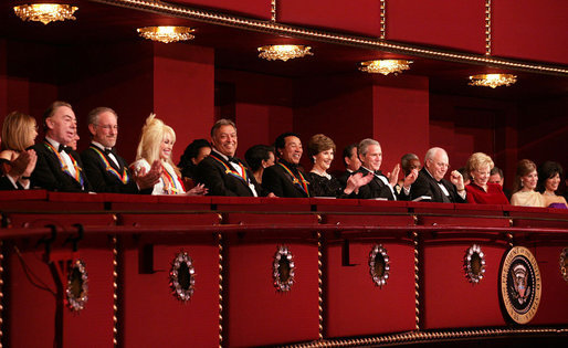 From Wikipedia, the free encyclopedia Annual American honor in the performing arts Award The 2006 honorees at the Kennedy Center on December 6, 2006, with President George W. Bush and First Lady Laura Bush; from left, Andrew Lloyd Webber, Steven Spielberg,