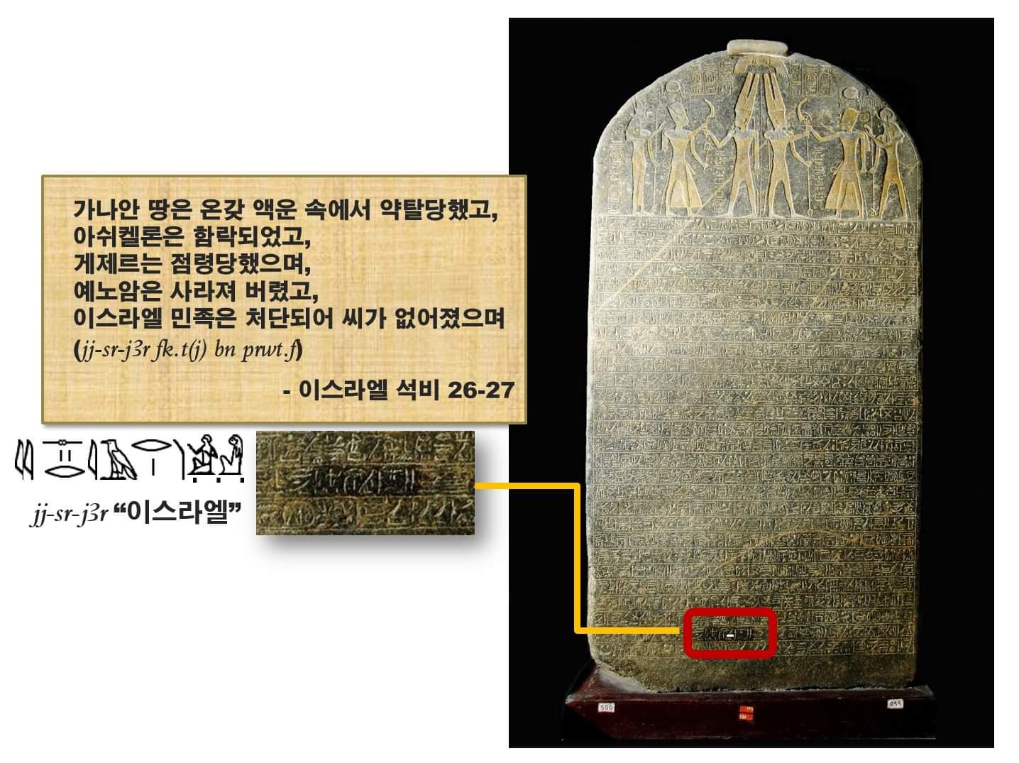 내친 김에 이스라엘에 대해 설명드리면, "이스라엘"이라는 민족명이 역사 상 처음 언급된 문헌은 람세스 2세의 아들인 메렌프타가 세운 『메렌프타의 전승비』(Victory Stela of Merenptah)입니다.