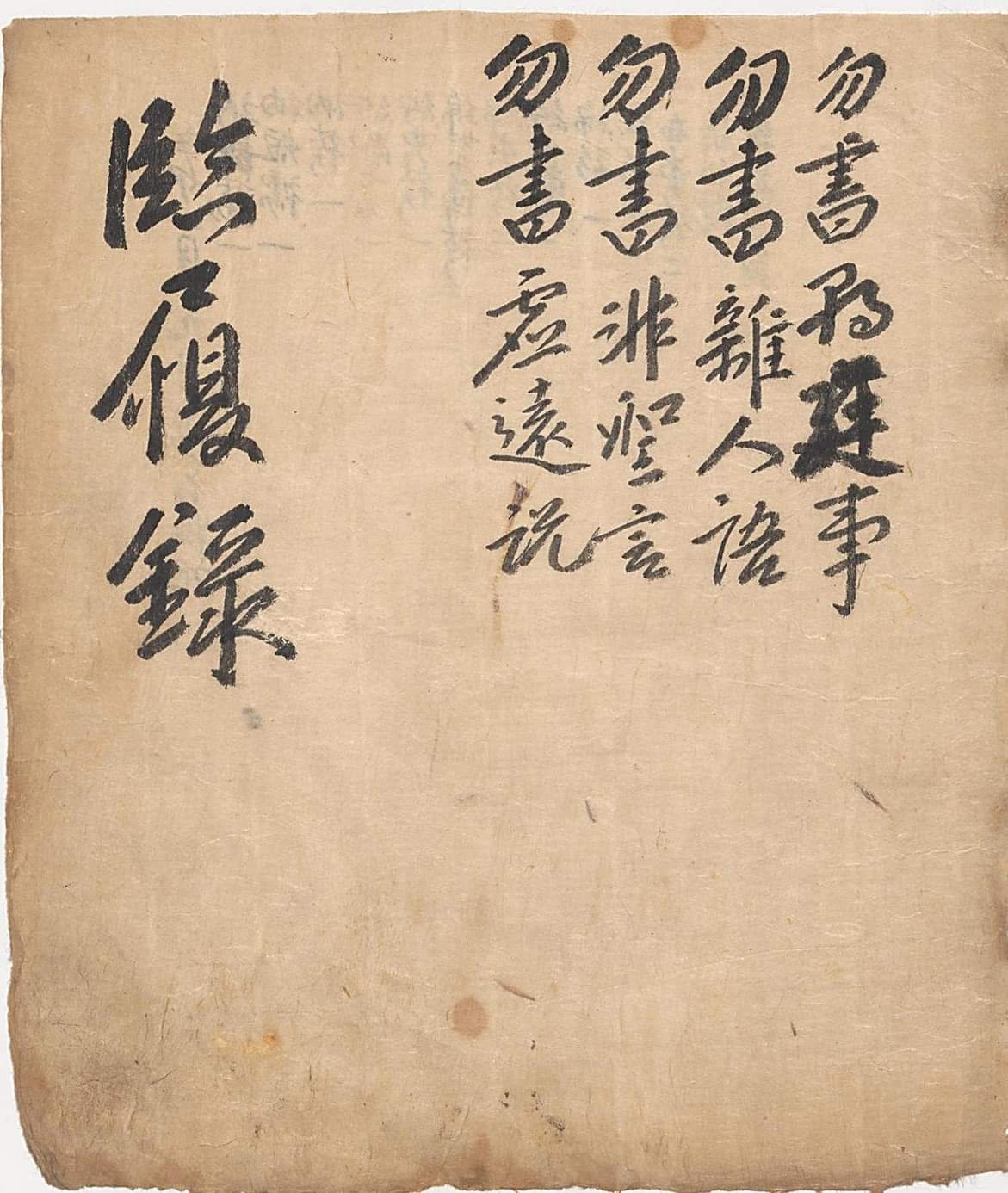 "조정의 일을 쓰지 않고, 잡스러운 사람의 말을 쓰지 않고, 성인의 말씀이 아니면 쓰지 않고, 허원한 주장을 쓰지 않는다.[勿書朝廷事 勿書雜人語 勿書非聖言 勿書虛遠說]"