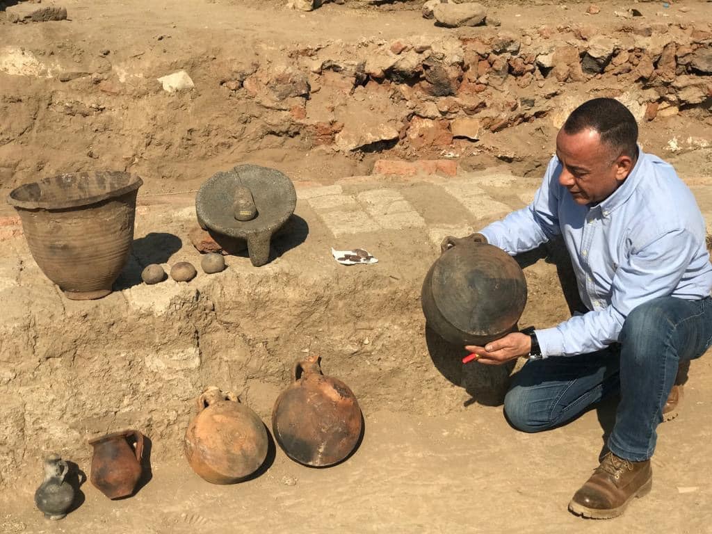 And confirmed d Mustafa Waziri on the importance of the discovery as he unveiled the most important and oldest residential city in Eastern Bar in Luxor Governorate, which is an extension of the ancient city of Tiba, noting that during the archaeological excavations the mission found a number of residential buildings and bathroom towers from the second and third centuries AD, and a number of industrial and in-law workshops. The metals include a number of pots, water bottles, bells, pottery, grinding tools and Roman coins of copper and bronze.