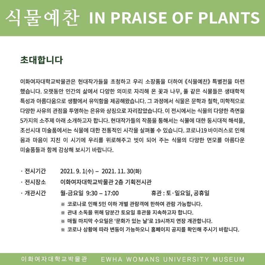 이화여자대학교박물관은 현대작가들을 초청하고 우리 소장품을 더하여 《식물예찬》 특별전을 마련했습니다.