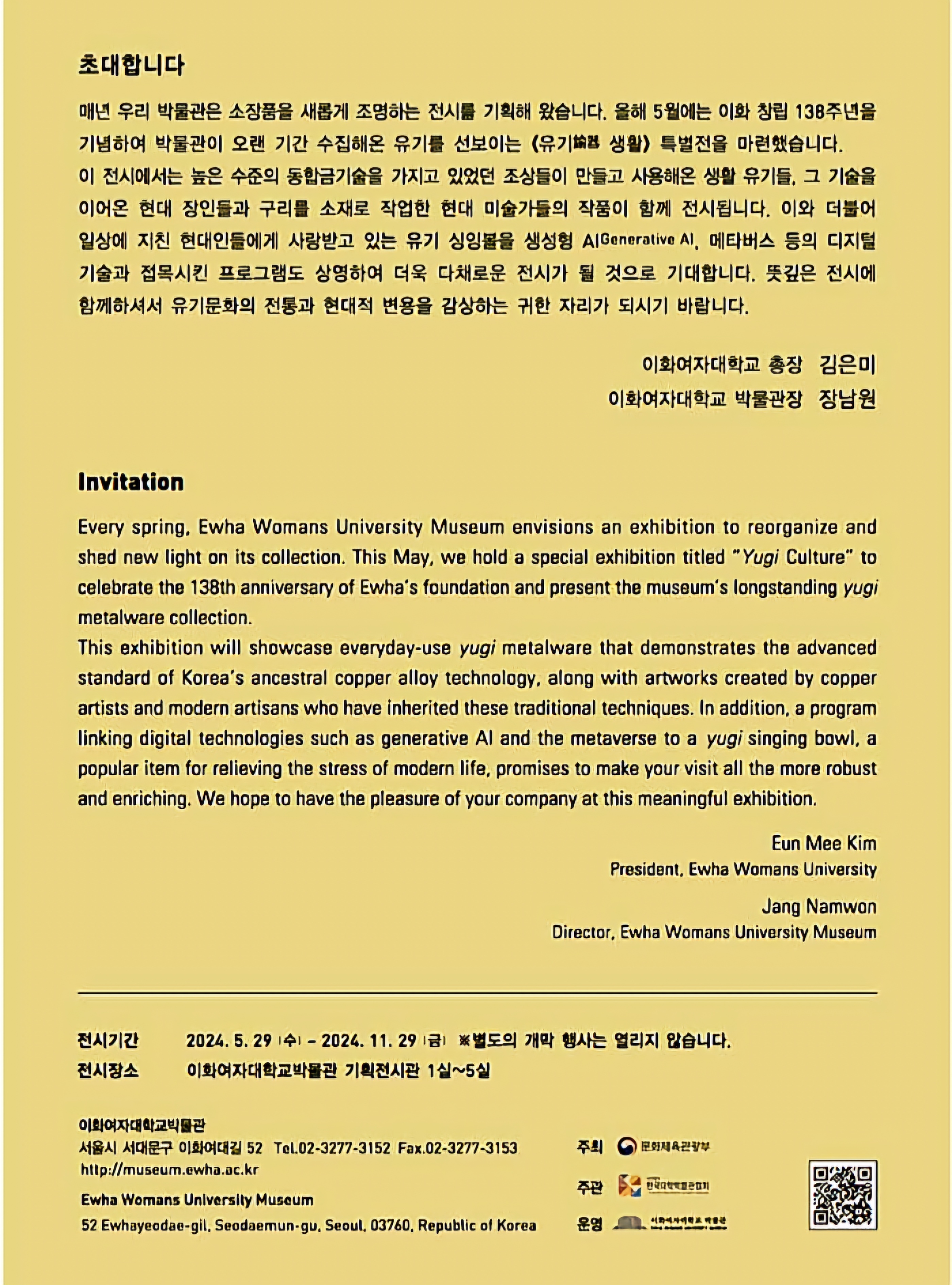 이화여자대학교 박물관 특별전 <유기鍮器 생활>