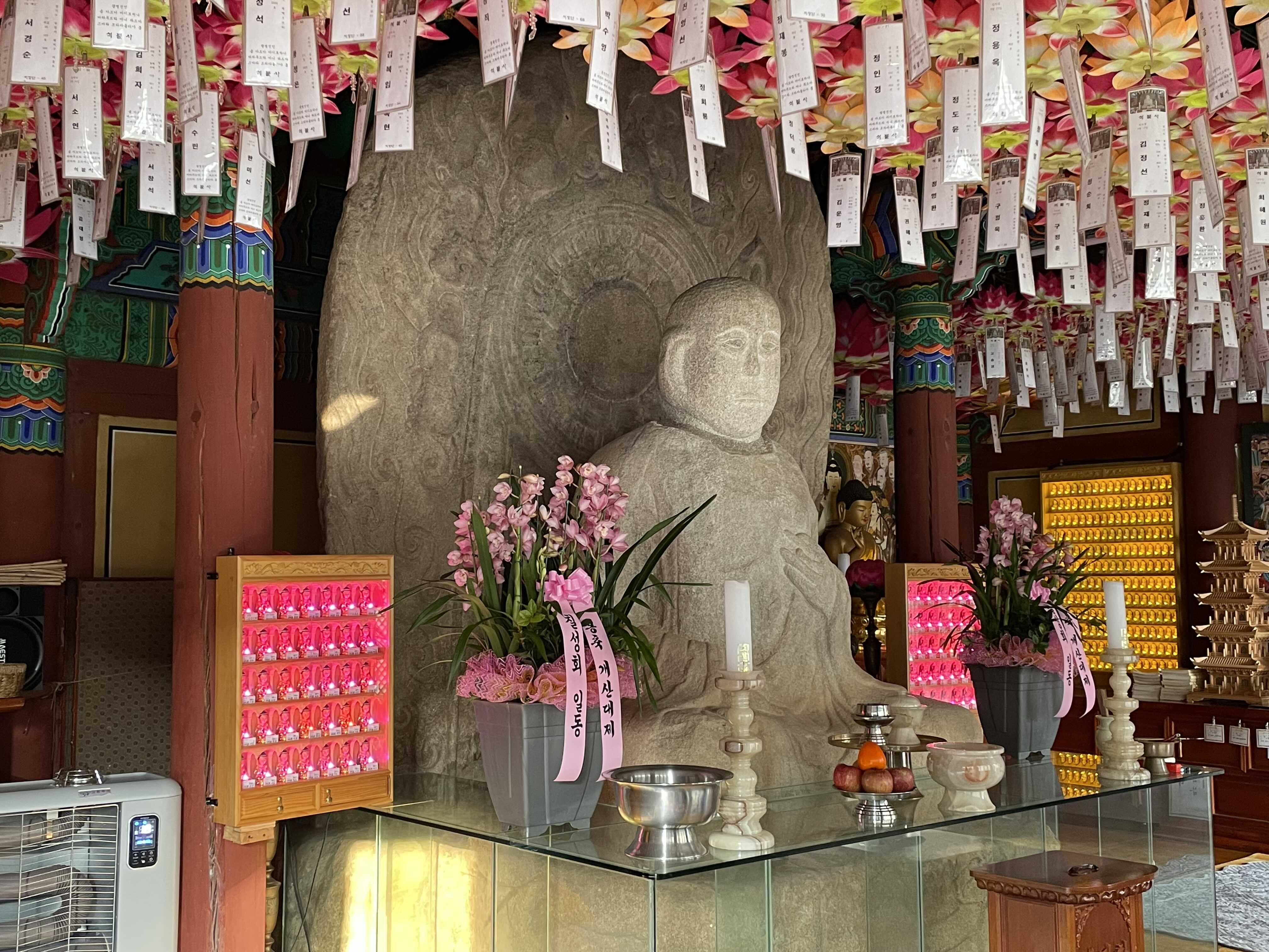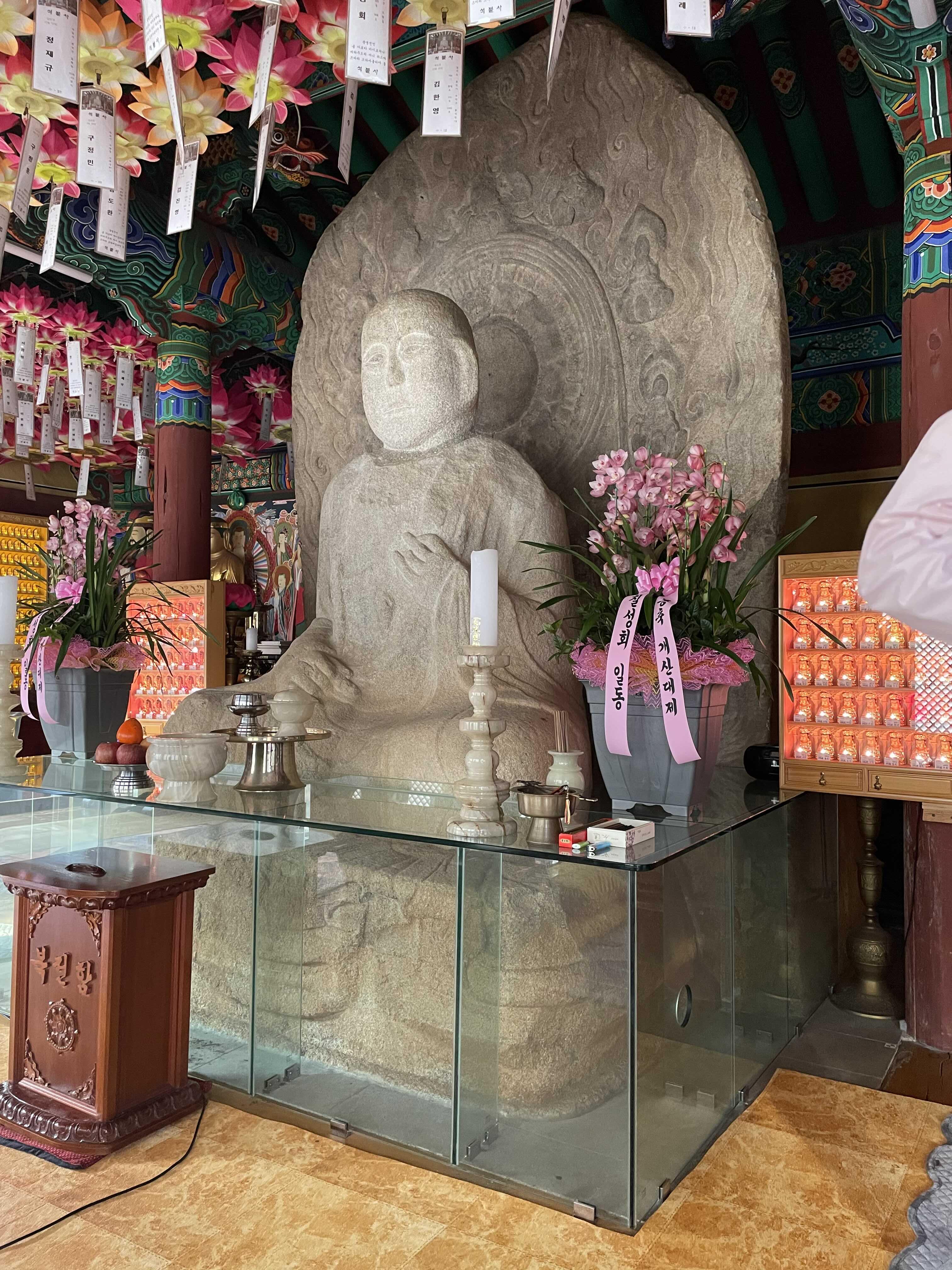 석조여래좌상을 모셔둔 위에 그대로 절을 세웠군요.