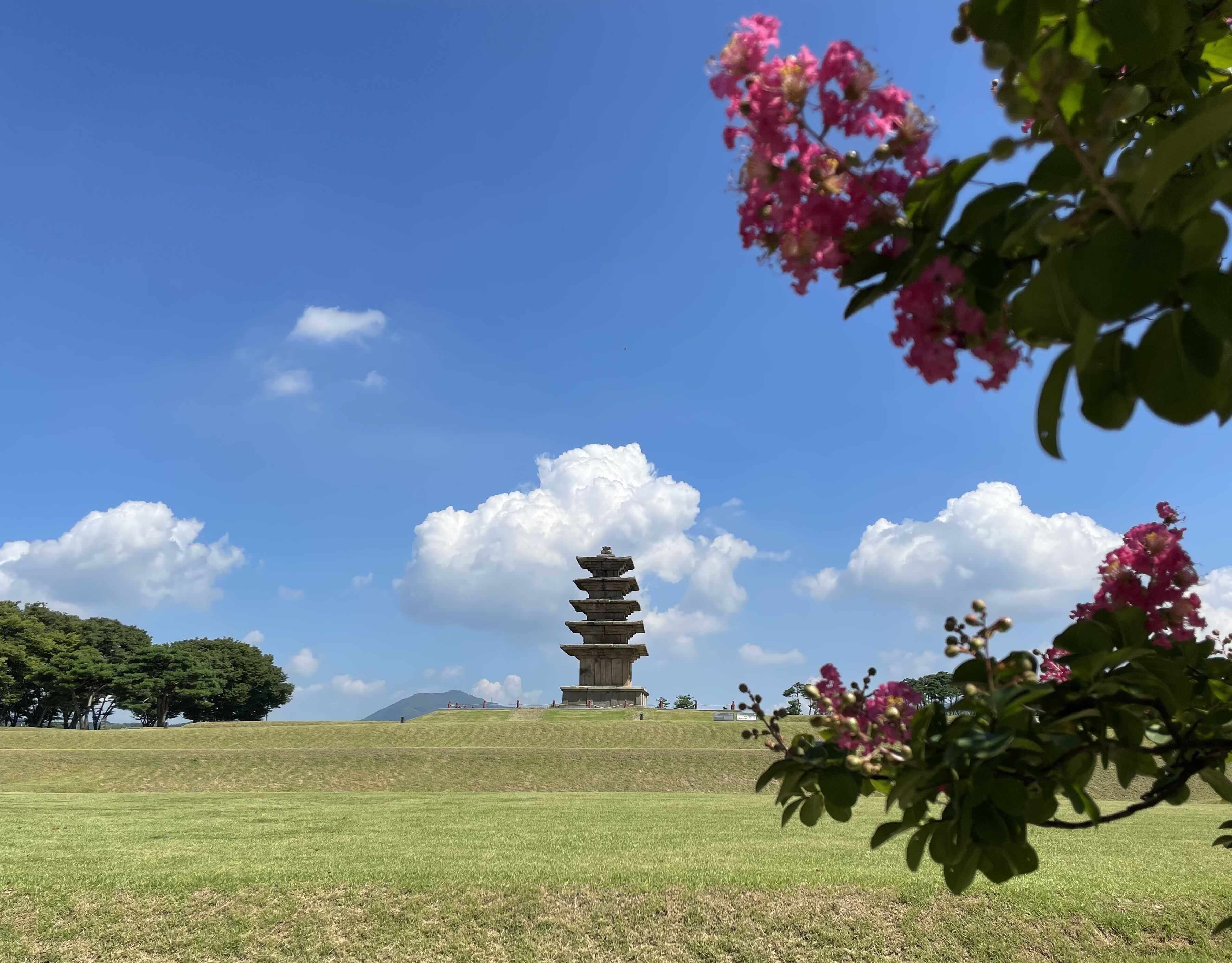 뜨거운 열기도 식혀줄 겸, 석탑 머리 위로 시원하게 비가