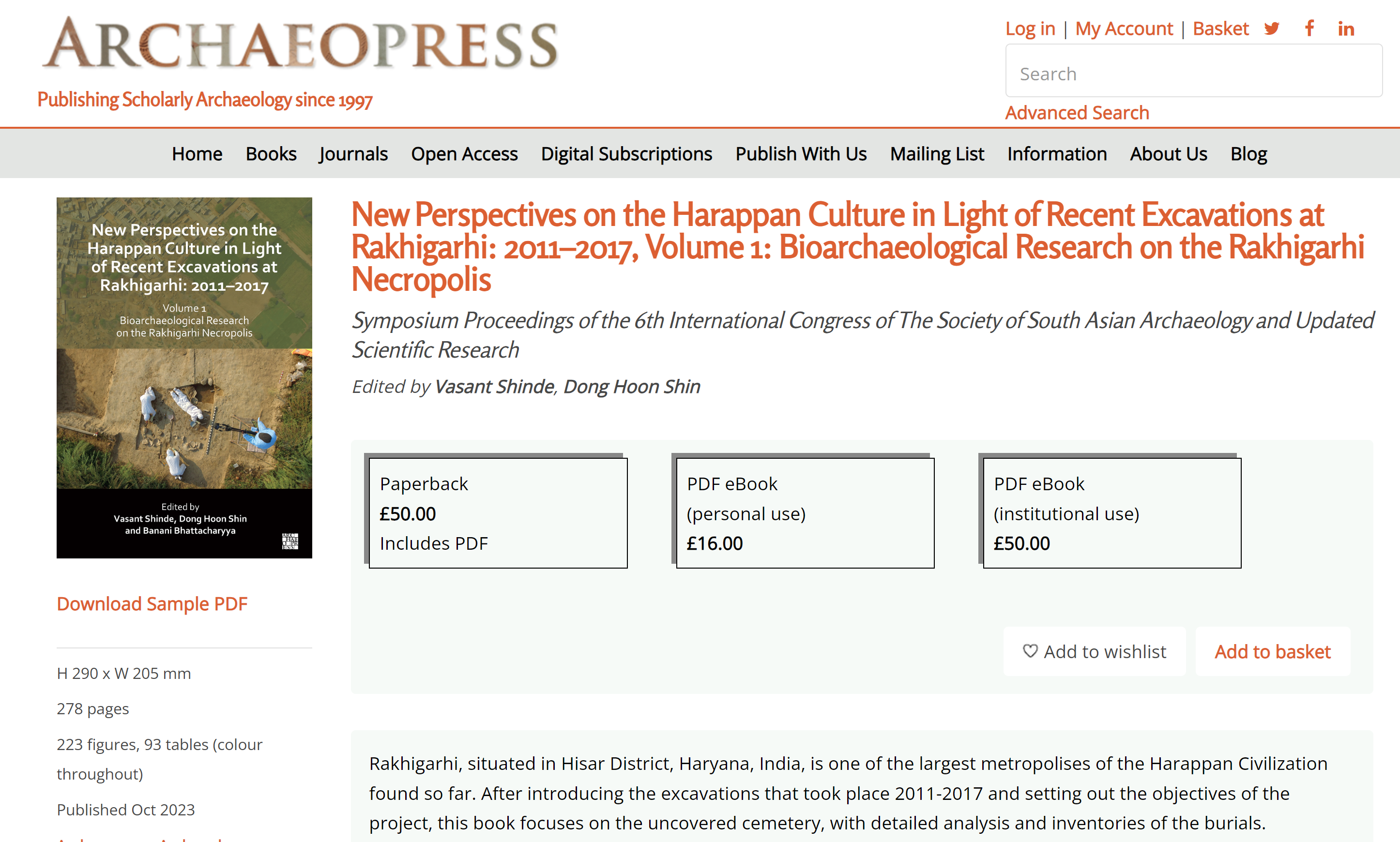 본 연구진의 인더스 문명 유적 발굴 조사 단행본이 최종 출간되었습니다.