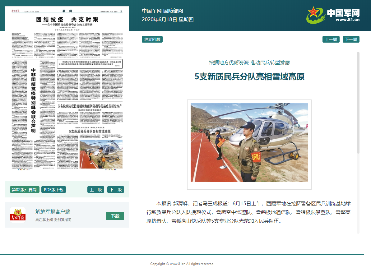 중국 인민해방군 뉴스포털 중국군망을 인용한 우리 공장 중국 특파 전언에 의하면 인도와 인접한 서장西藏, 곧 티베트 접경지역에 주둔하는 서장군구 등이 지난 15일 라사拉薩 경비구역 민병훈련기지에서 새로 창설한 5개 민병대 깃발 수여식을 거행했다는데