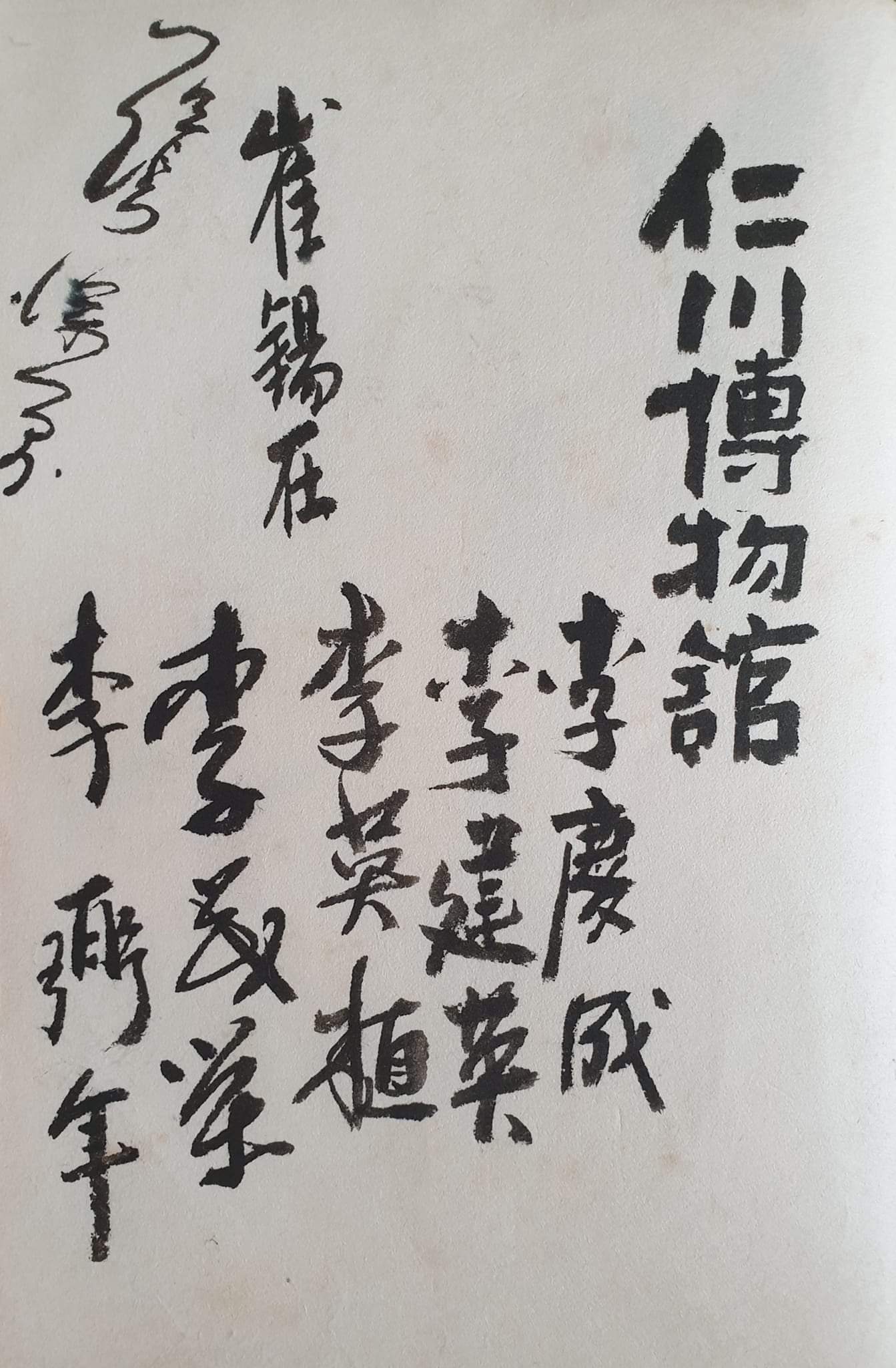 방명록 한 장의 아래 쪽으로 무슨 '이씨' 종친회 하듯, 이씨 성을 가진 다섯 명의 이름이 적혀 있다. 인천박물관 글씨와 이씨 다섯 명의 이름은 한 사람이 대리해서 모두 쓴 것으로 보인다.