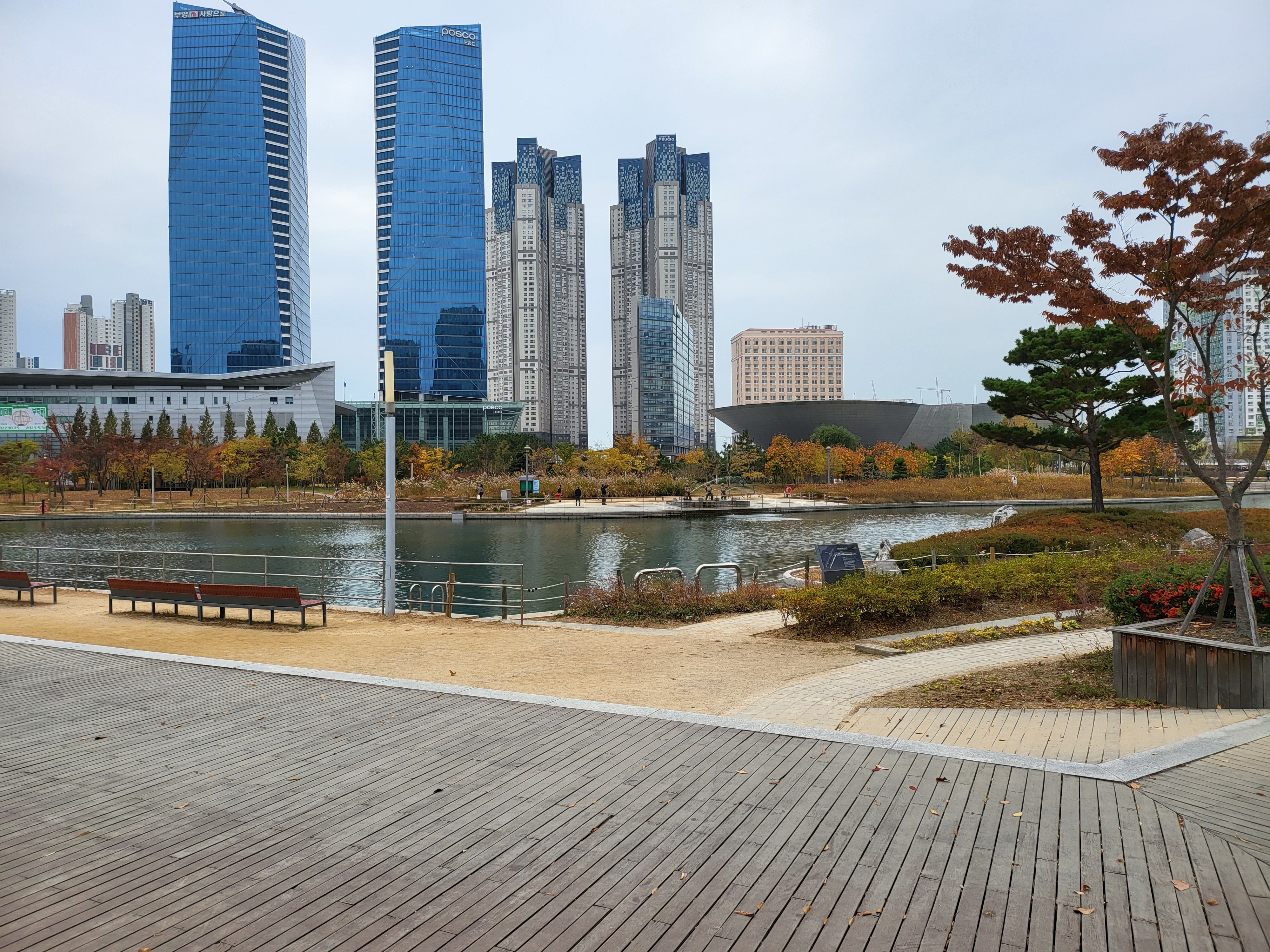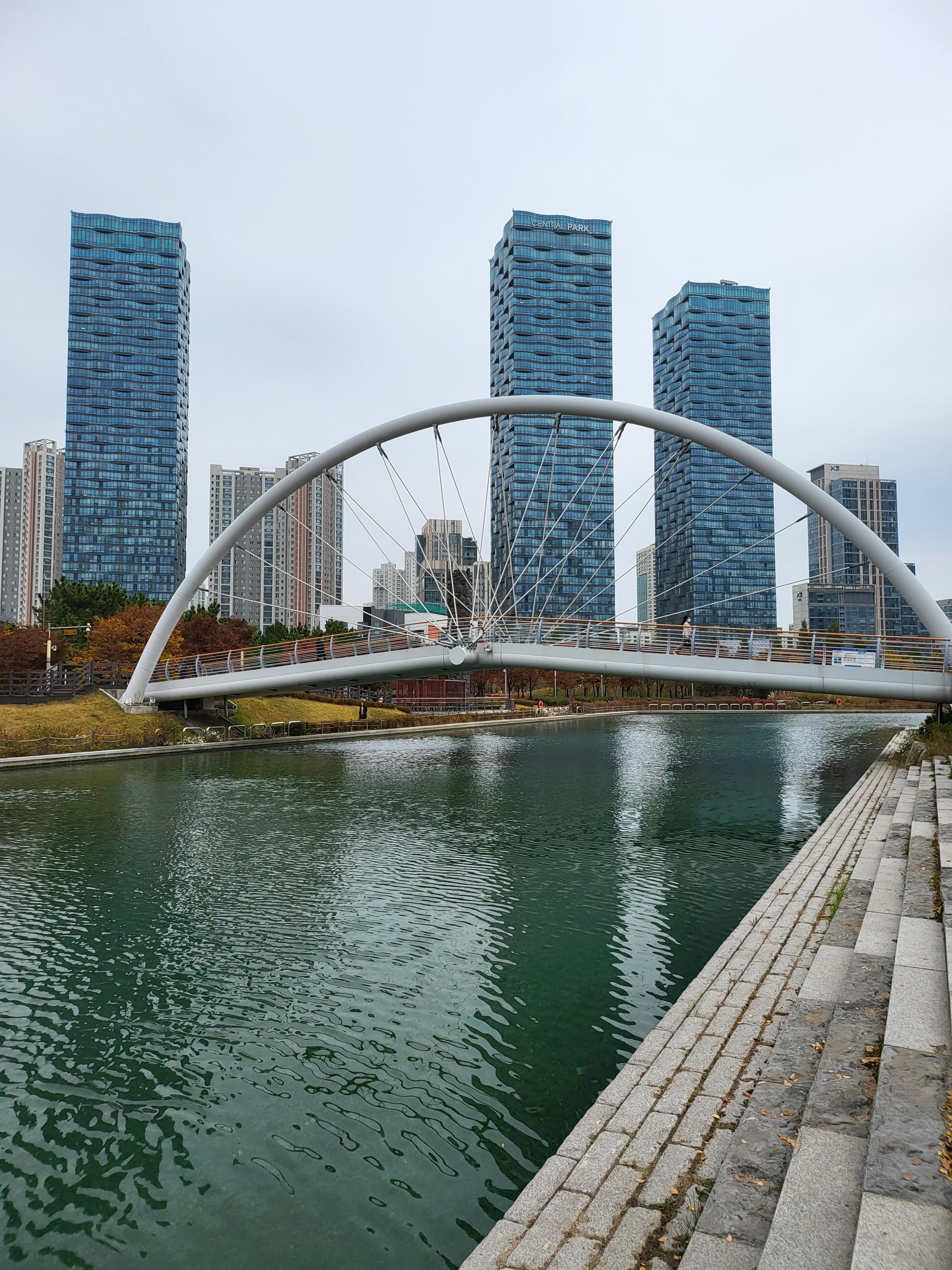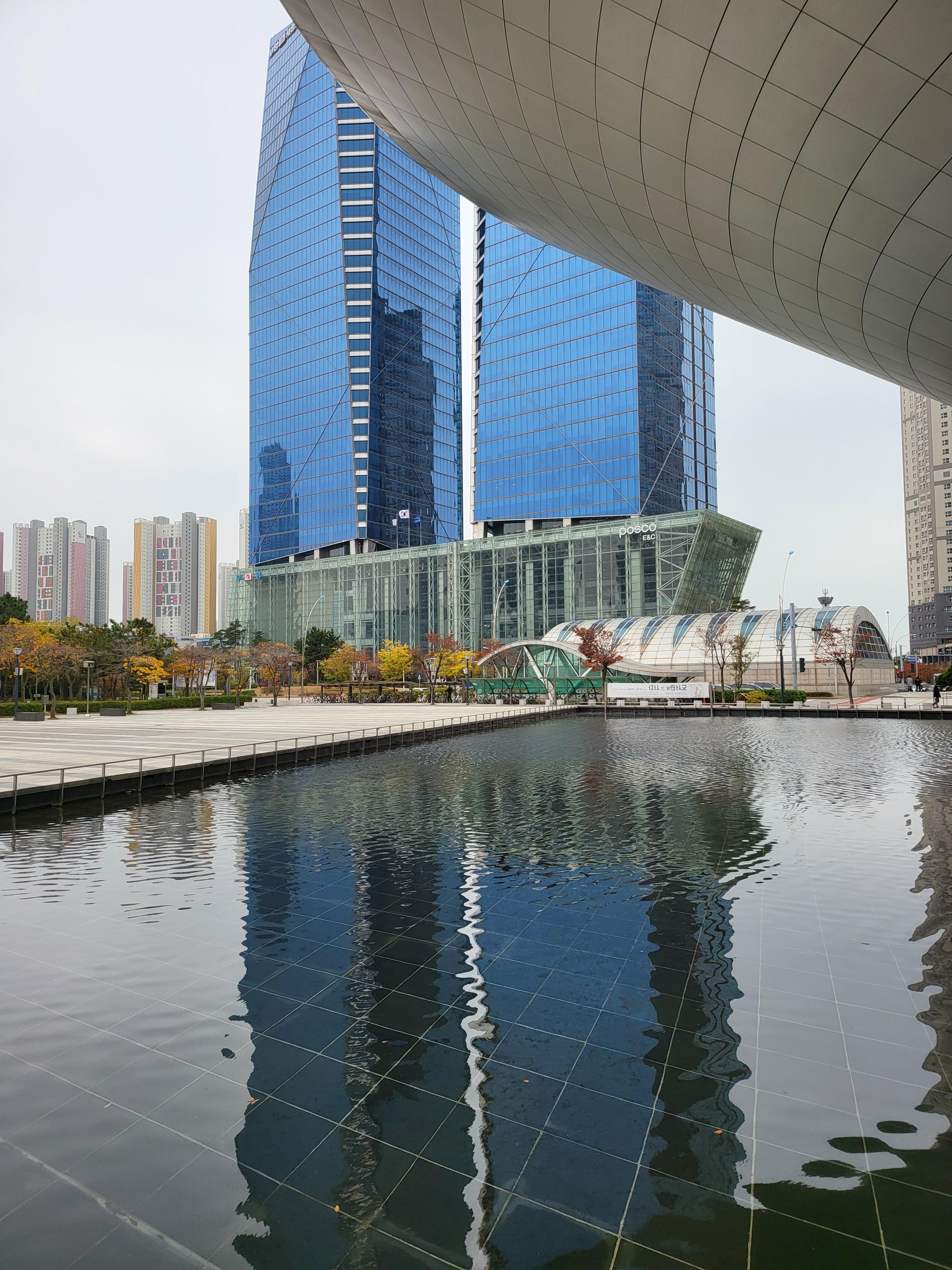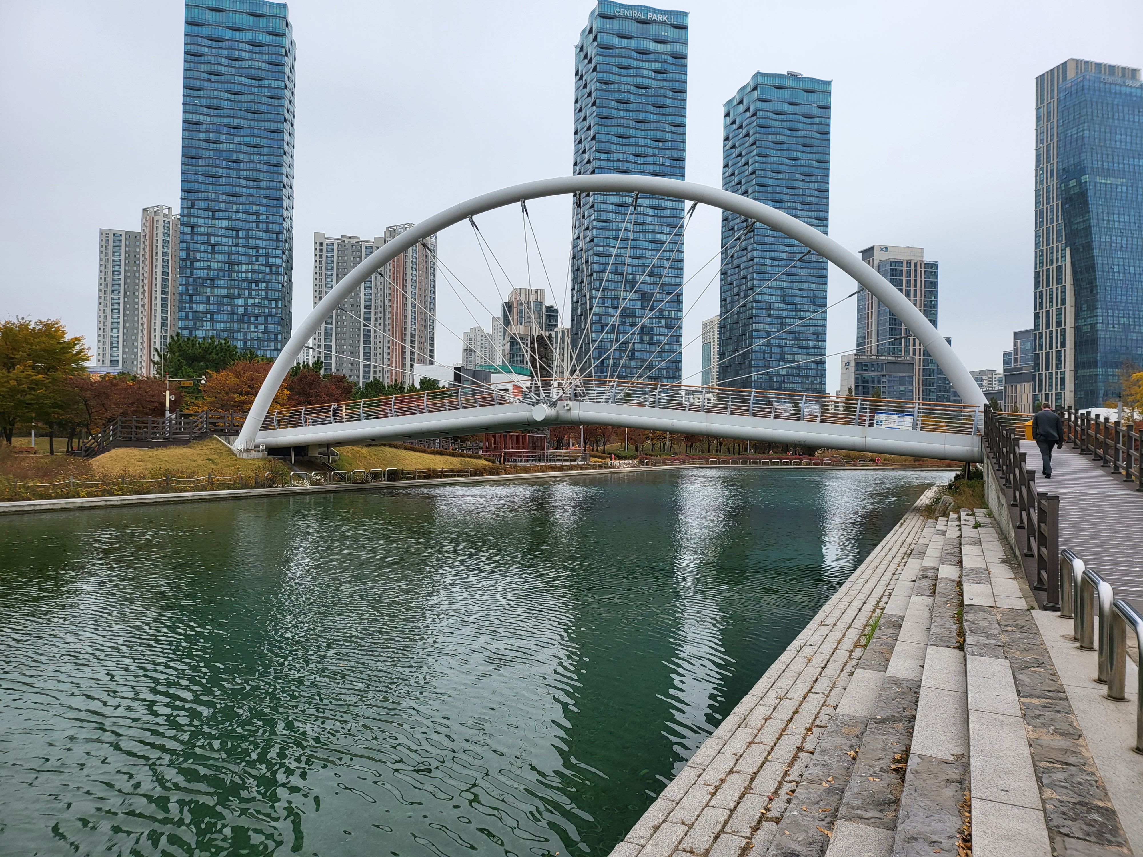 그곳 센트럴파크 역이란 데서 내려 지상으로 나오니 별유천지 비인간이라 이곳이 인천 송도 국제도시라는데 분명 그런 풍모가 다대해서 이 신도시가 처음은 아니지만 이곳은 처음이라 쭛볏쭛볏 솟은 마천루 건물은 위선 외양과 색깔이 우리한테 익숙한 그런 것들과는 완연히 달라 외계인 우주도시 온 듯한 풍경을 선사한다.