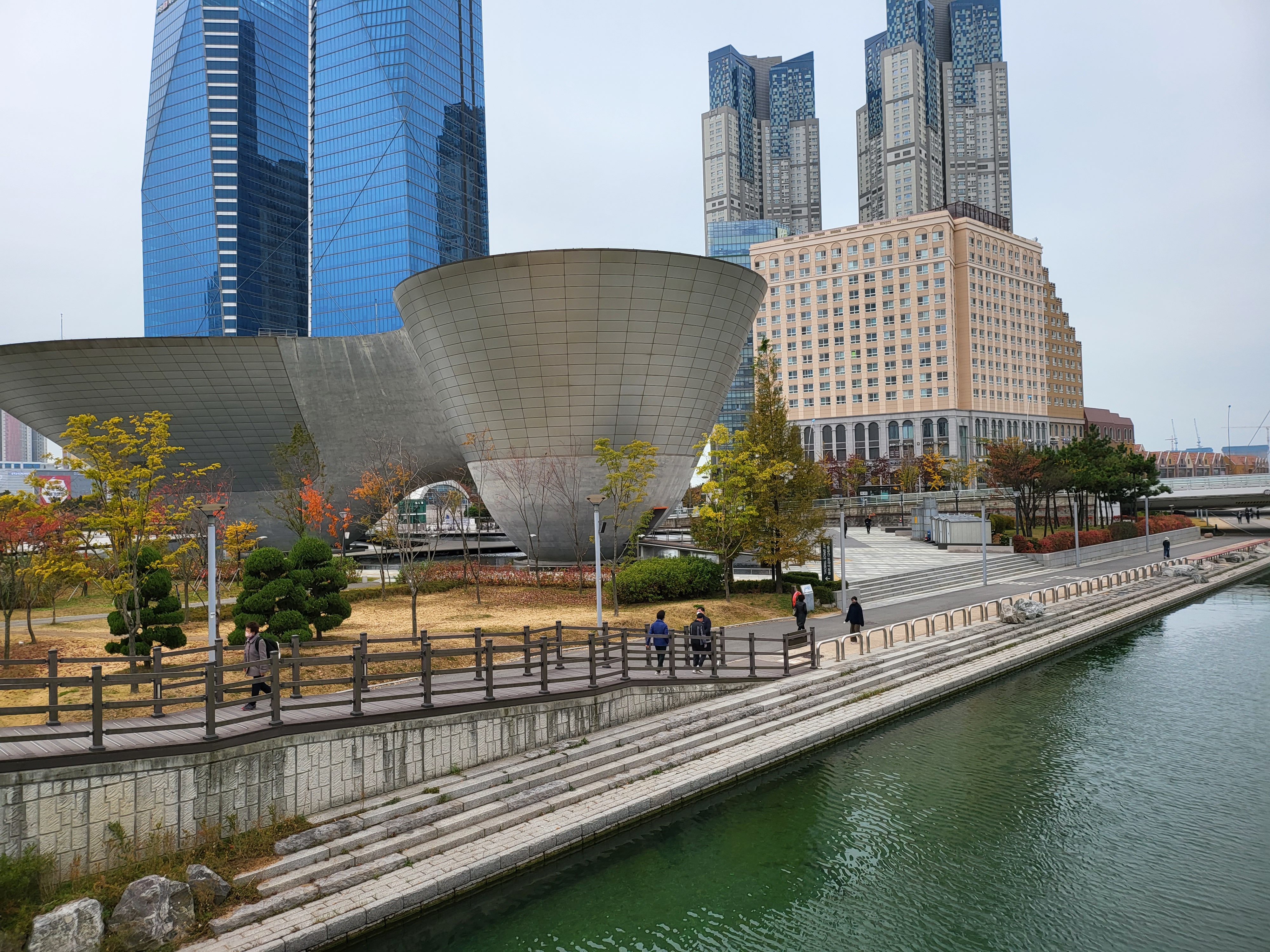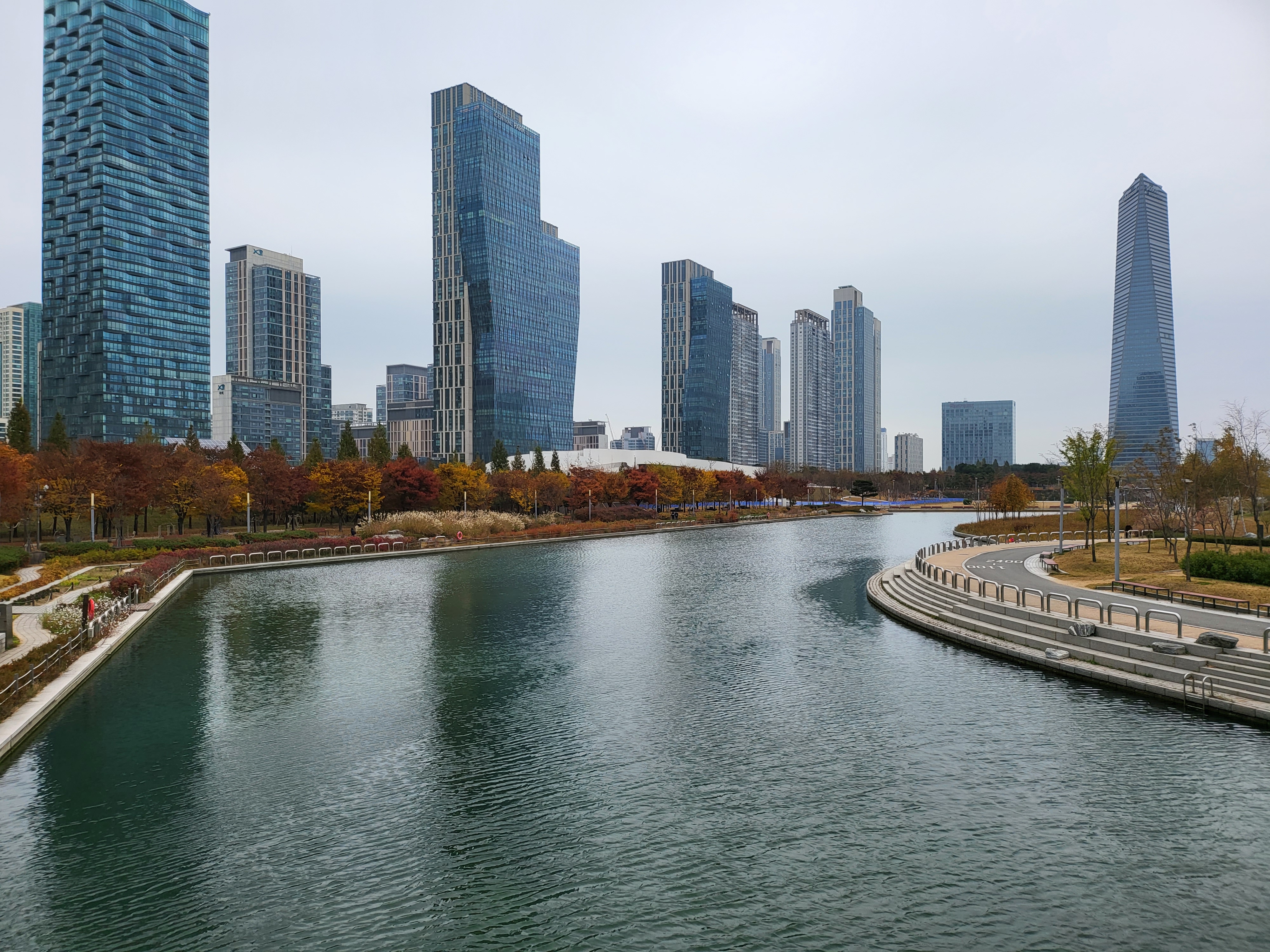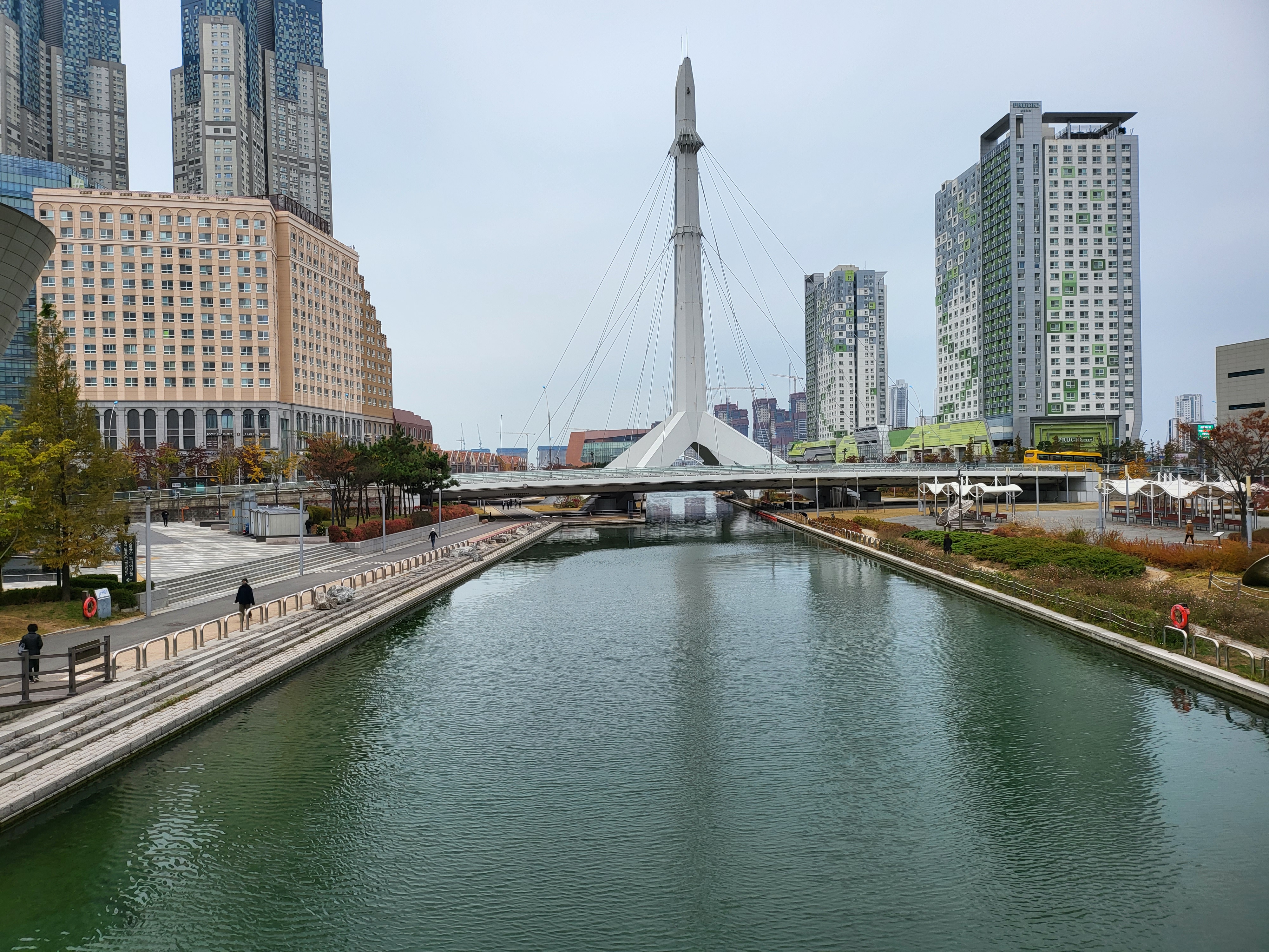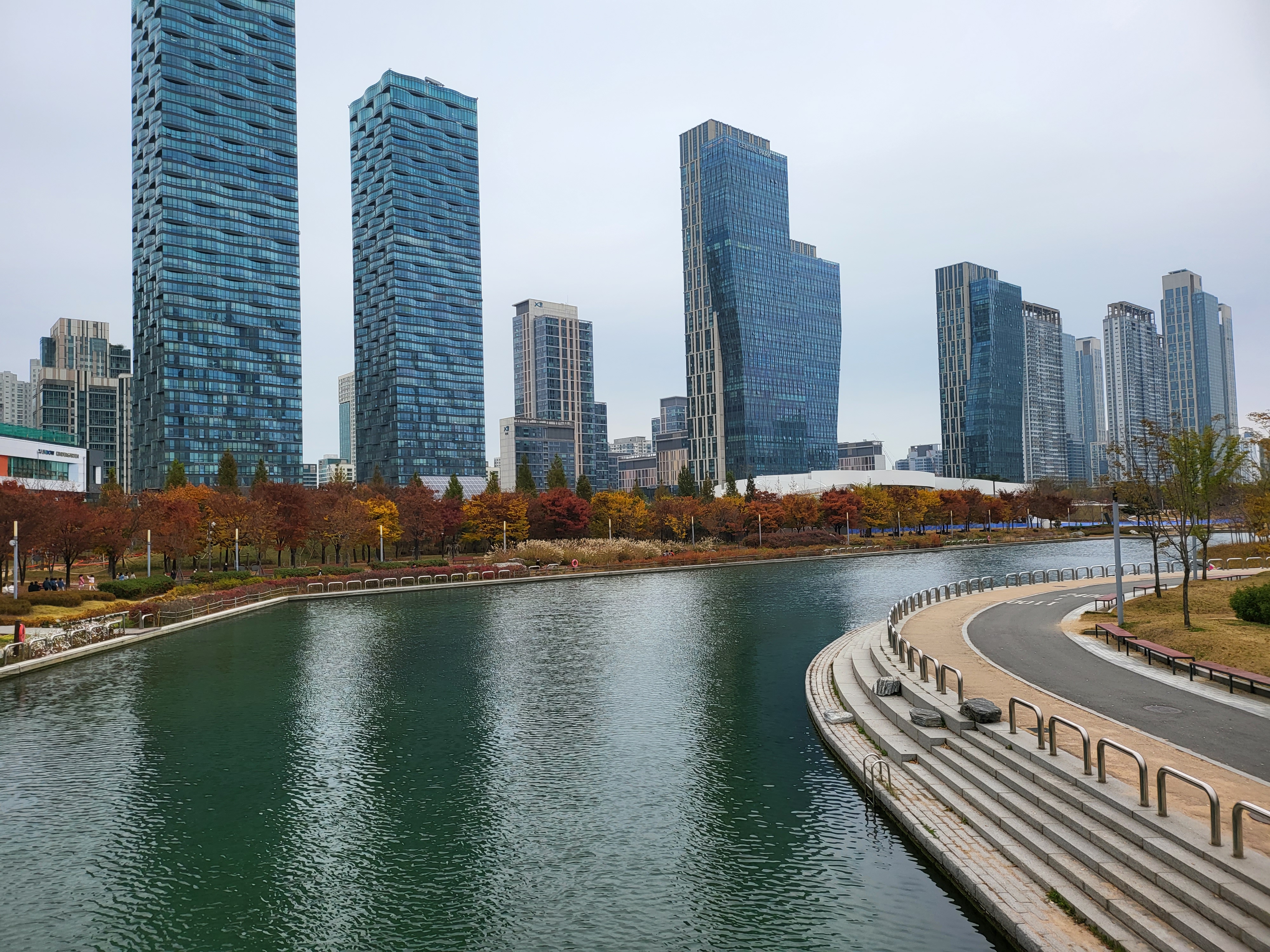 그곳 센트럴파크 역이란 데서 내려 지상으로 나오니 별유천지 비인간이라 이곳이 인천 송도 국제도시라는데 분명 그런 풍모가 다대해서 이 신도시가 처음은 아니지만 이곳은 처음이라 쭛볏쭛볏 솟은 마천루 건물은 위선 외양과 색깔이 우리한테 익숙한 그런 것들과는 완연히 달라 외계인 우주도시 온 듯한 풍경을 선사한다.