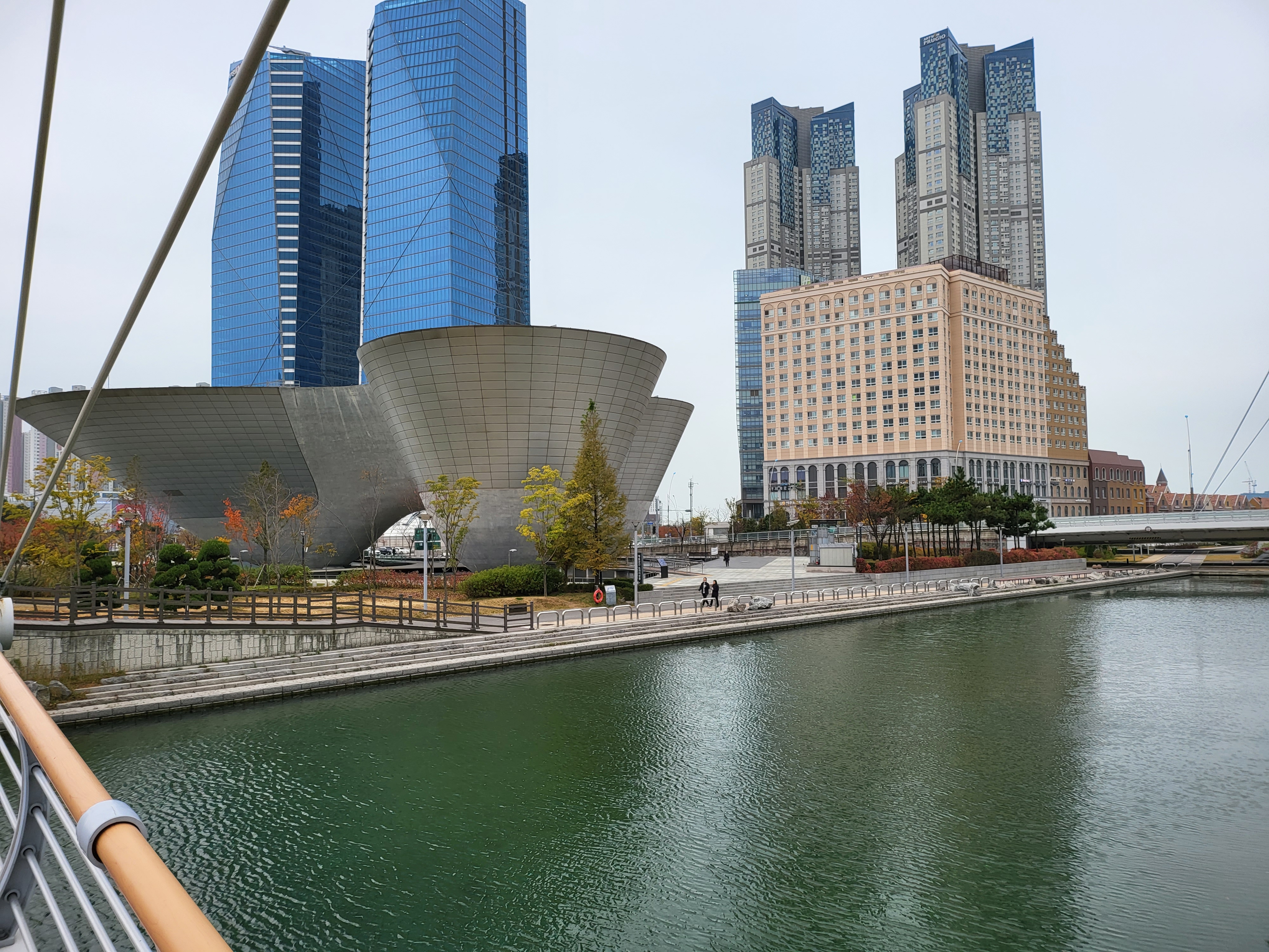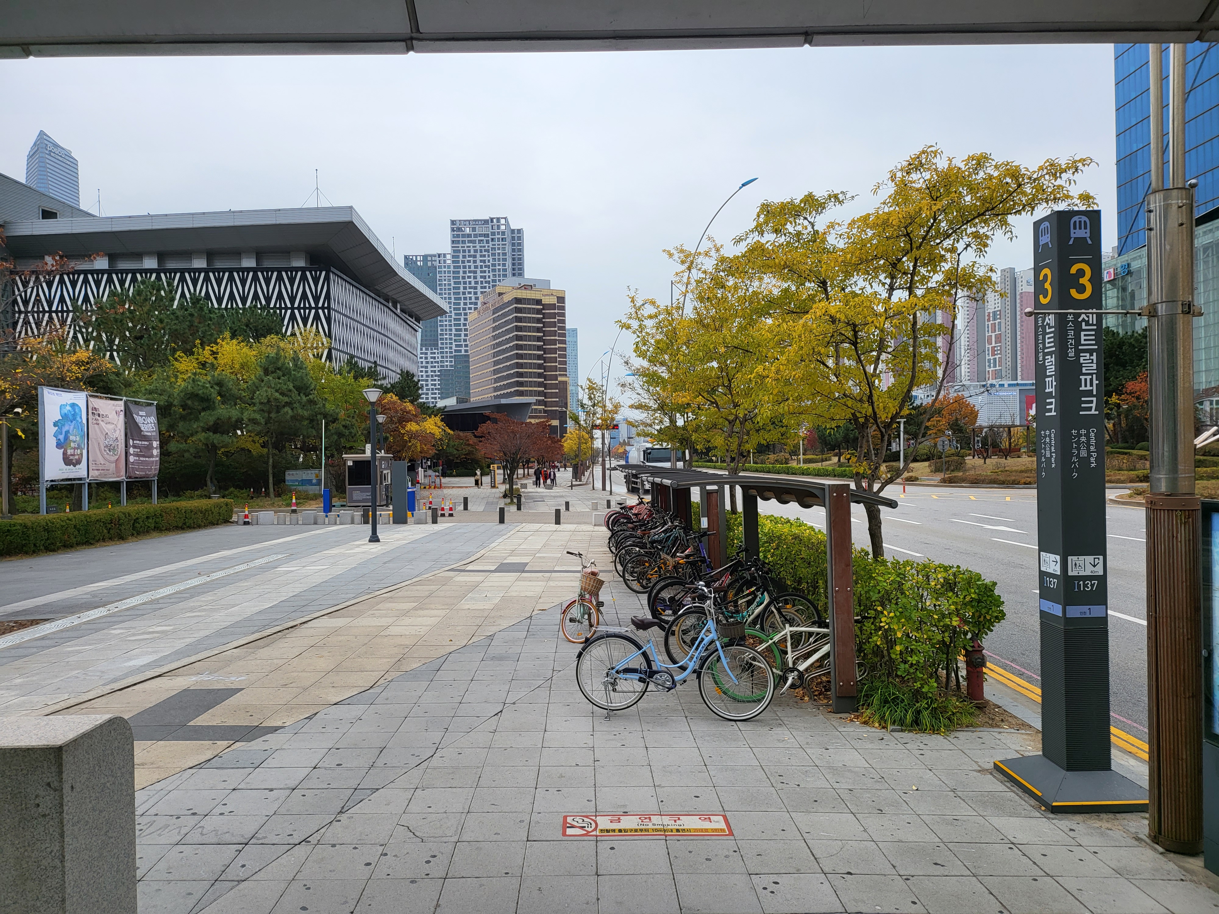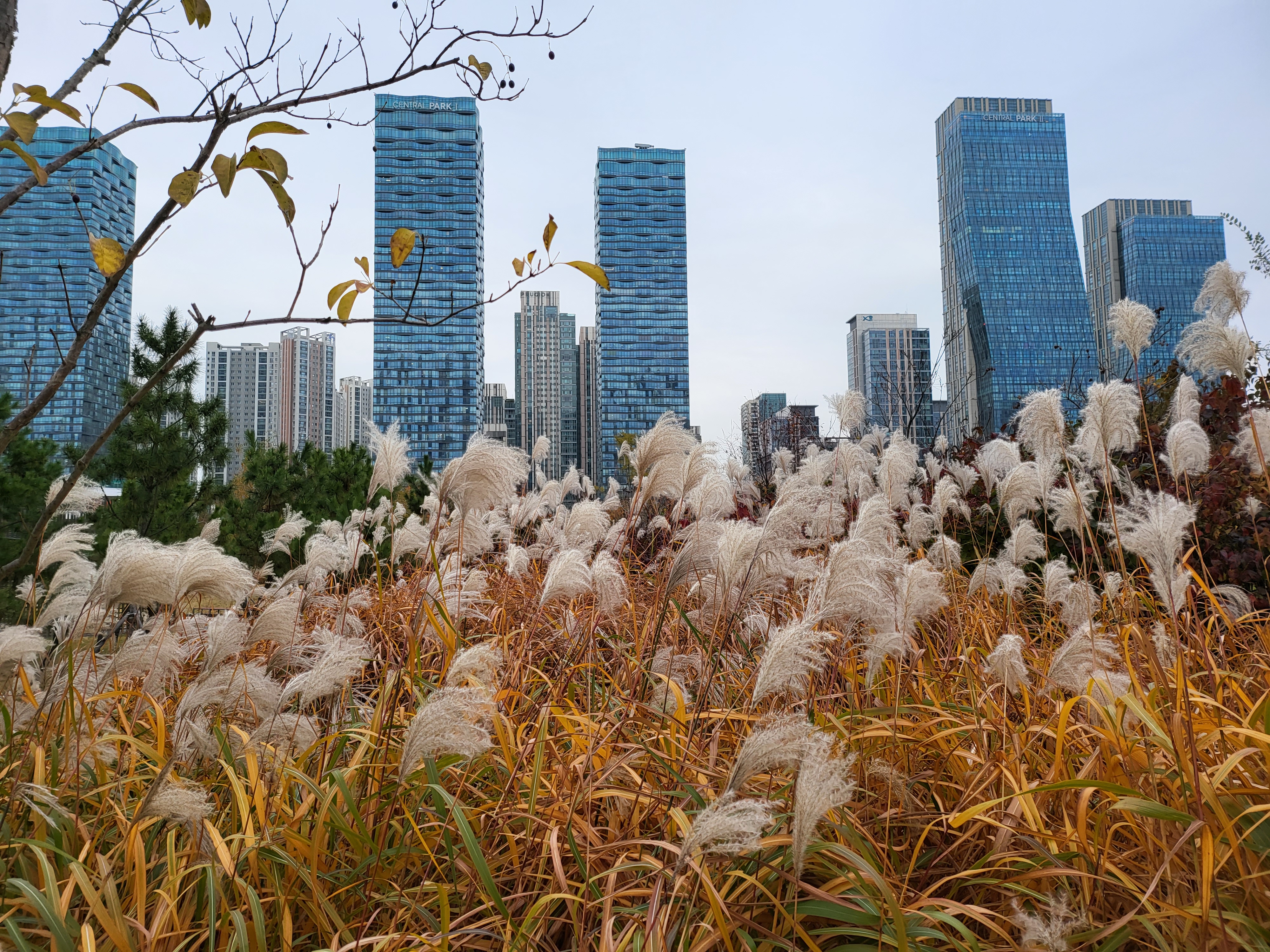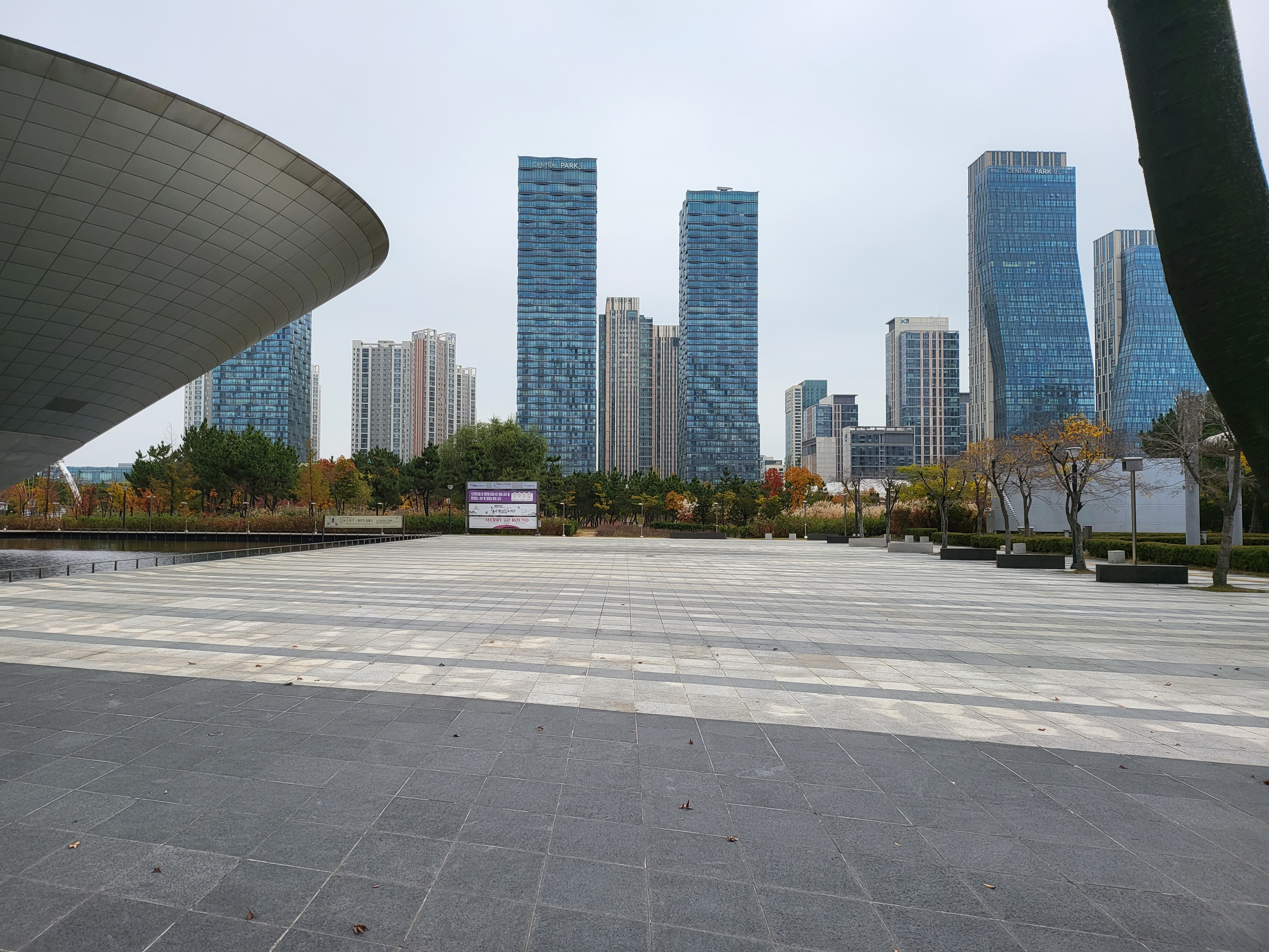 그곳 센트럴파크 역이란 데서 내려 지상으로 나오니 별유천지 비인간이라 이곳이 인천 송도 국제도시라는데 분명 그런 풍모가 다대해서 이 신도시가 처음은 아니지만 이곳은 처음이라 쭛볏쭛볏 솟은 마천루 건물은 위선 외양과 색깔이 우리한테 익숙한 그런 것들과는 완연히 달라 외계인 우주도시 온 듯한 풍경을 선사한다.