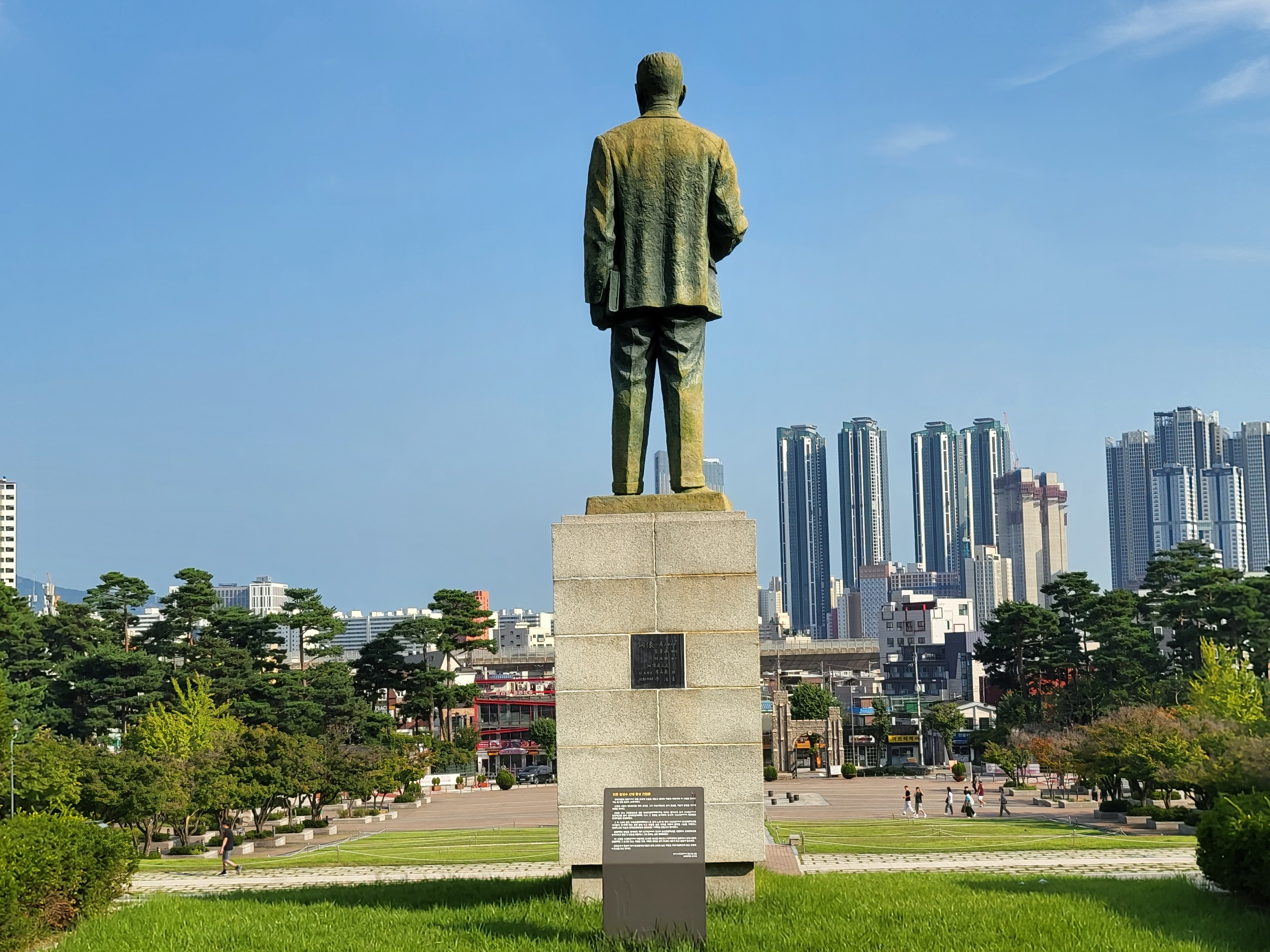 이 동상 후면에 붙은 제작 내력은 다음과 같다.