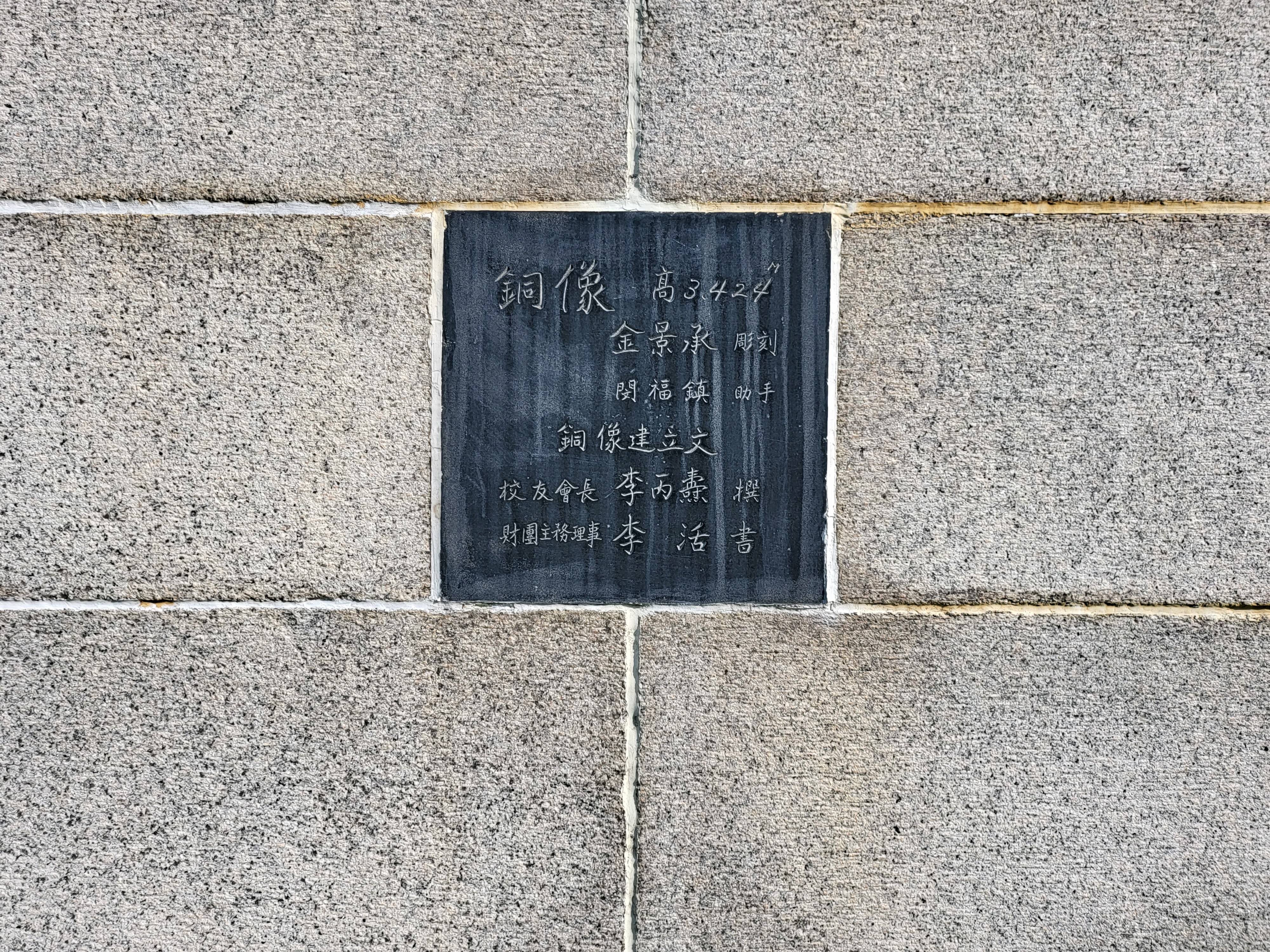 이 동상 후면에 붙은 제작 내력은 다음과 같다.