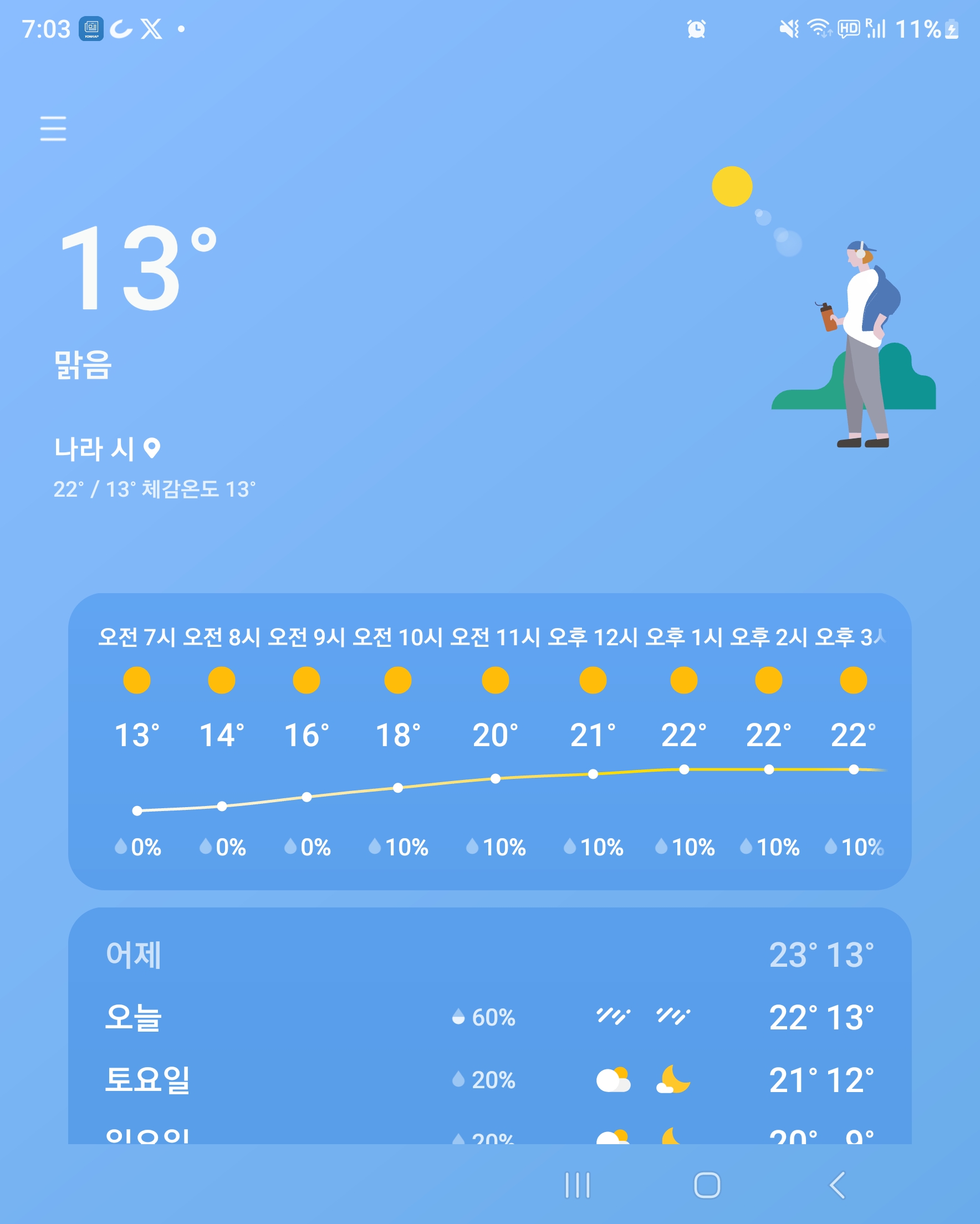 2023년 10월 27일 금요일 오전 일곱시 일본국 나라시 현재 기온 13도.