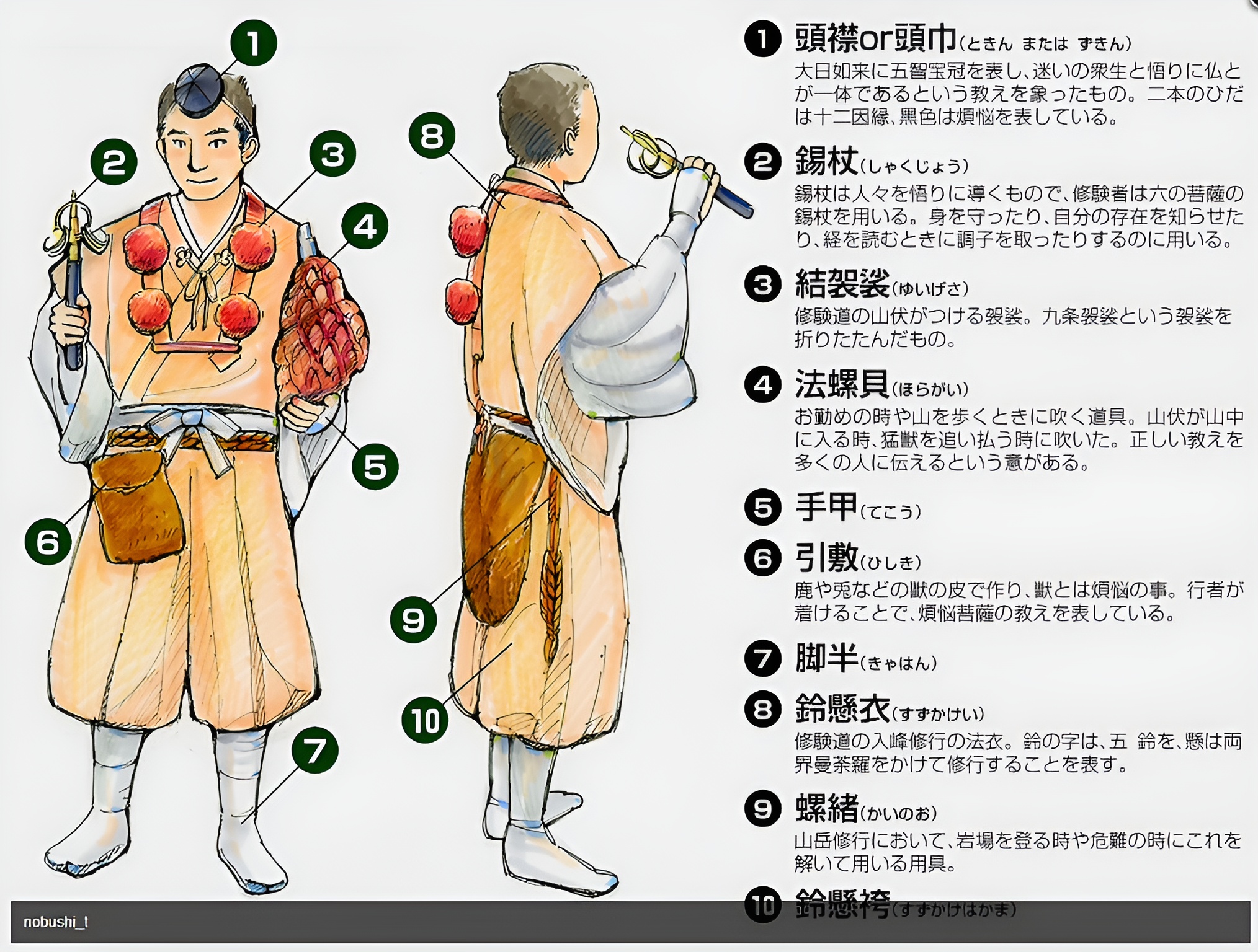 일본의 각종 에니메이션에도 이러한 행색의 수도자는 많이 나온다.