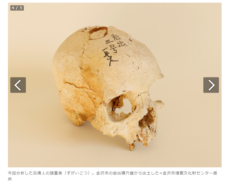 金沢市で見つかった約1500年前の古墳時代の人骨のDNA解析から、縄文人や弥生人にはなく、現代日本人に見られる東アジア人特有の遺伝的な特徴が見つかった。日本人のルーツは、土着の縄