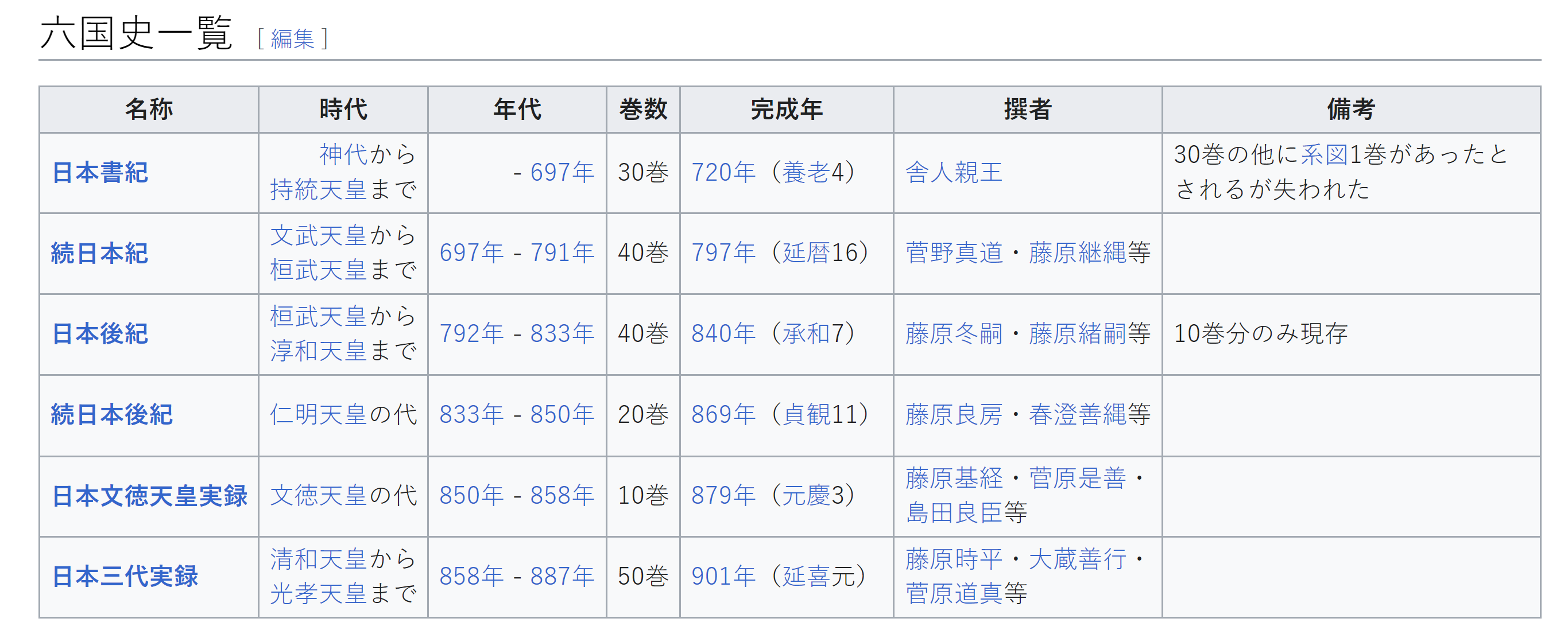 앞서 일본에는 육국사라는 것이 있으니, 아래와 같다 하였다 (일본 위키)