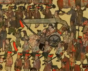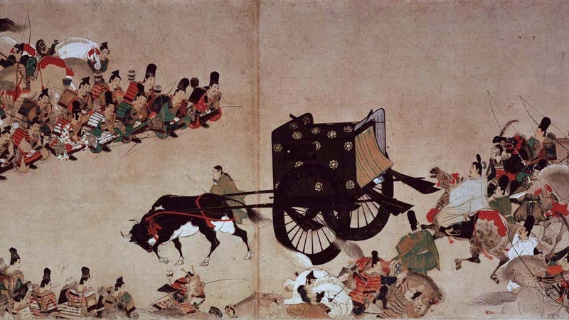 기본적으로 무사들은 말을 타고 공경 귀족은 소가 끄는 수레를 탄다는 점에서 고구려 안악 행렬도와 비슷함을 느낄 것이다.