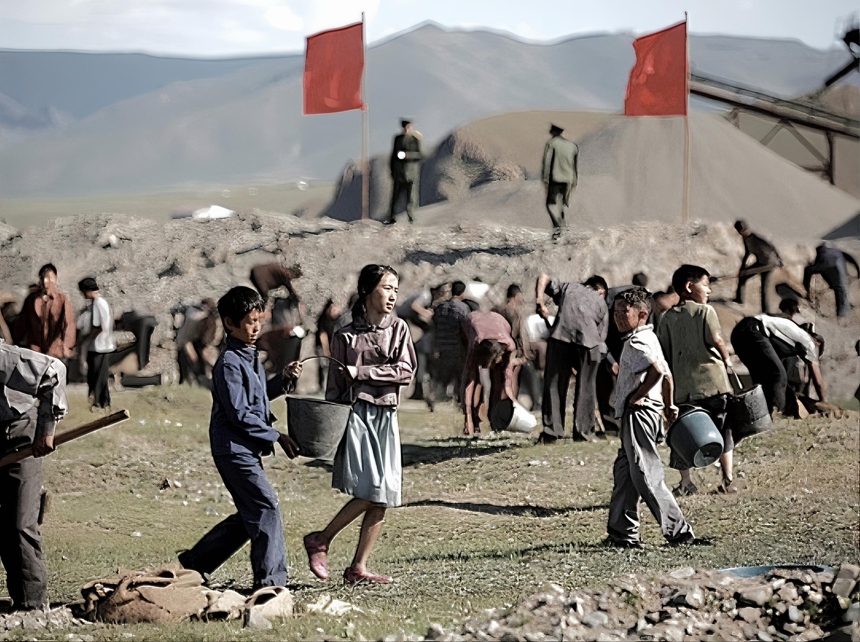 사람들을 데려다 공짜로 쌓으라고 하면 된다.