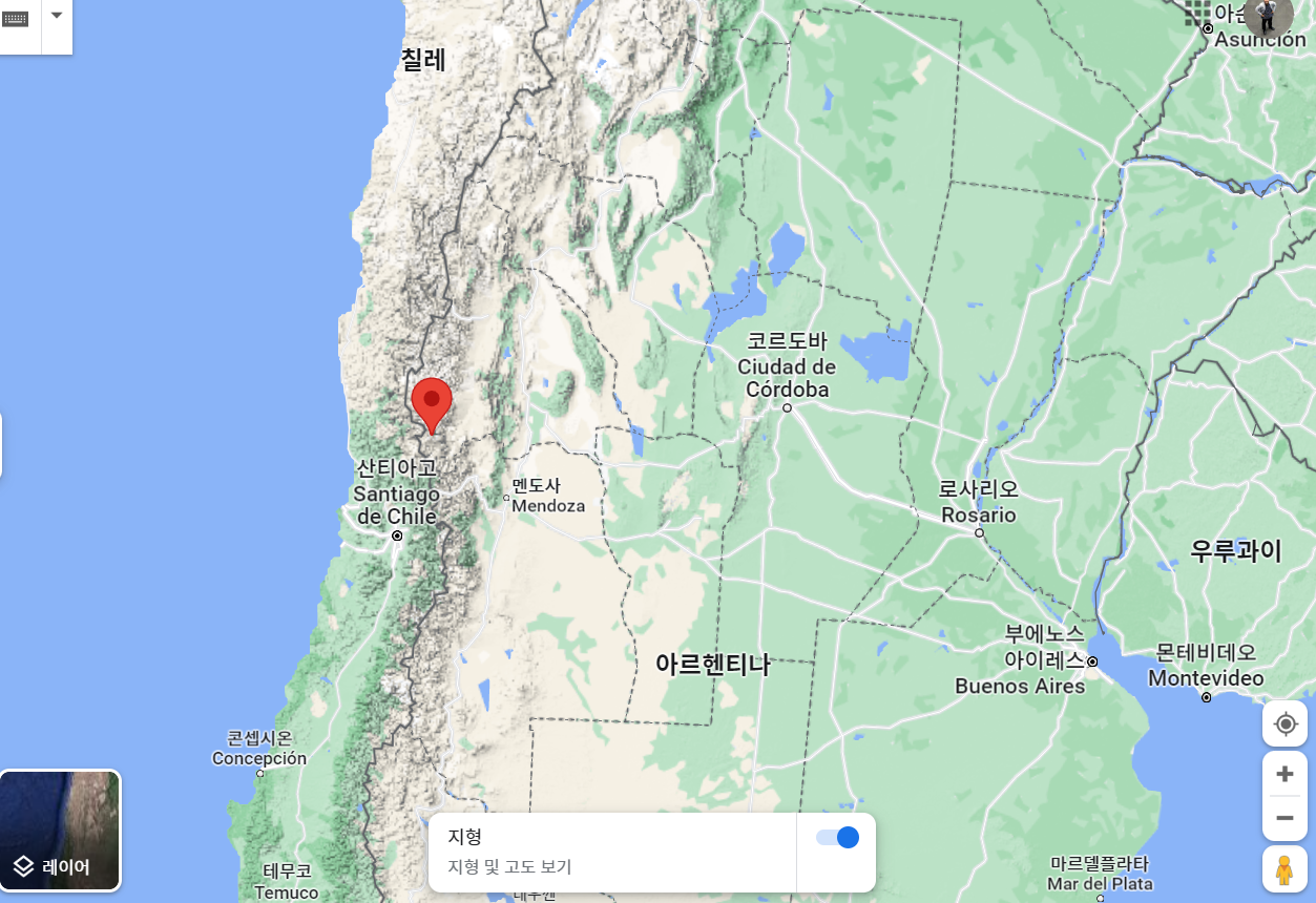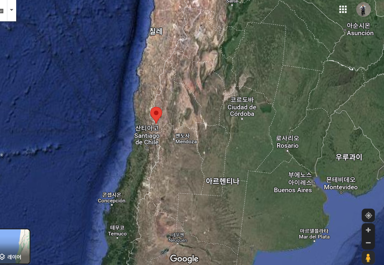 예상대로 칠레와 국경을 접한 데라 아르헨 기준으로는 중서부 끝단을 차지한다.