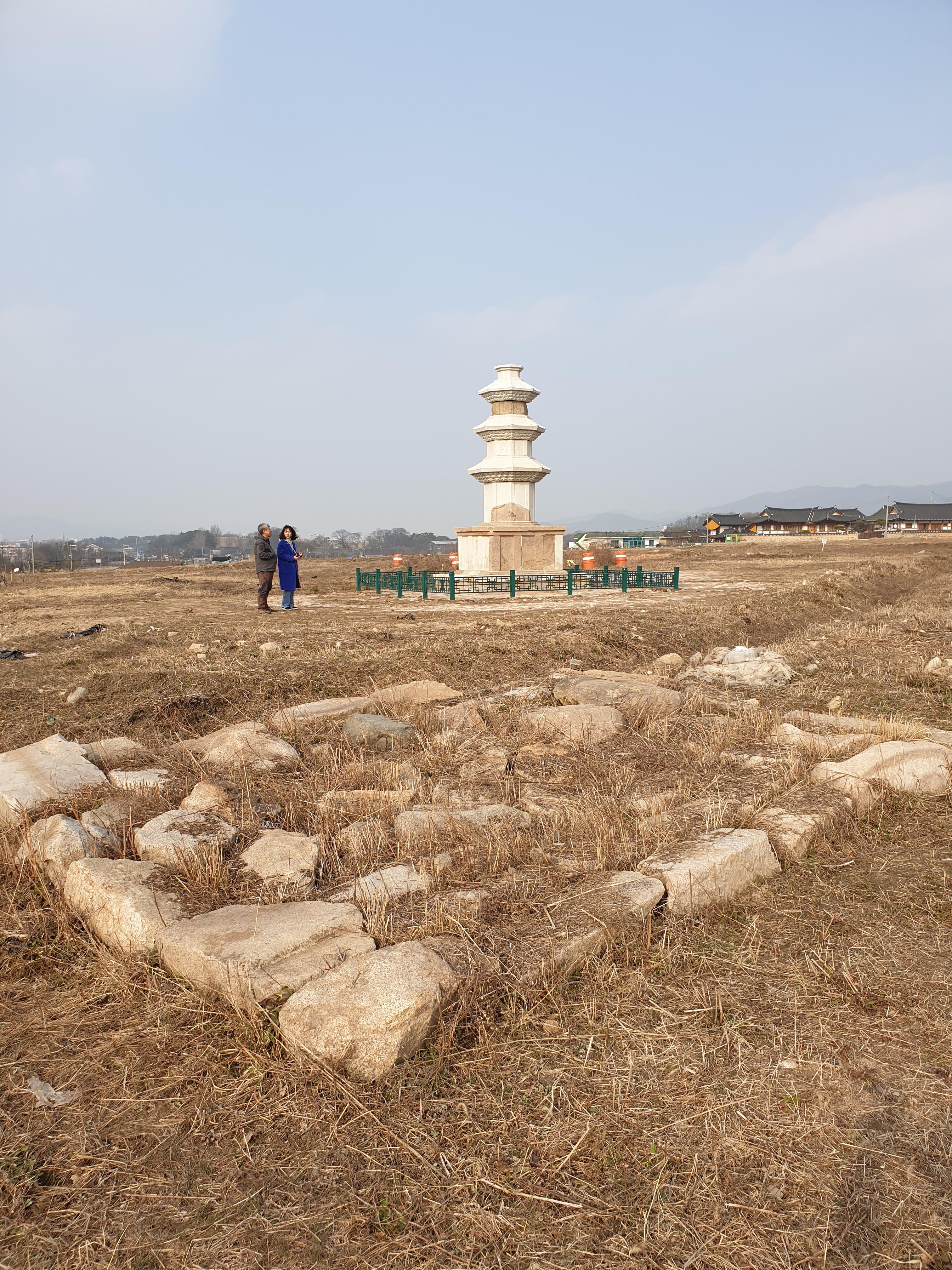 발굴만 하고 나몰라라 팽개친다 하도 씹어돌렸더니 구척장신 이채경이 정년 코앞에 두고선 맘에 걸렸는지 우째우째해서 계우 돌덩이 줏어다가 저리 맹글어 놨다.