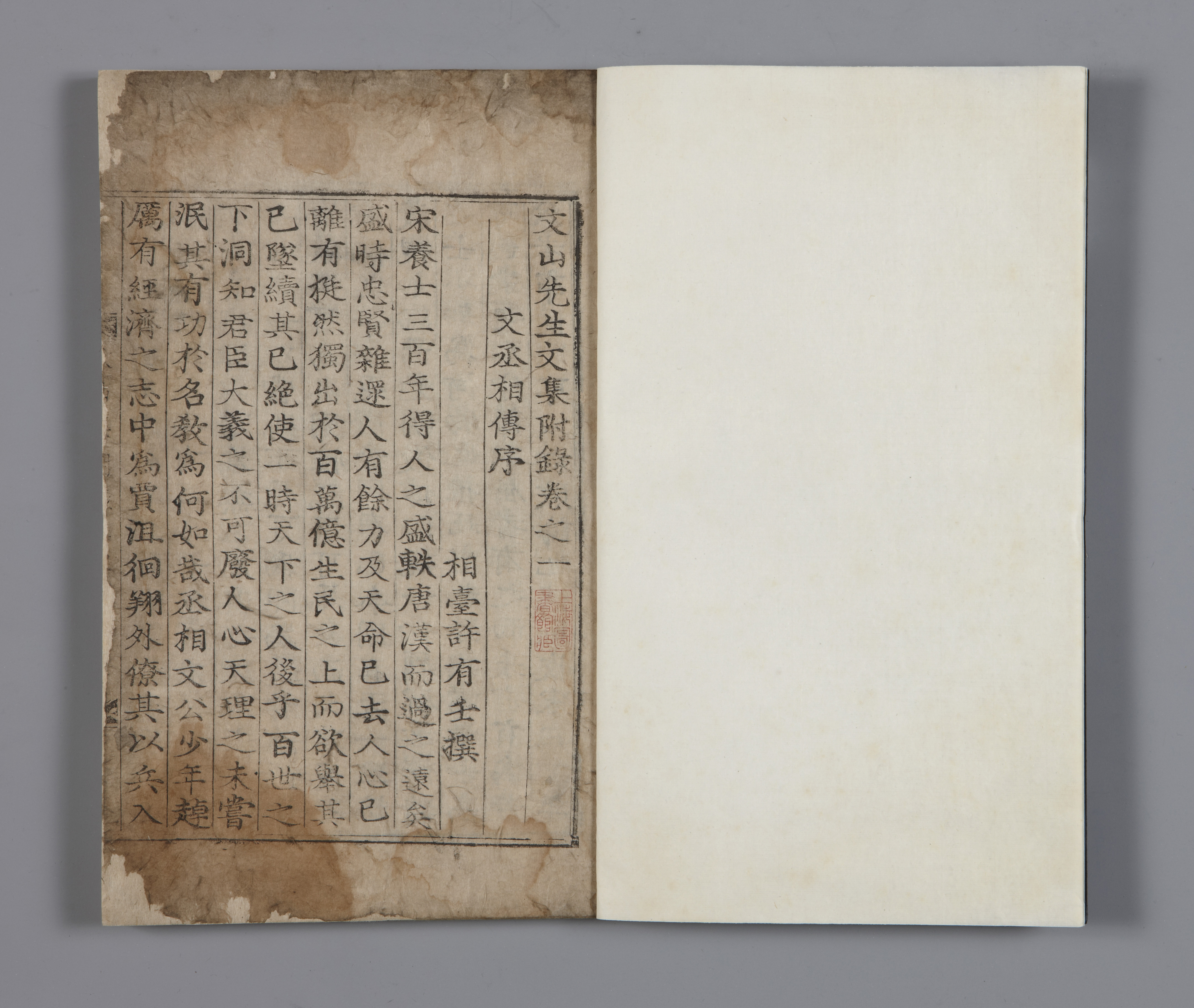 부록 1책만 남은 ‘문산선생별집’은 남송 최후의 재상으로 원나라에 대항하다 순절한 문천상(文天祥, 1236~1282)의 문집인 ‘문산선생문집’의 별집이다. 문산은 중국에서 충절의 상징으로 여겨지고 있는 문천상의 호이다.