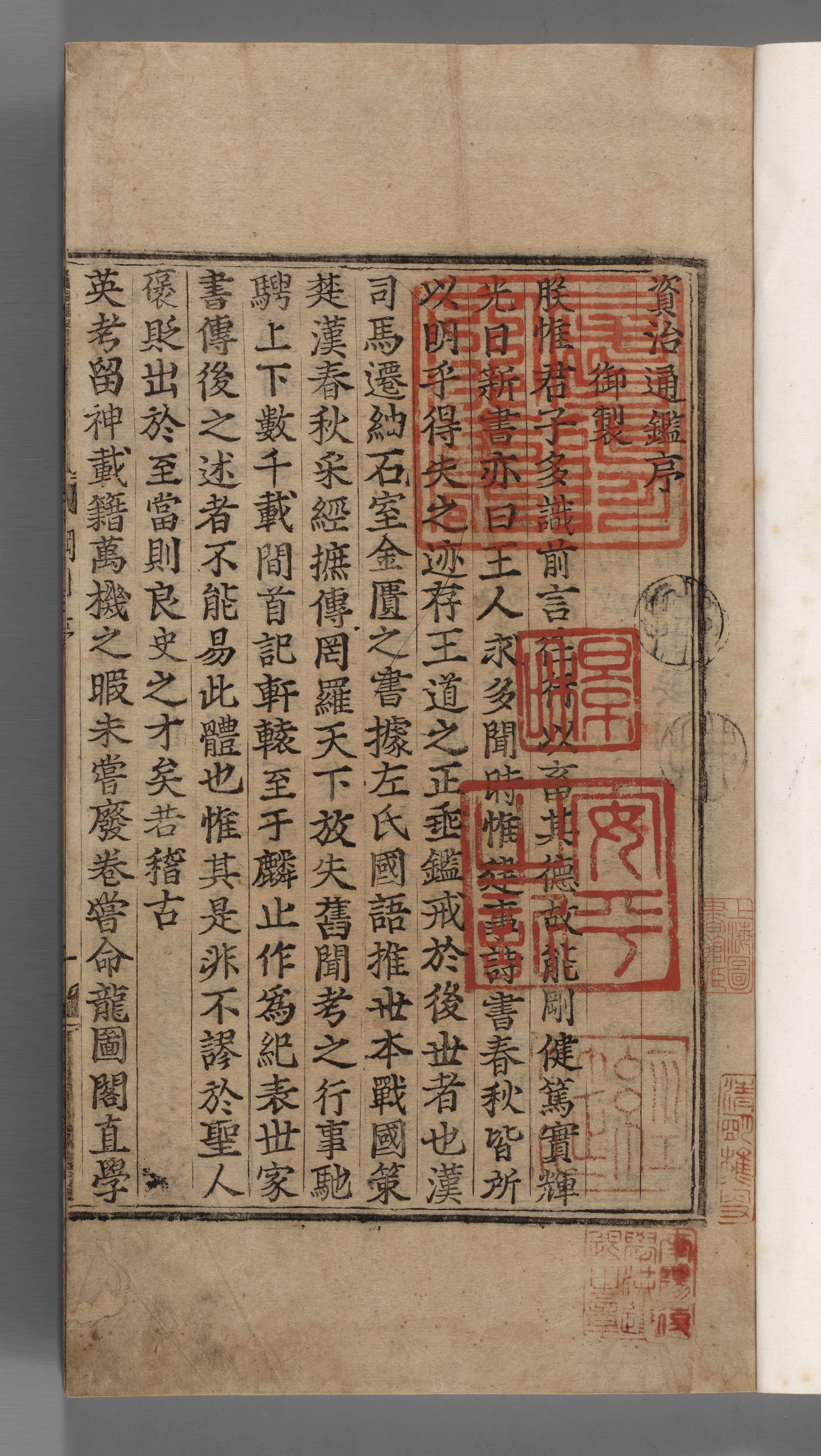 중국 상하이(上海)도서관소장 ‘자치통감강목(資治通鑑綱目)’은 남송의 주희가 북송의 사마광이 편찬한 '자치통감(資治通鑑)' 294권을 저본으로 59권으로 편찬한 강목체 사서(史書)로 15세기 초 조선에서 금속활자본으로 간행한 책이다.