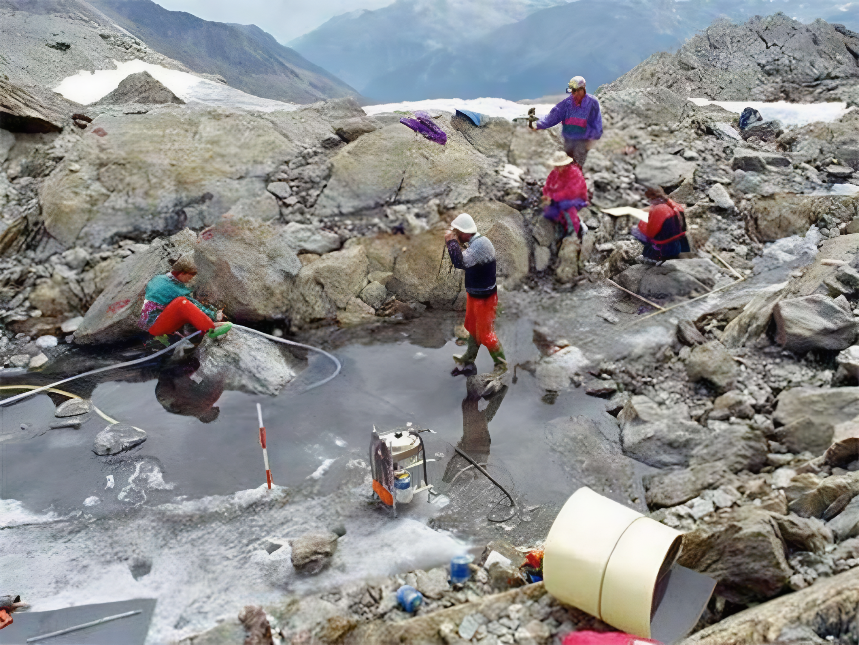 인스부르크 대학으로 옮겨진 외치Ötzi는 곧 이 대학 연구진의 조사를 받았다. 이 당시 찍힌 사진을 보면 여느 법의학적 변사자에 대한 조사와 거의 비슷한 모습임을 알 수 있다. 장소는 평범한