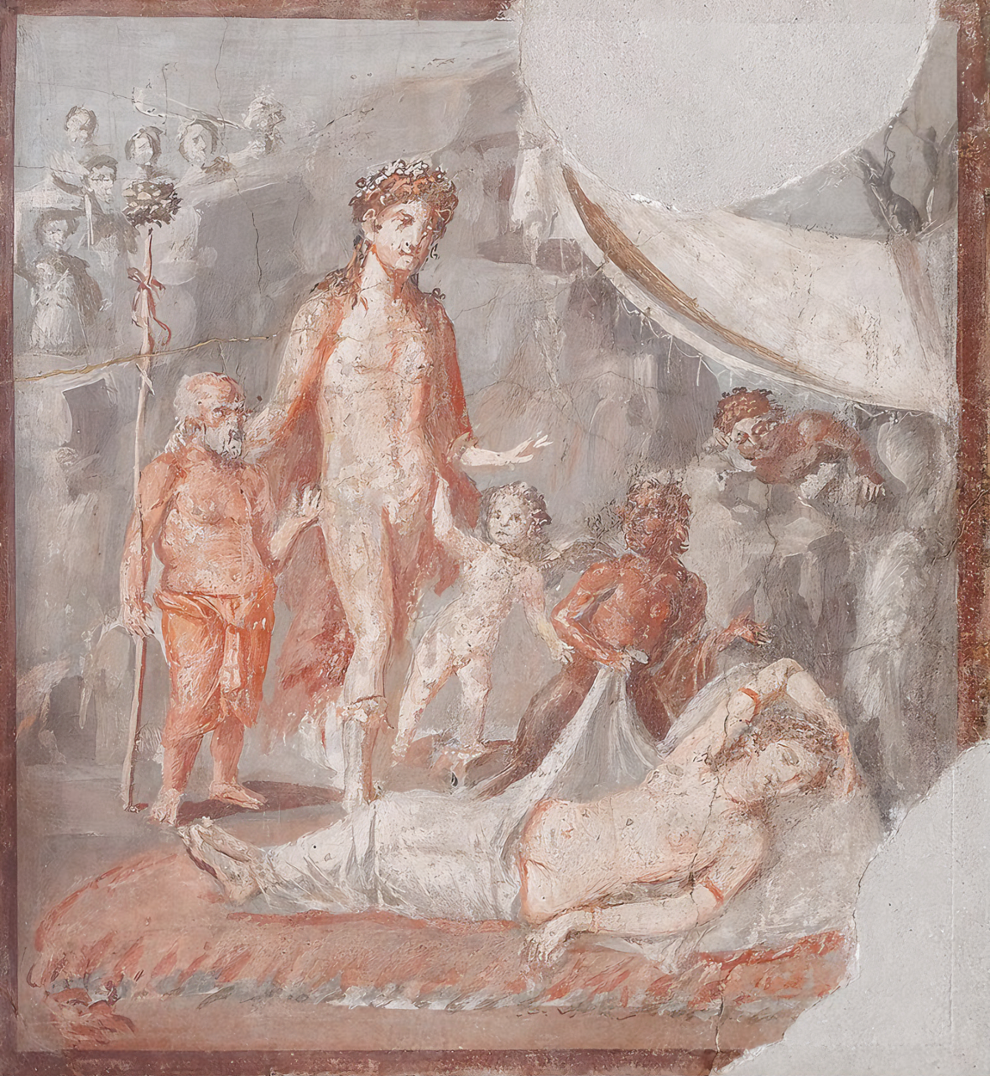 베수비오 산이 폭발하면서 폼페이가 묻힌 시점이 서기 79년인데, 이 벽화는 제작 시점을 기원전 1세기로 본다 하니, 파괴 혹은 매몰 당시 연식이 제법된 고물 집이었음을 추찰한다.