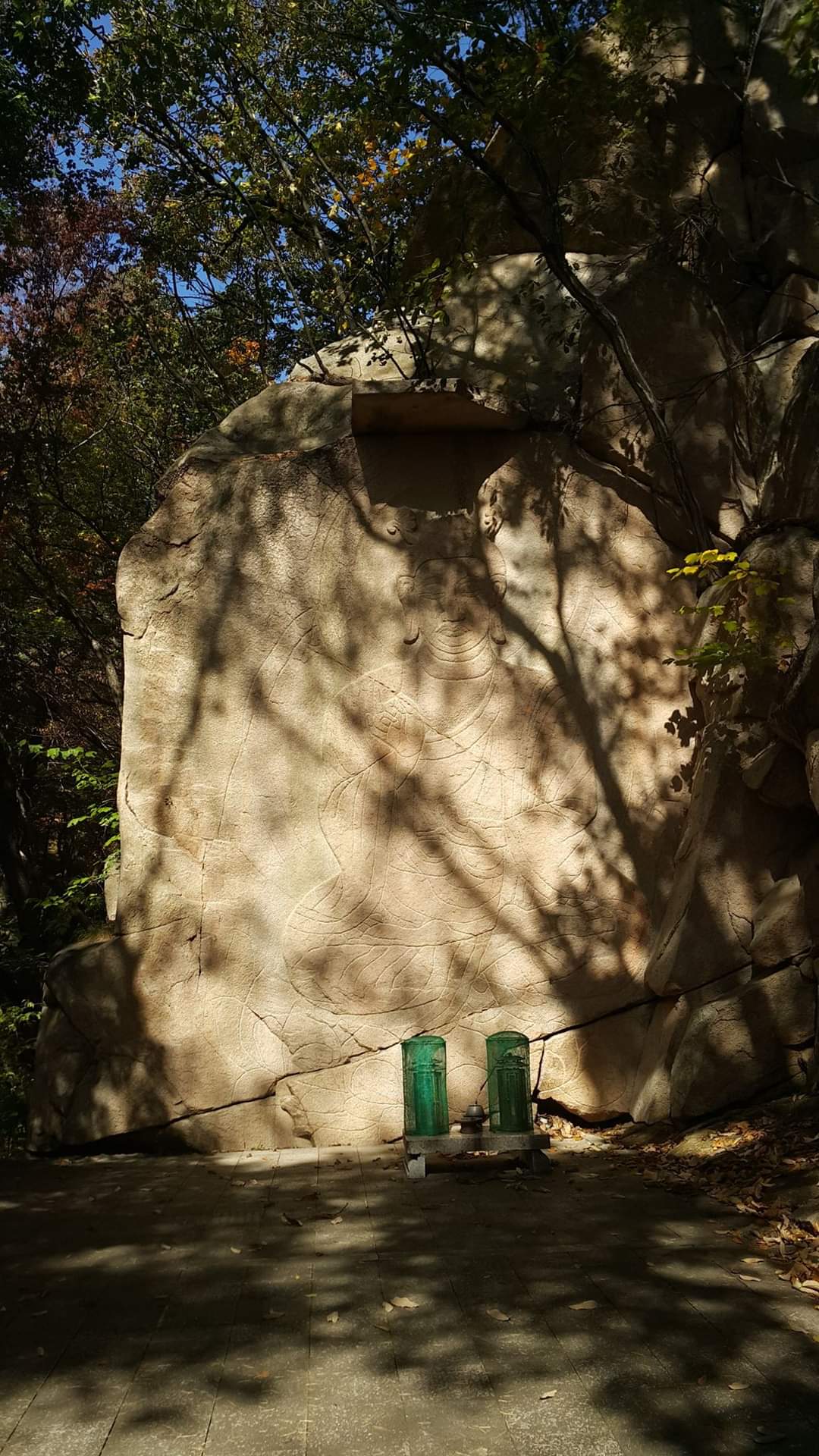 주변 잡목이 문제가 되거니와, 불상 자체에도 좋지 아니한 영향을 미치는 것이 아닌가 하며, 덧붙여 저 앞쪽에 갖다놓은 불단 관련 거치물도 치워야 한다.