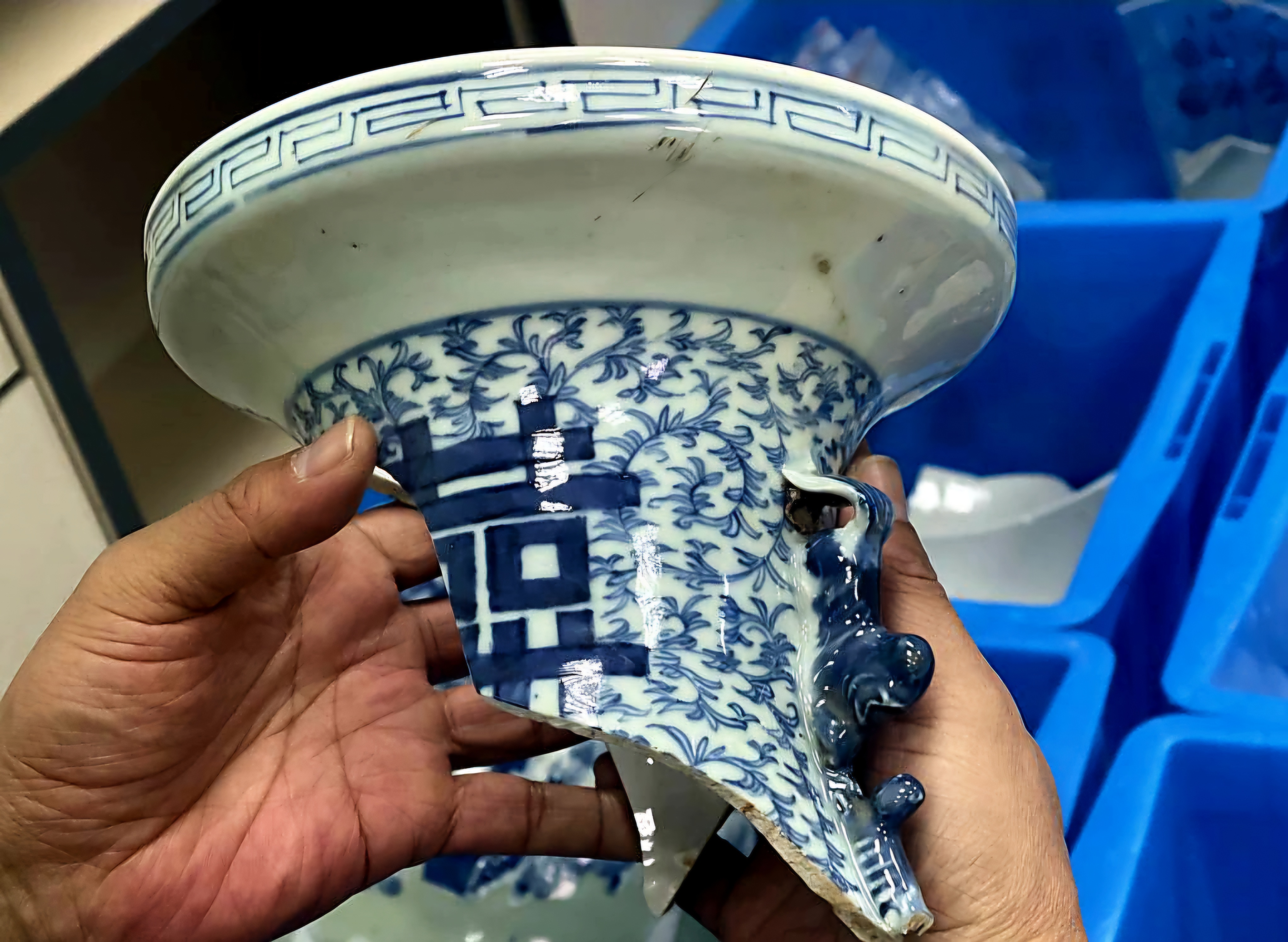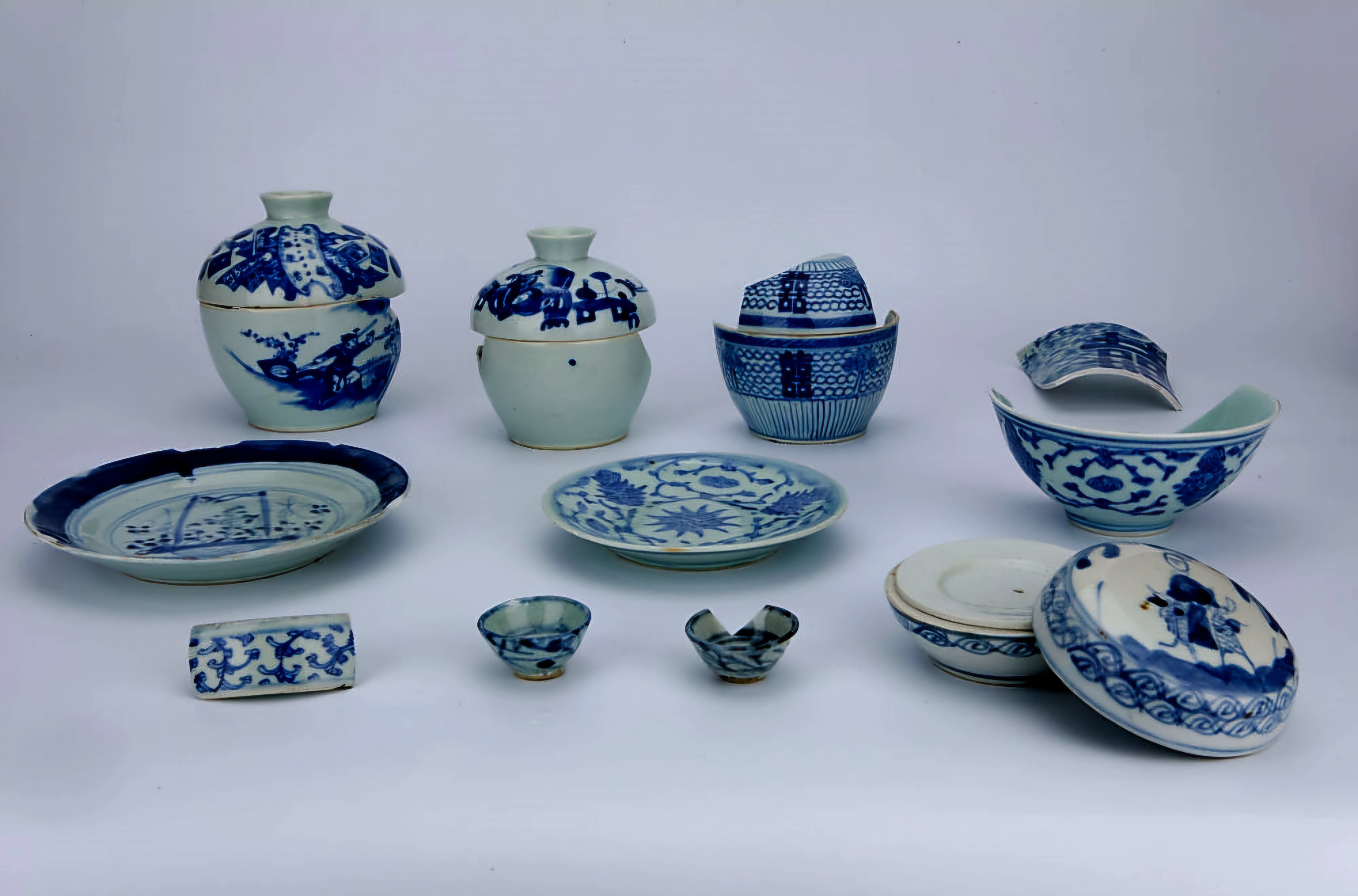 기초 정리작업에서 선박 안팎에서 439점 도자기를 건졌으니, 그 대부분은 경덕진요景德鎮窯 제품이라, 그 외에도 자사기紫砂器、월남越南 산 수연관水煙罐이 섞여 있었고, 묵서 「시태時泰」 목통木桶이 있으며,