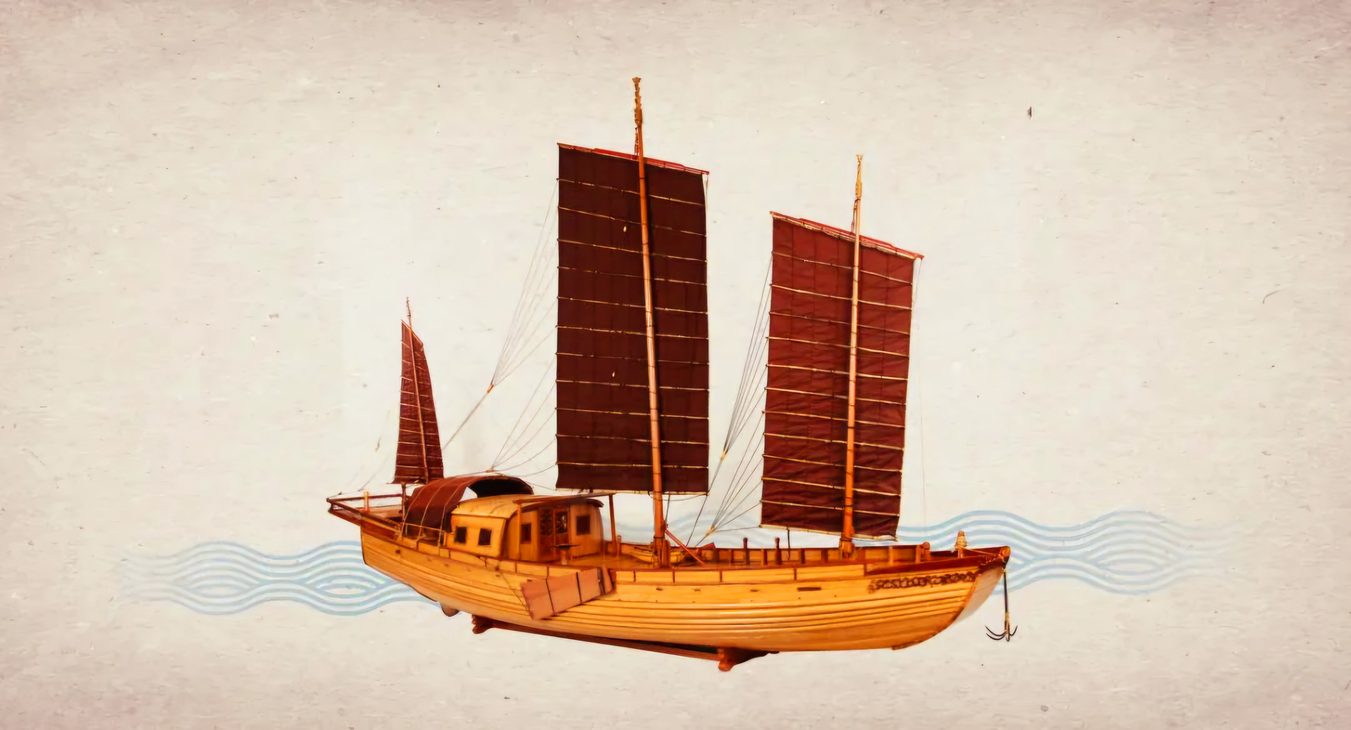 배 모양으로 보아 처음에는 명청明清시대 상해 지역 수상 운송에 활용된 평저사선平底沙船이 아닌가 했더랬다.