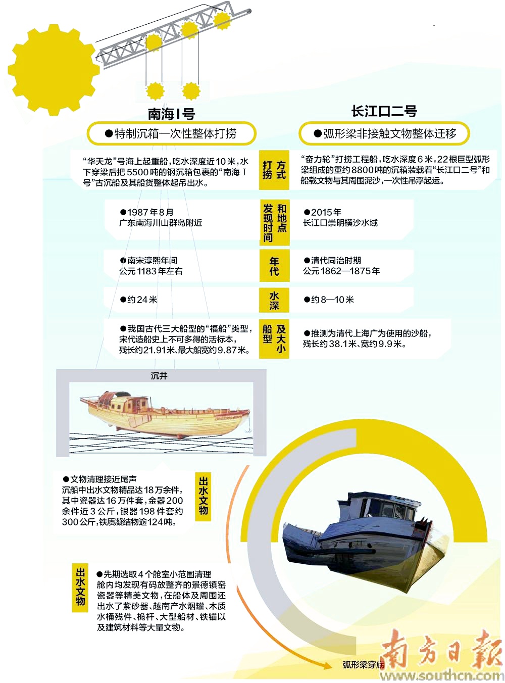 2022년 3월 2일 인양이 개시된 선체는 양포빈강楊浦濱江의 상해선창 구지[上海船廠舊址] 1호 선오1號船塢로 옮겨지고 이후 이곳은 침선고고기지沉船考古基地 겸 고선박물관古船博物館이 되었다.