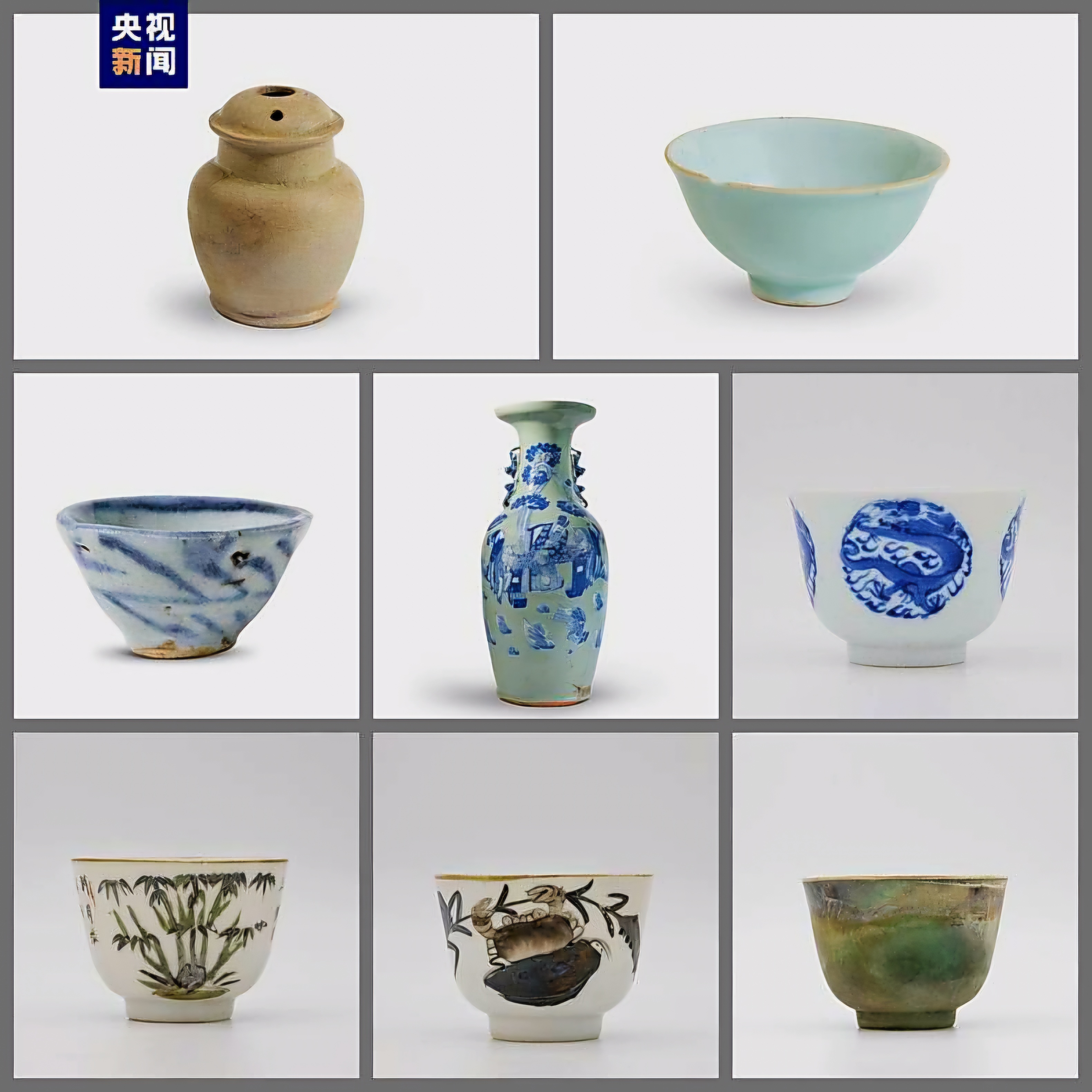 원나라 시대 자기와 높이 60센티미터에 달하는 완정完整한 두청유청화대병豆青釉青花大瓶 등도 발견됐다.