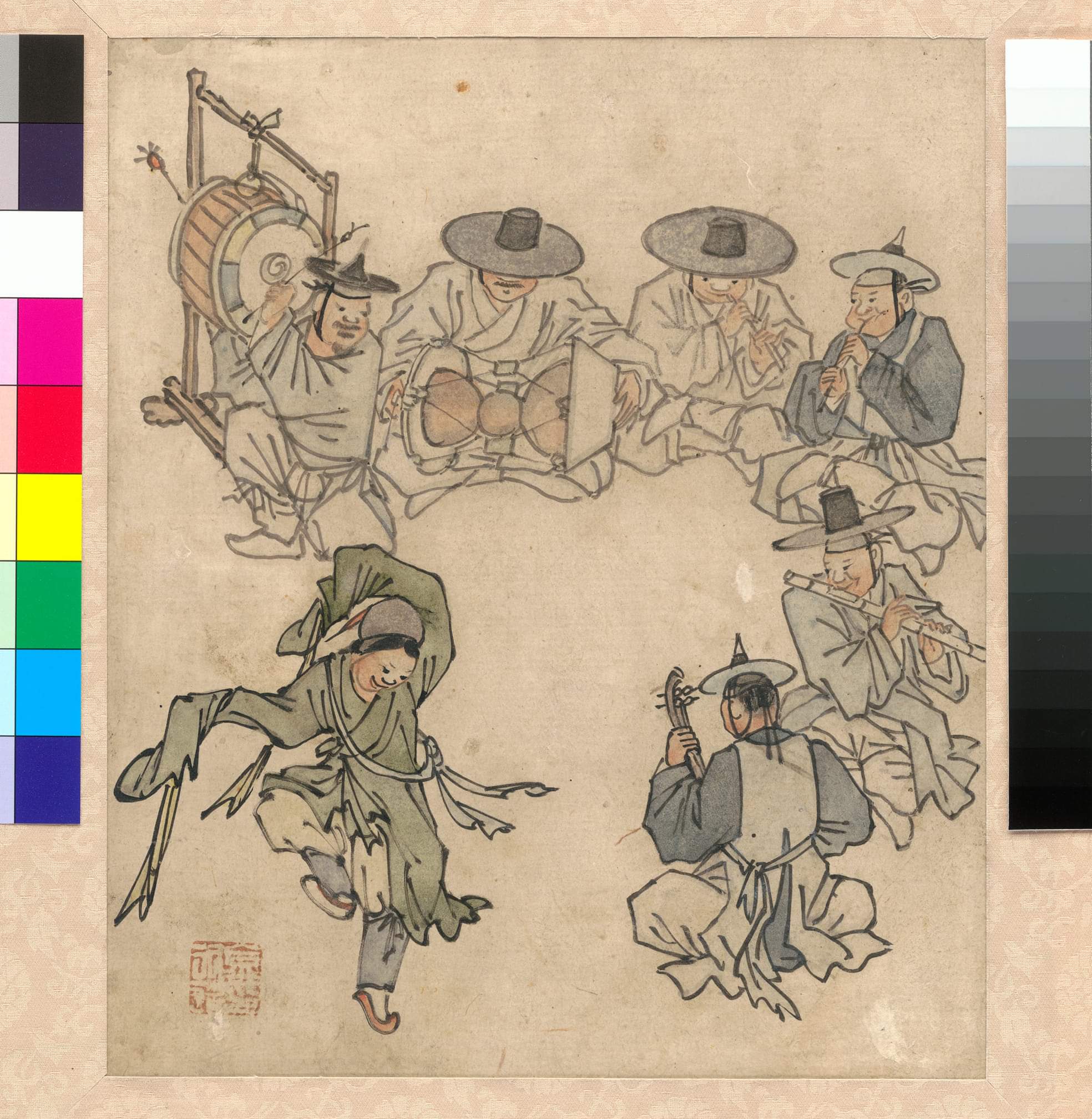 단원 김홍도(1745~?)의 '무동舞童'은 삼현육각 한 팀이 걸지게 노니는 장면을 그렸다.