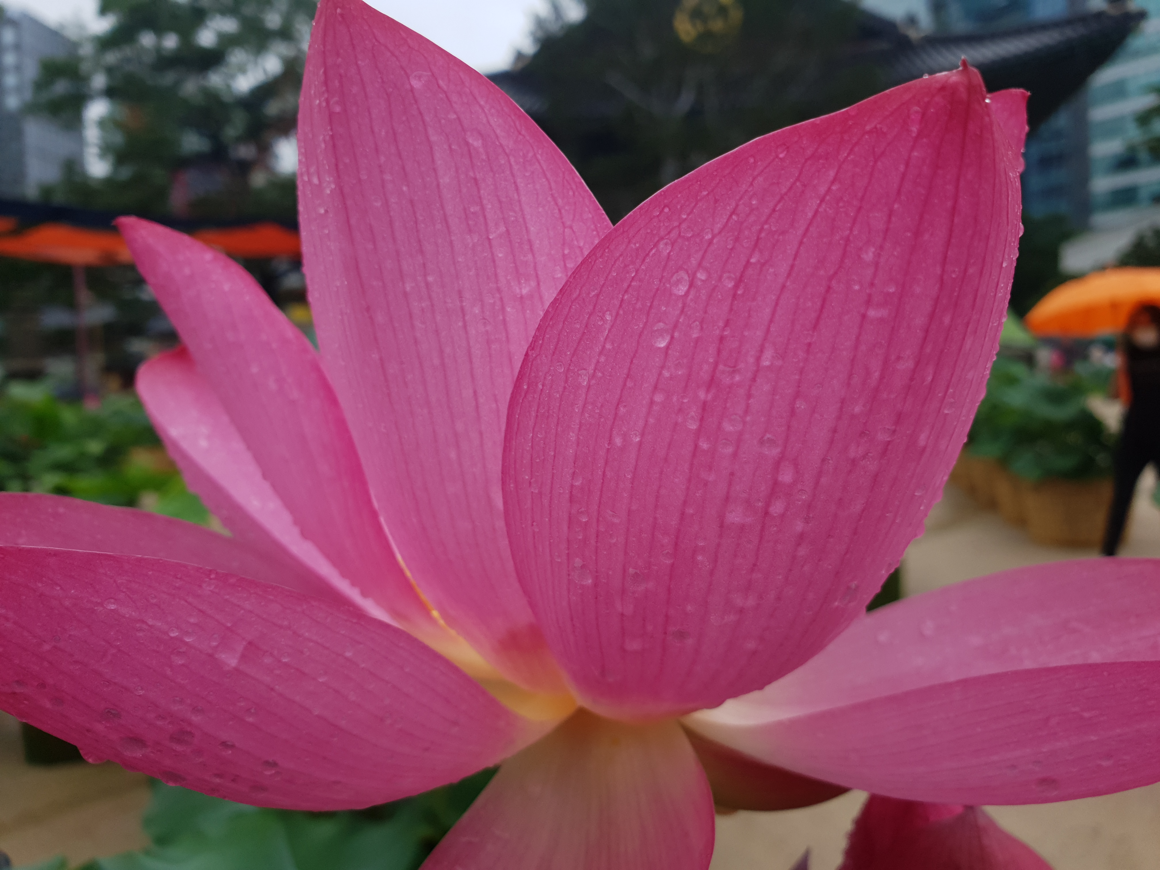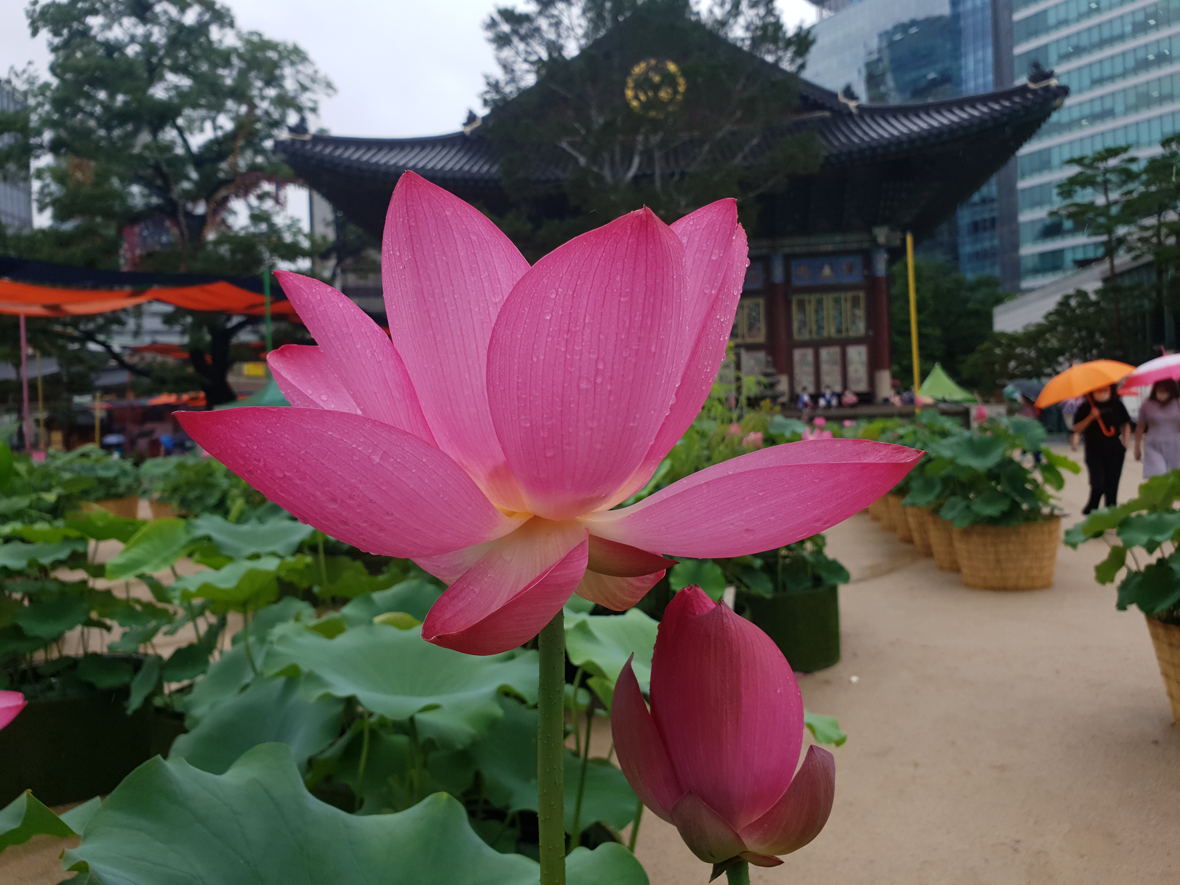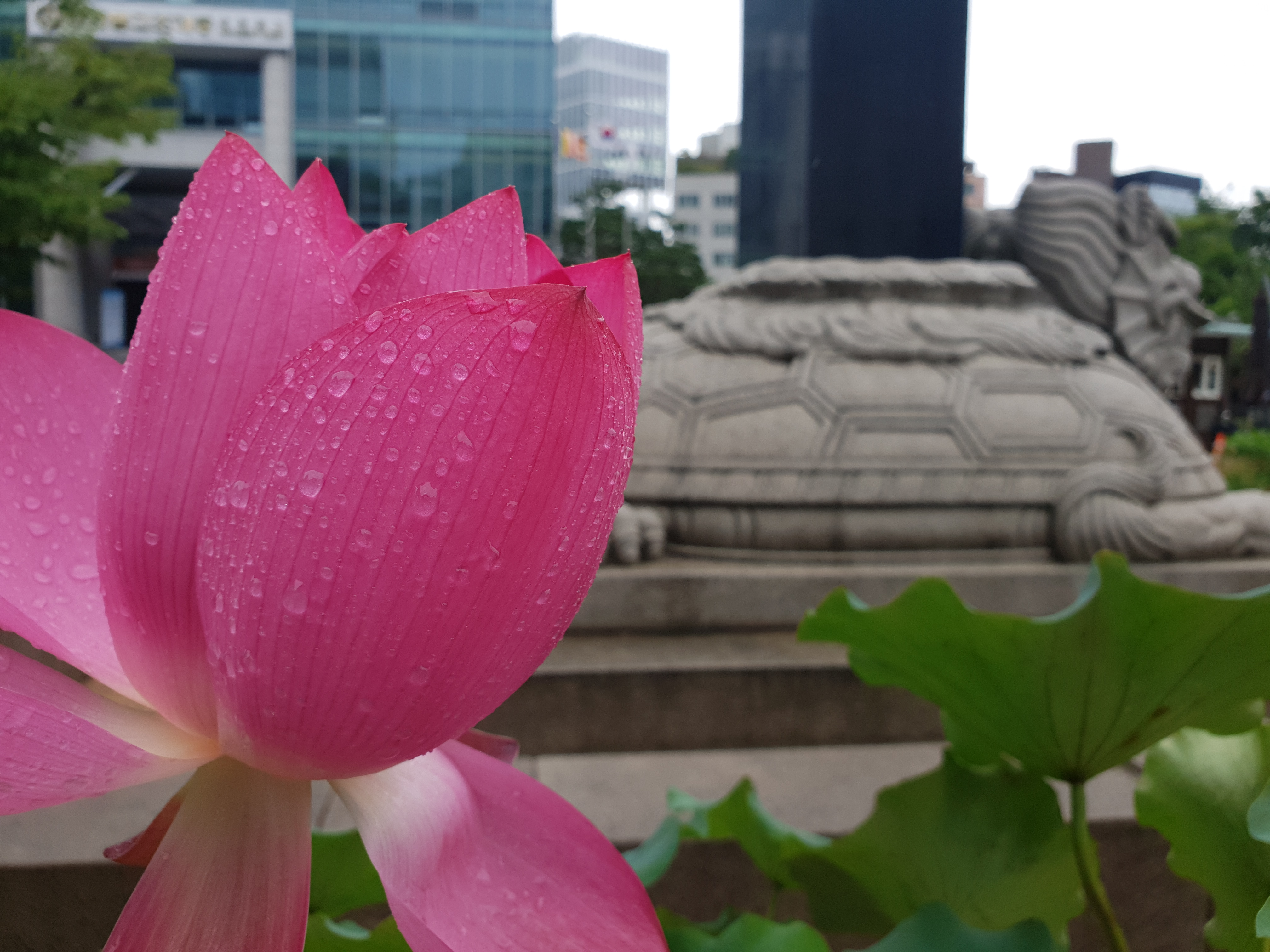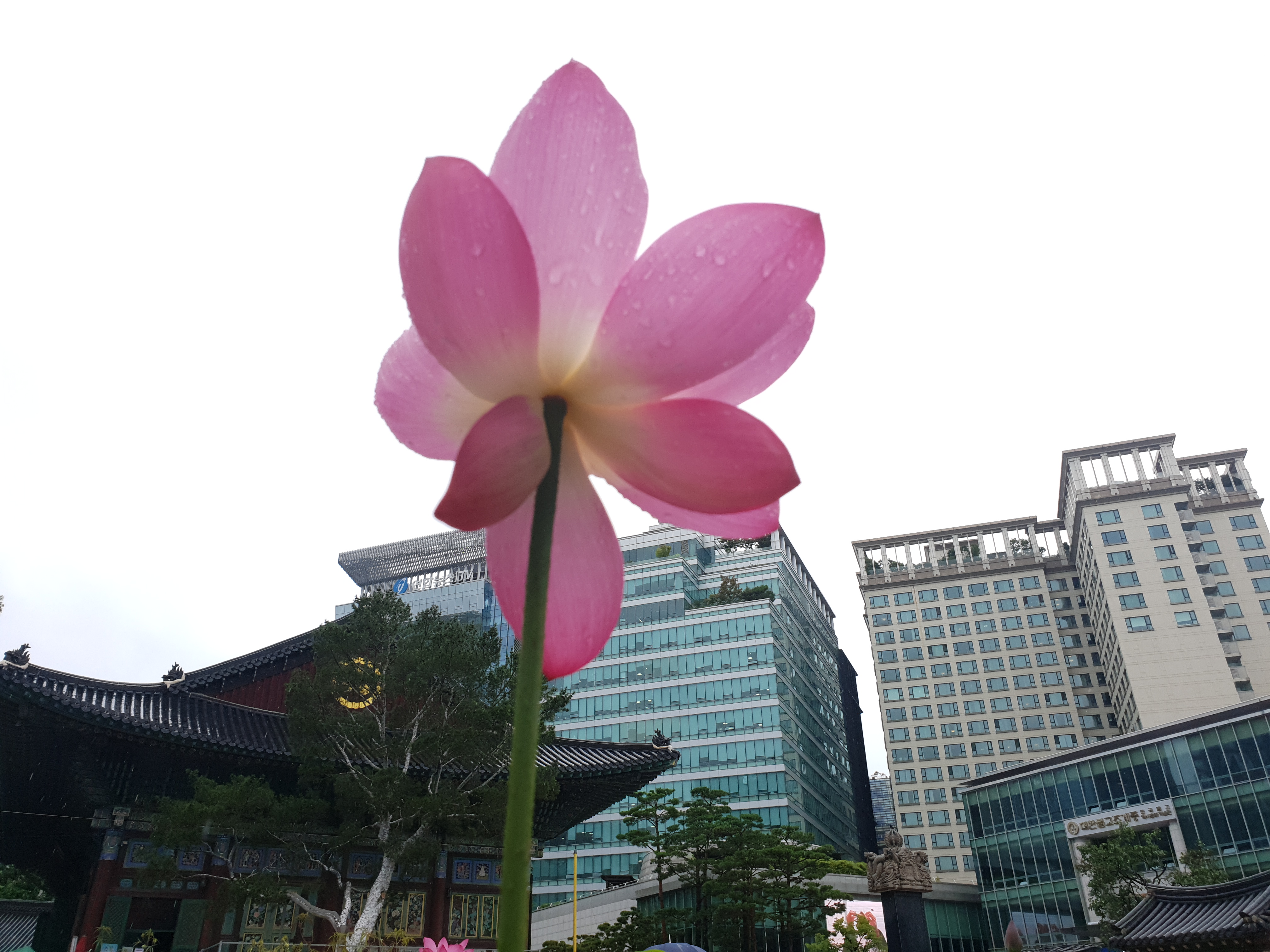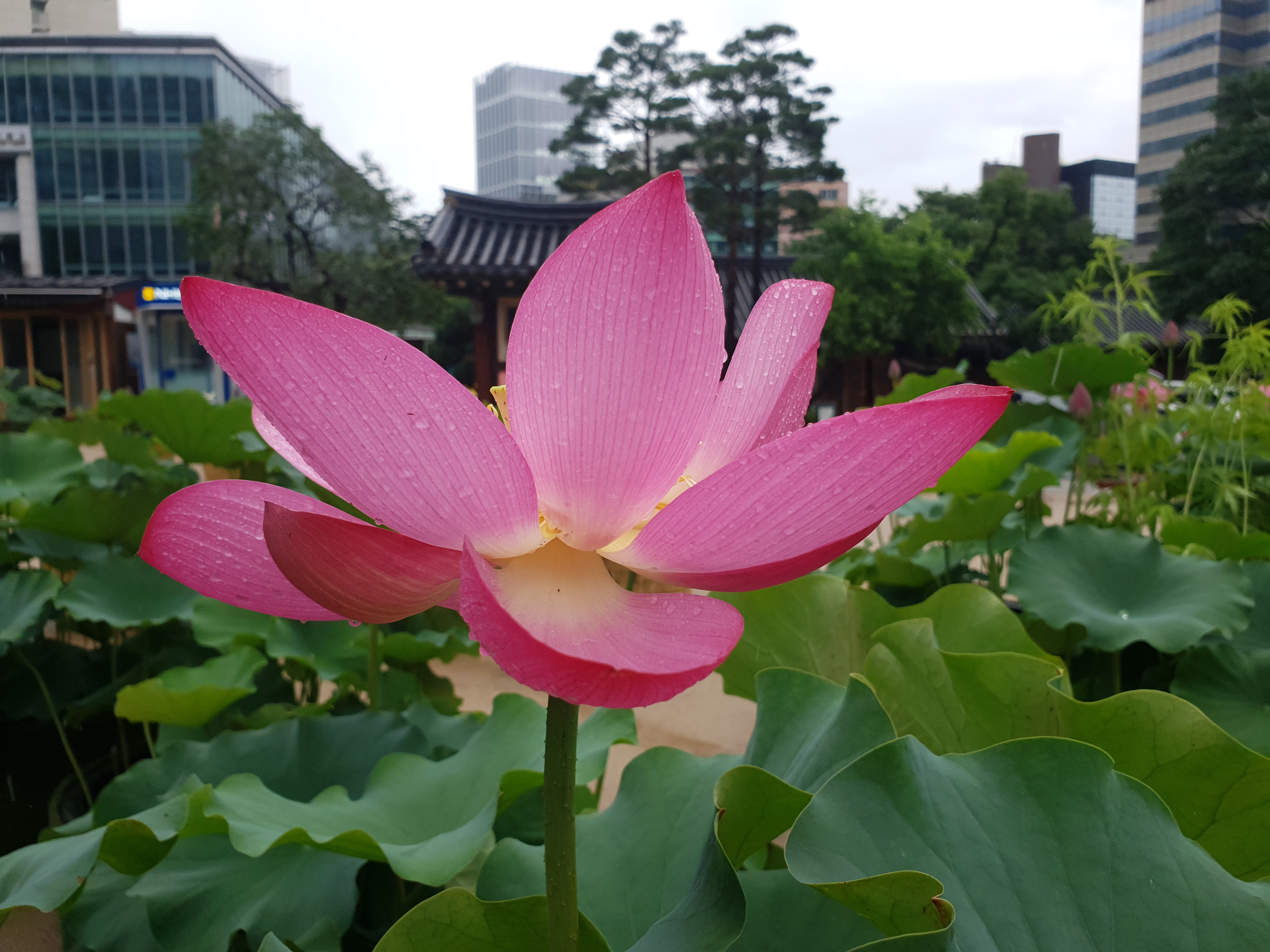연지 대신 빗물 머금으니