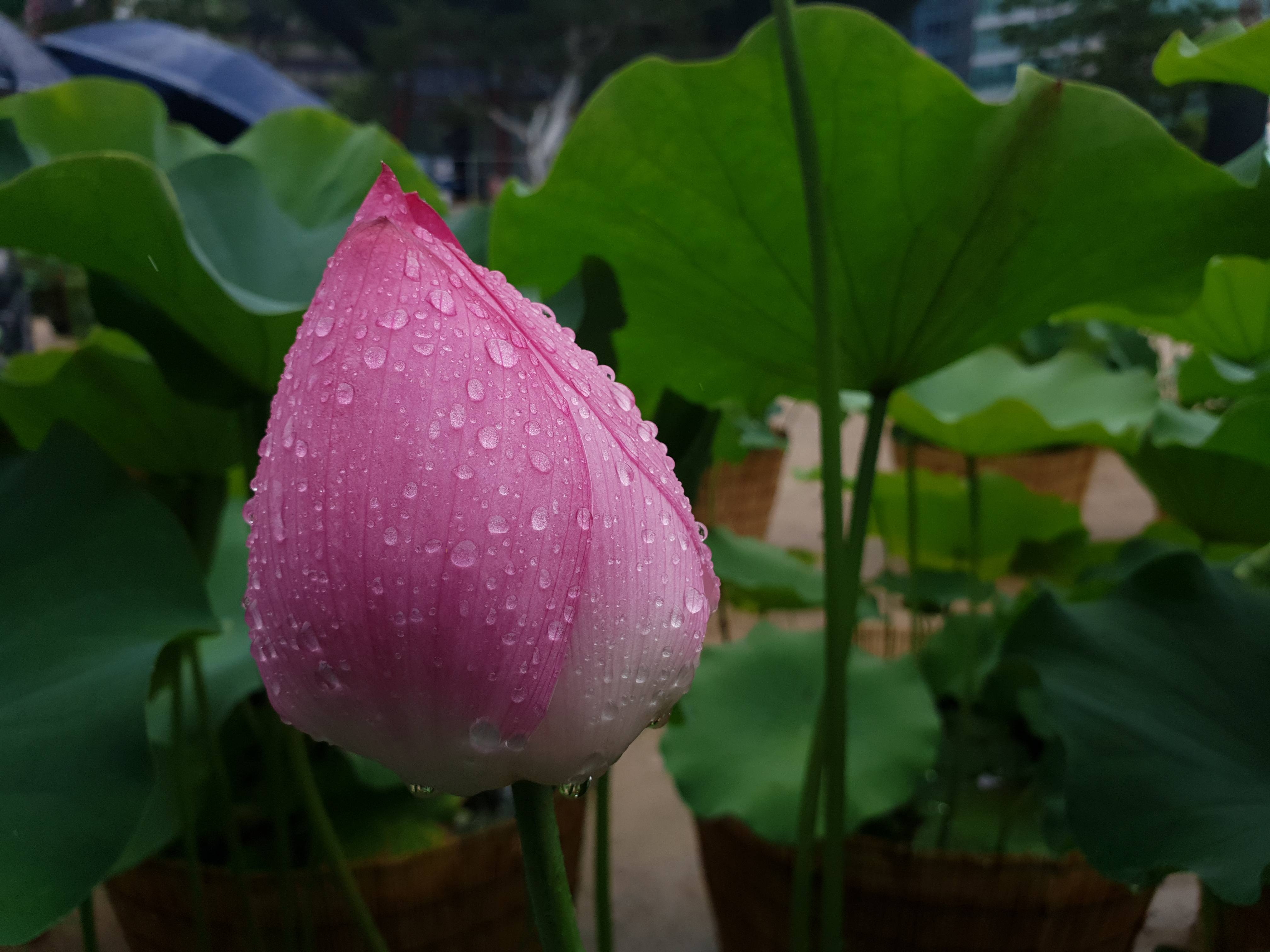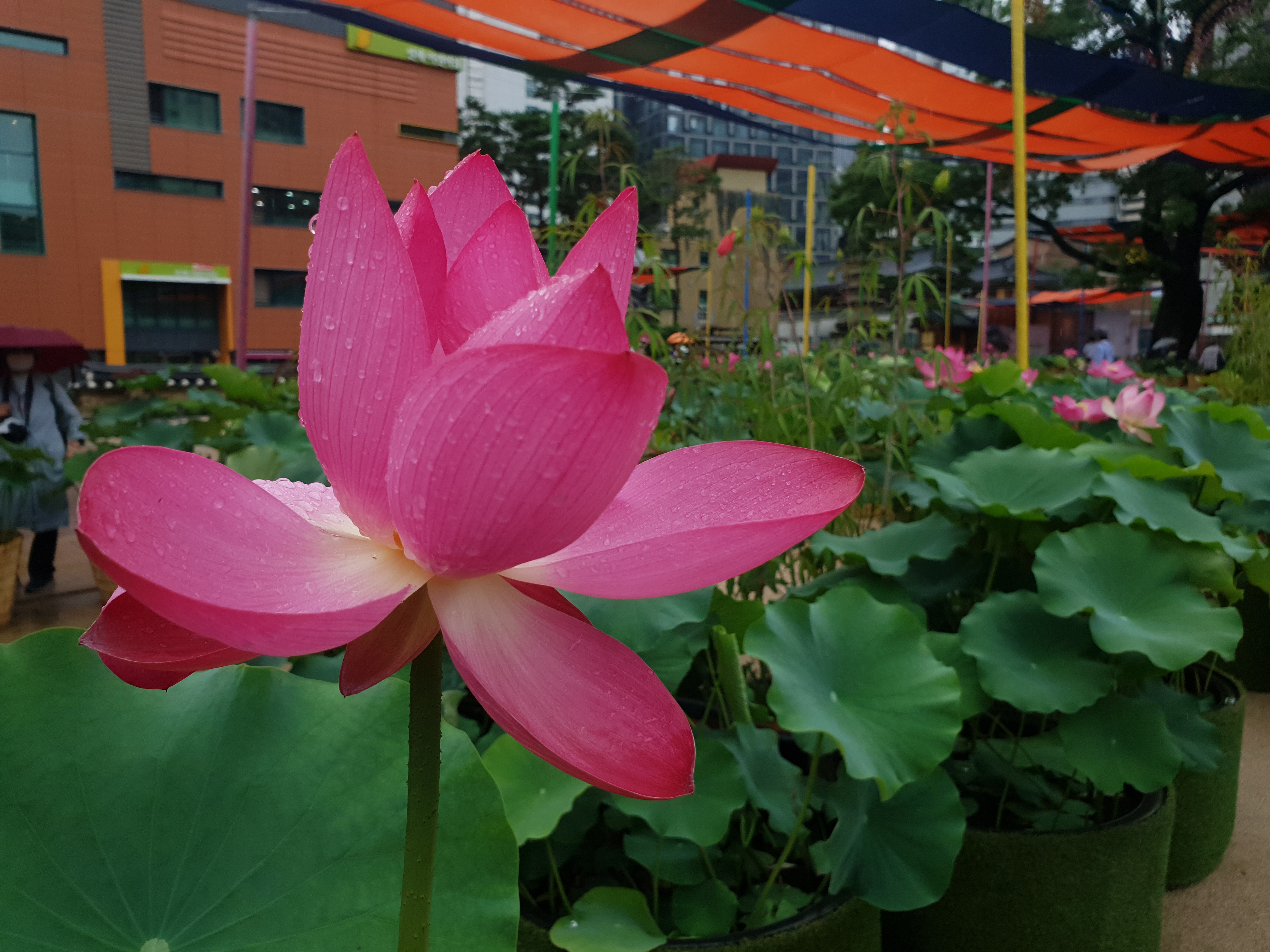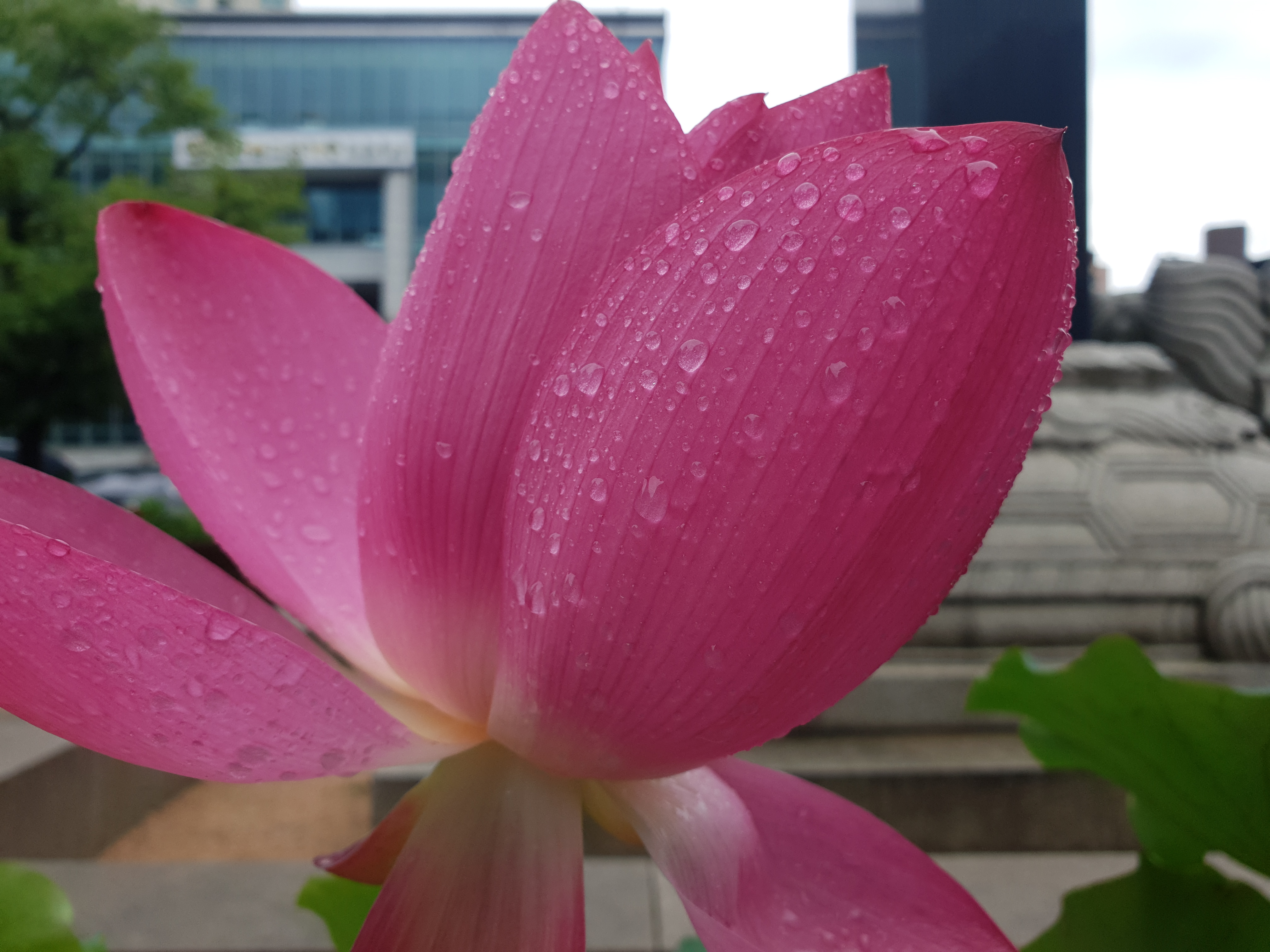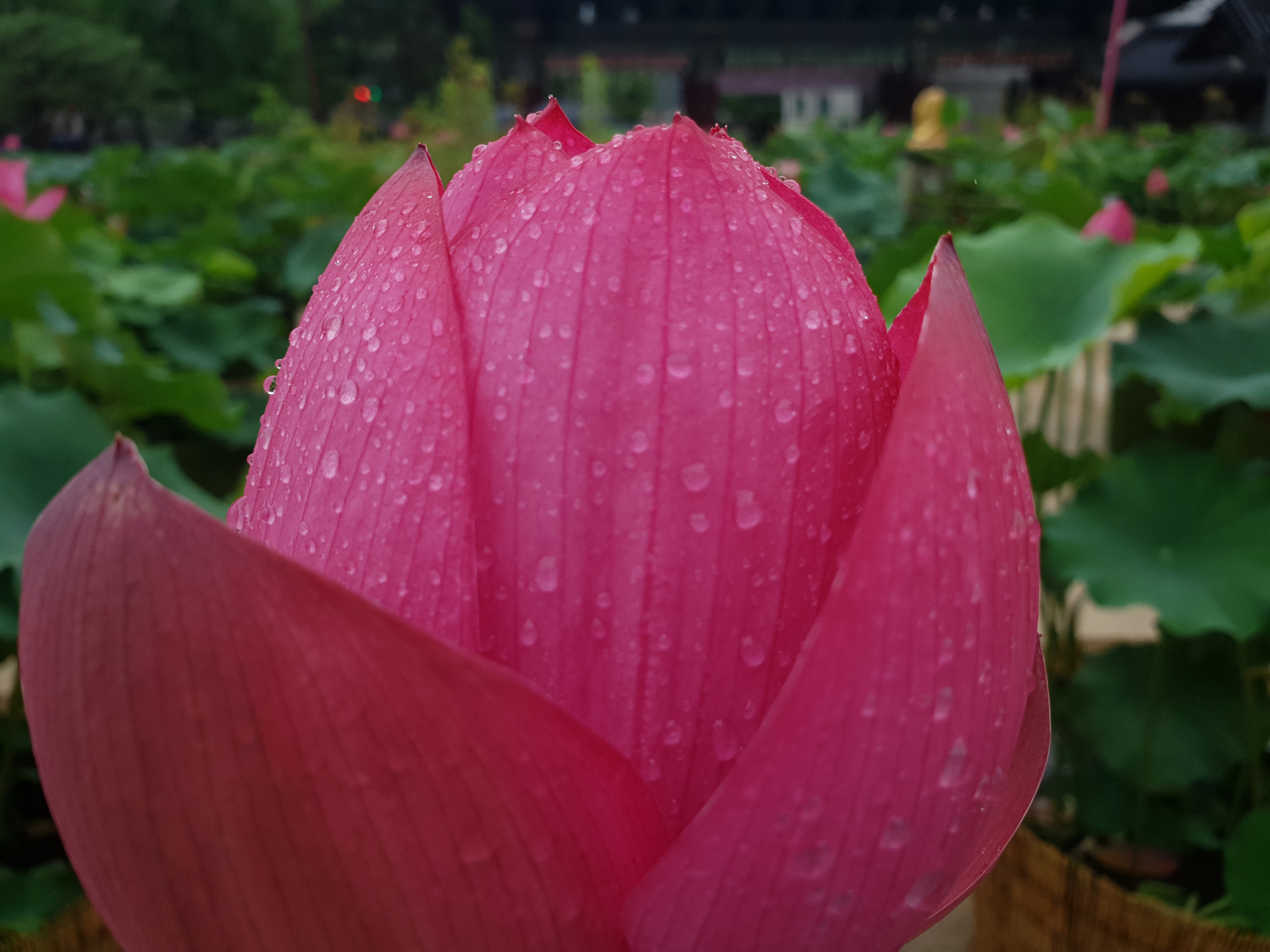 연지 대신 빗물 머금으니