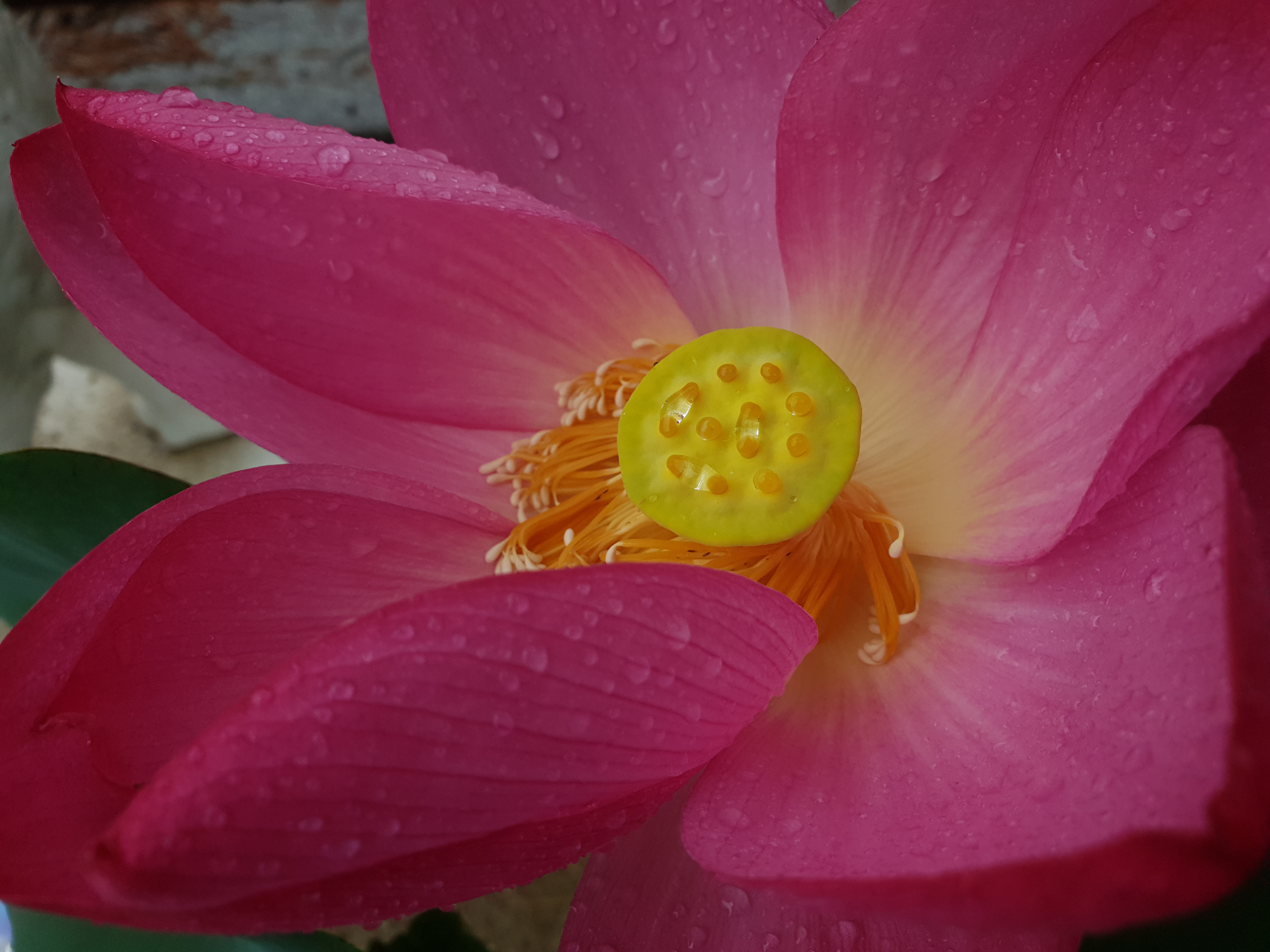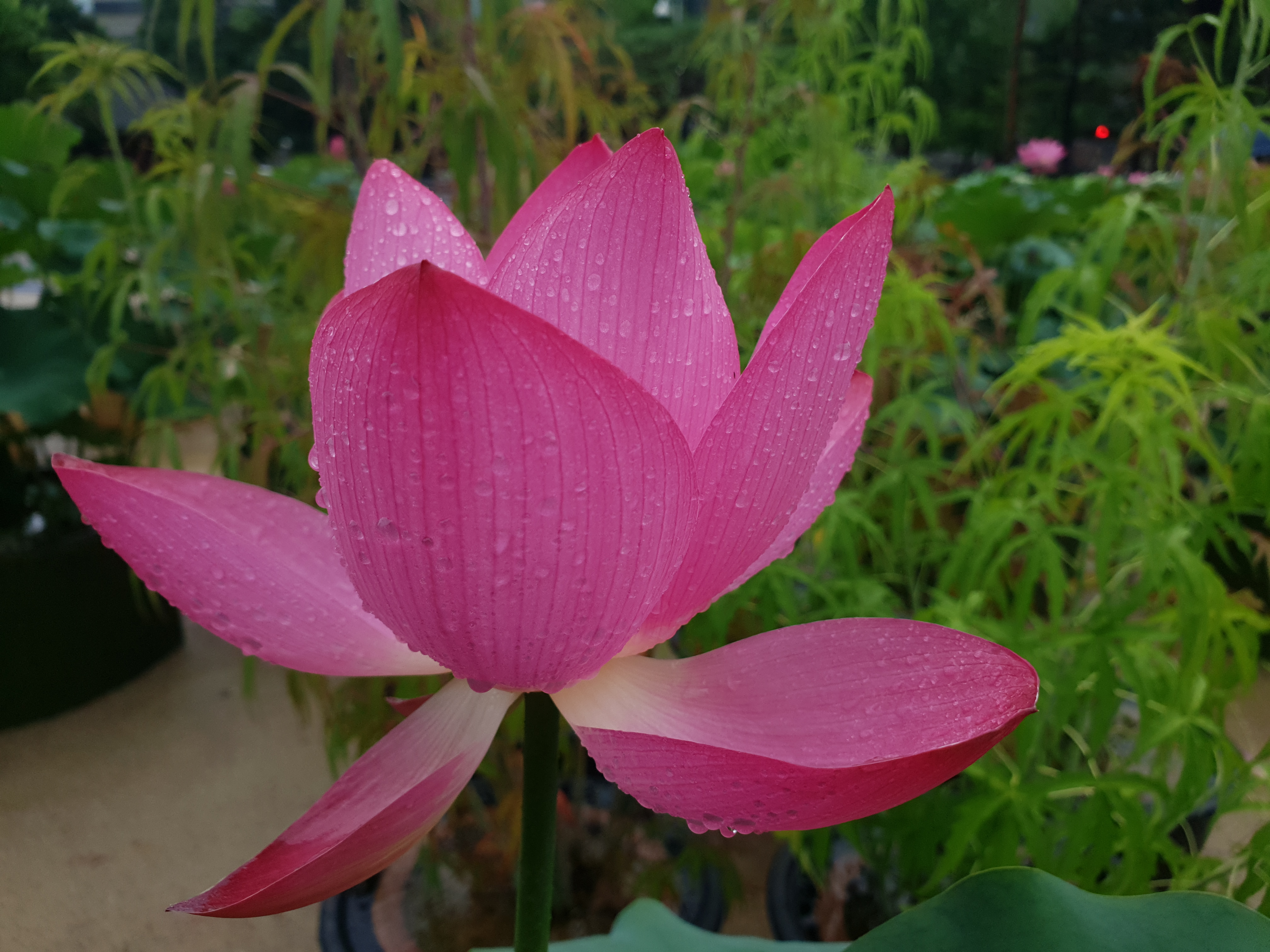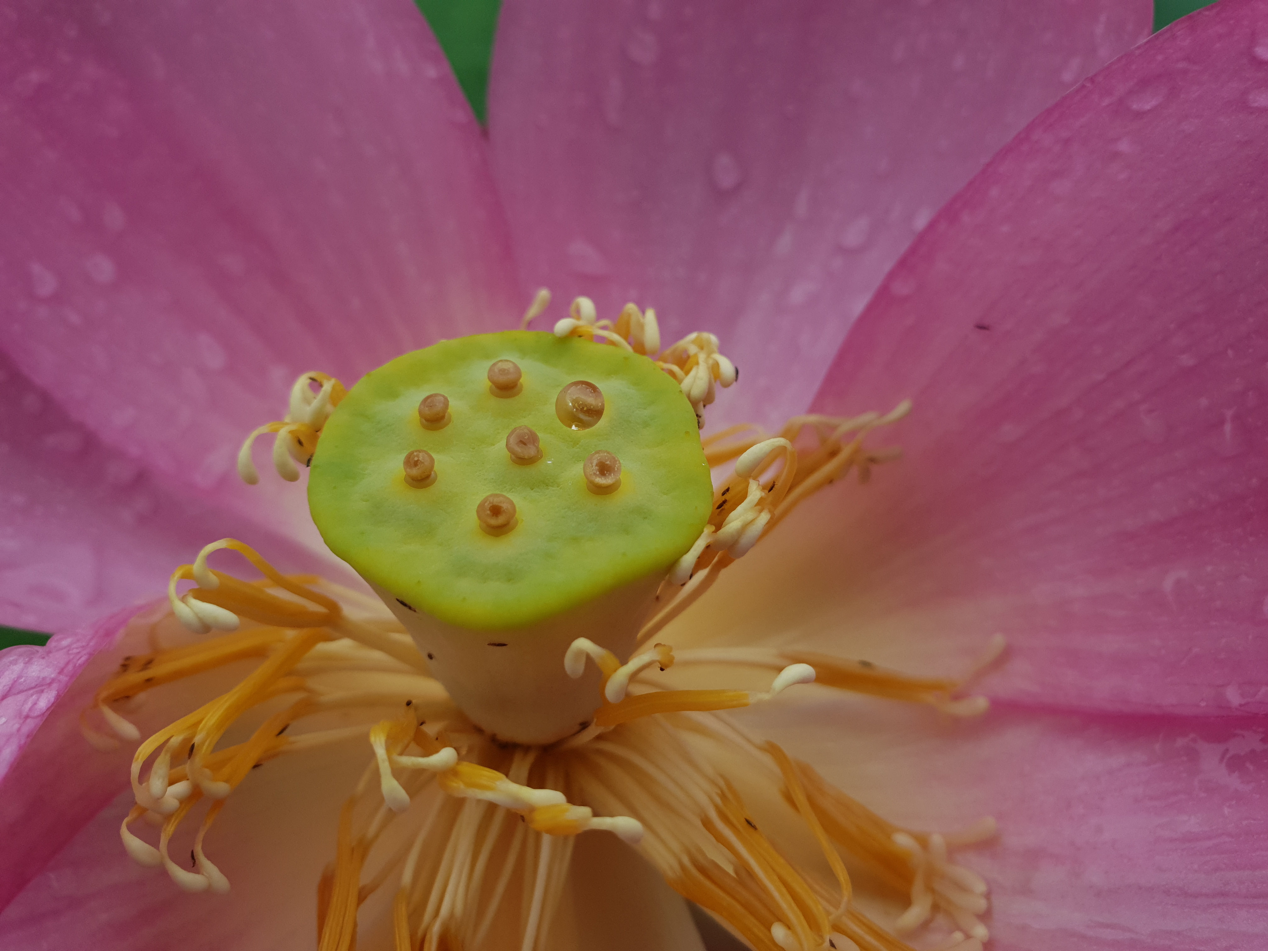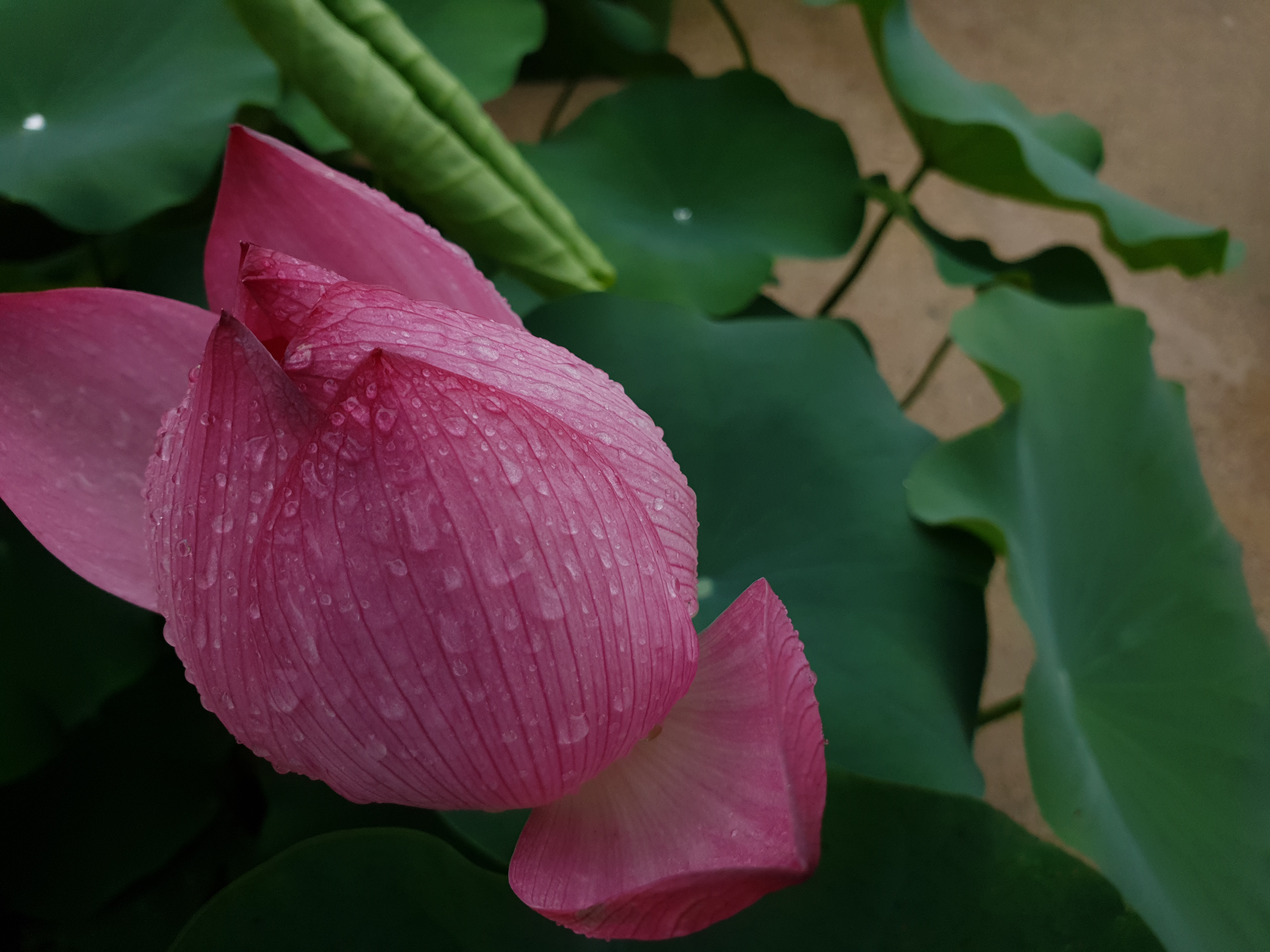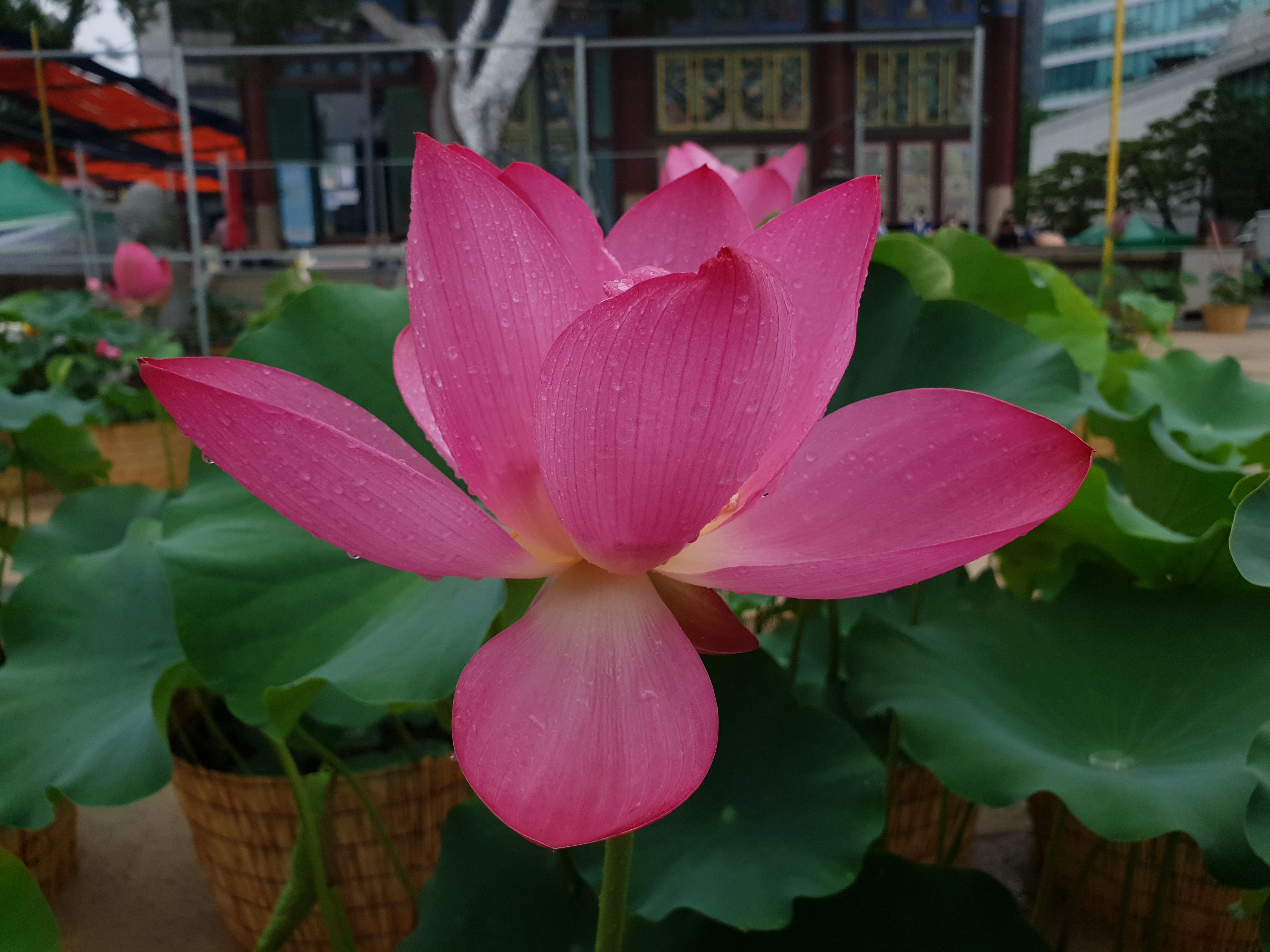 연지 대신 빗물 머금으니