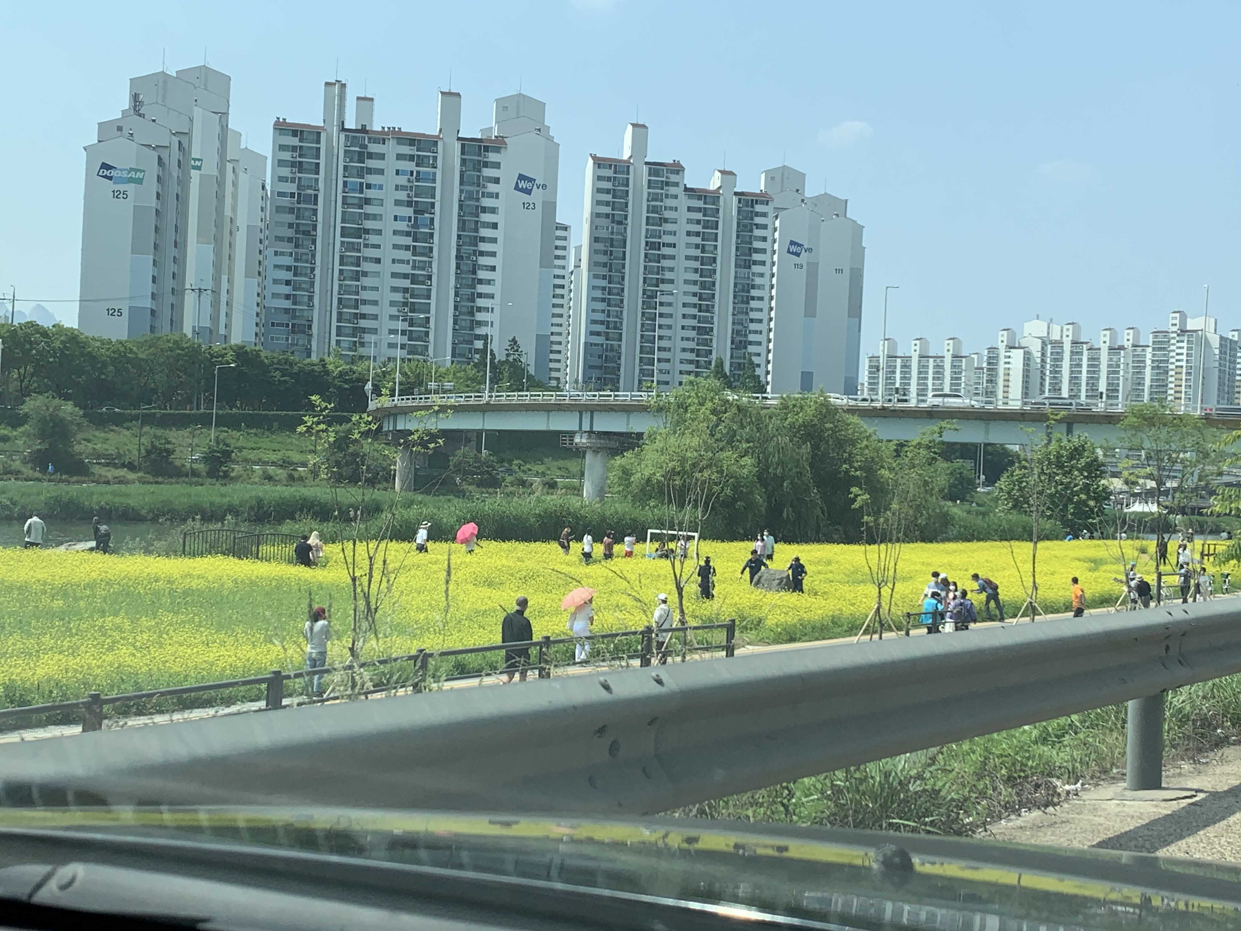단장님 창 쪽으로는 노란 유채꽃이 한창이다.
