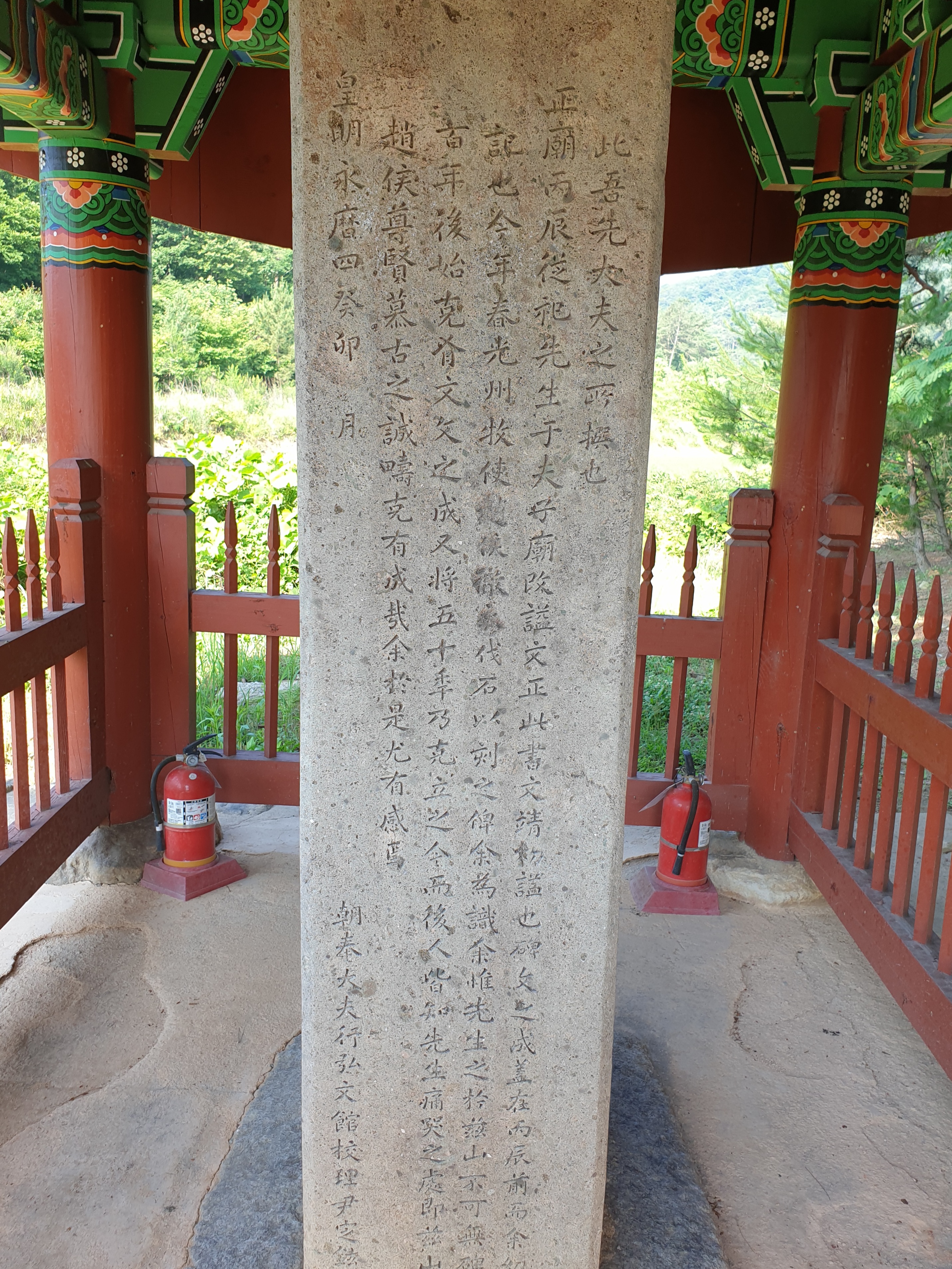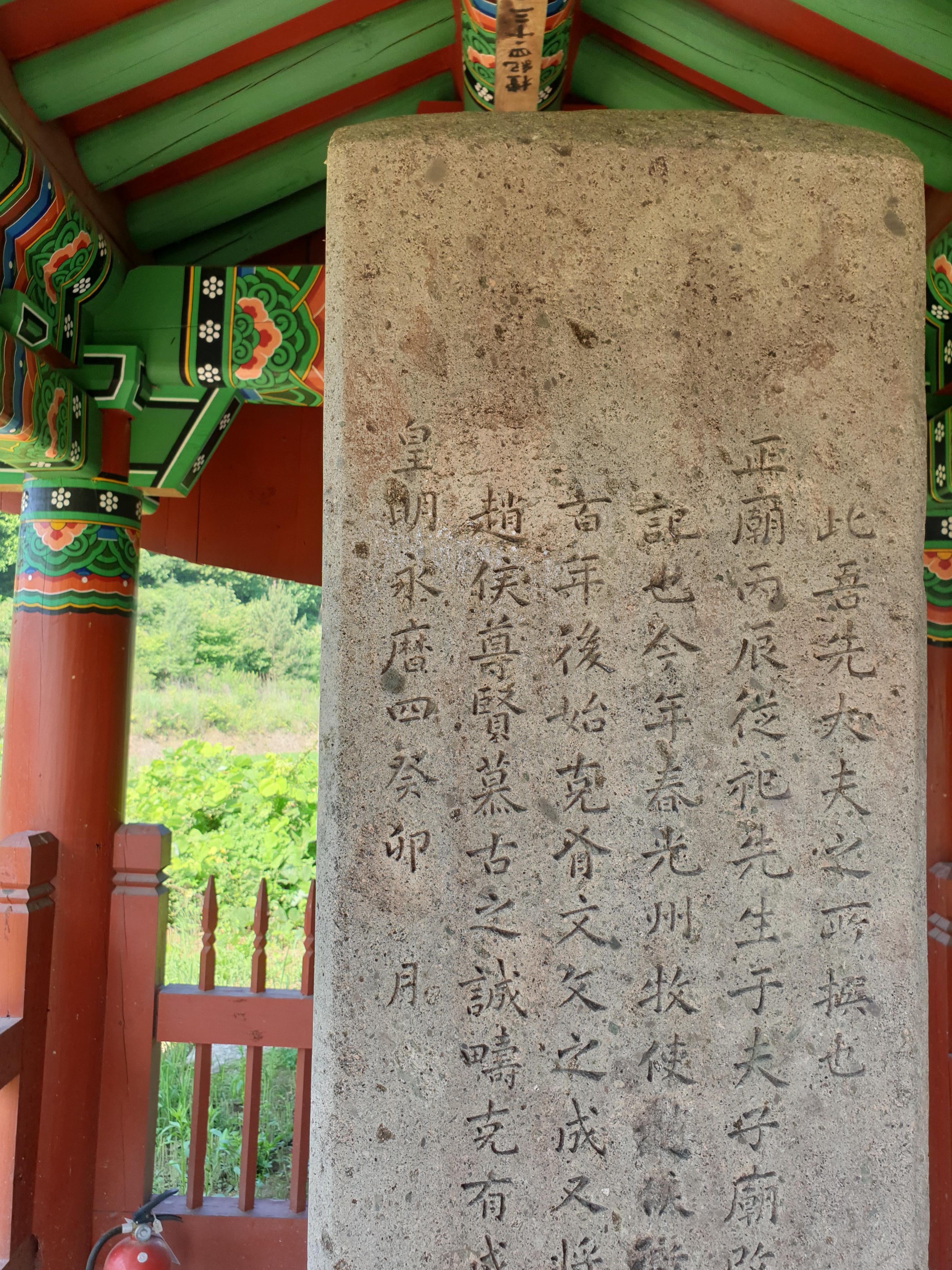 The inscription on the stele was written in 1793 by Yun Haeng-im (1762-1801), but it was not engraved until 1843 when the stele was finally erected by Jo Cheol-yeong, the County Magistrate of Gwangju. The governor's son Yun Jeong-hyeon wrote a postscript about the stele.