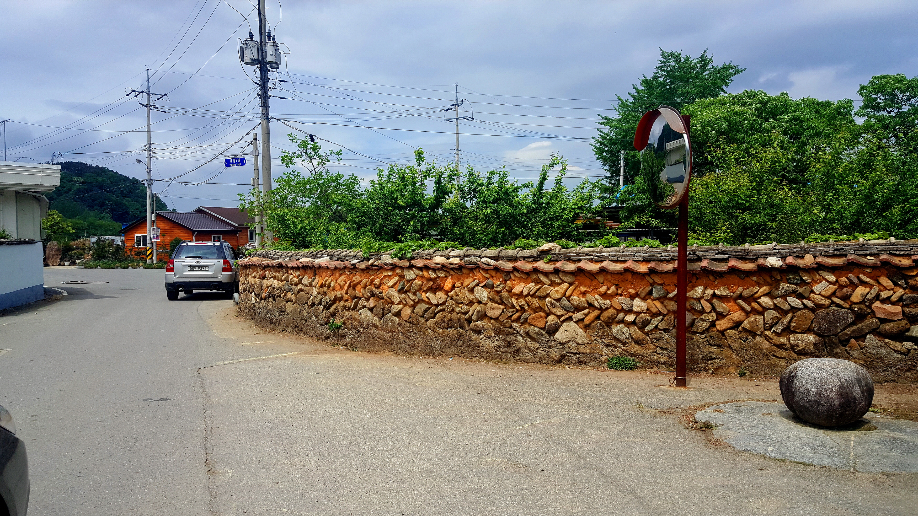 암튼 저 돌담은 정형성이 없고, 또 절반은 이미 시멘트에 양보한 상태이긴 하지만, 그래도 뭐랄까 정감이라 할 만한 그런 게 있지 아니한가? 내가 주목한 대목은 바로 이 정감이었다.