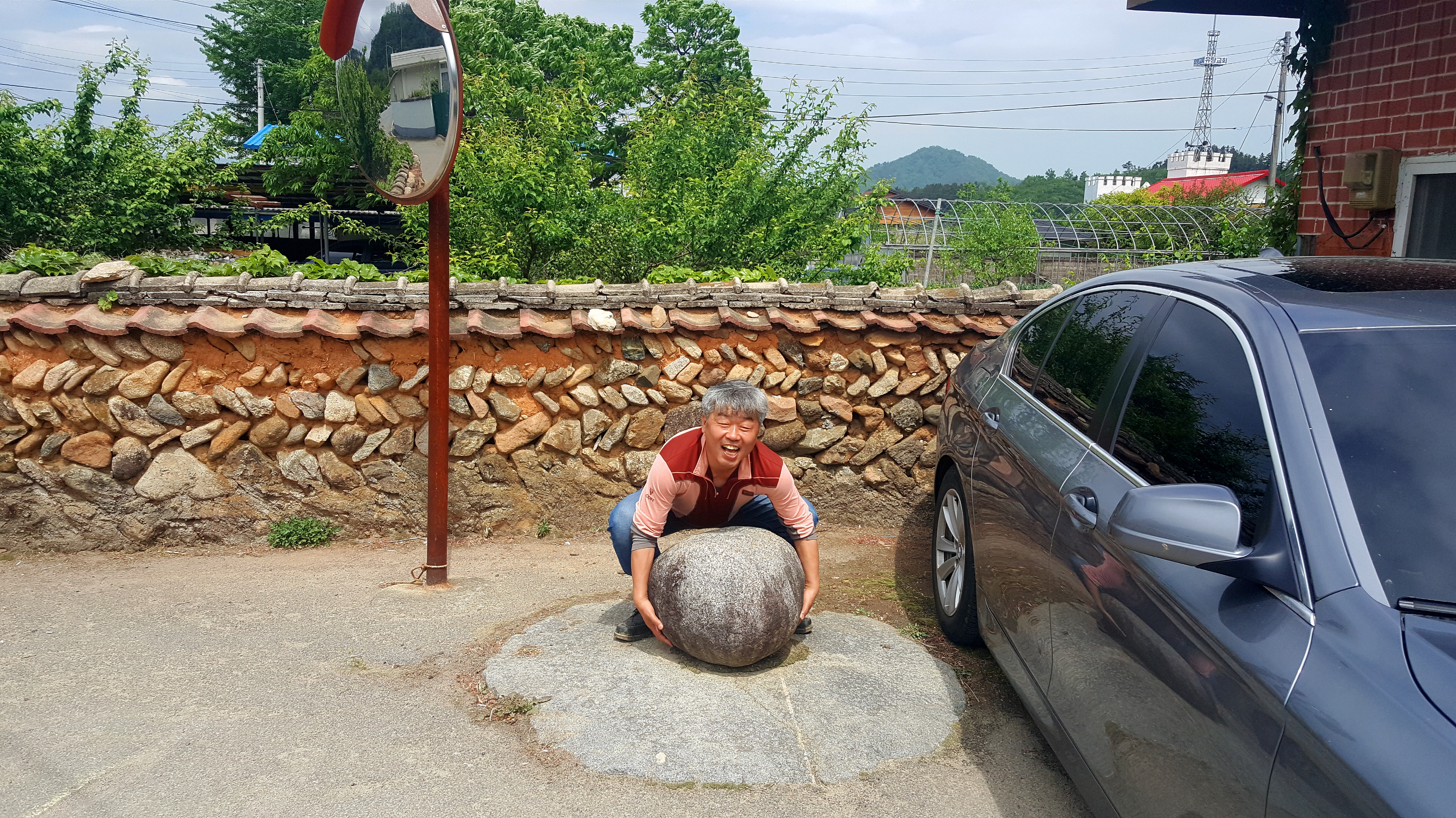 저건 현지에서는 들독, 다시 말해 드는 돌삐라고 하는 것으로, 서울 사투리로는 들돌이라 하는 요물이라, 장사들이 힘 자랑할 때 그 준거로 이용하는 돌삐다. 저걸 들어올리느냐 마느냐에 따라 장사가 정해지는 것이다.